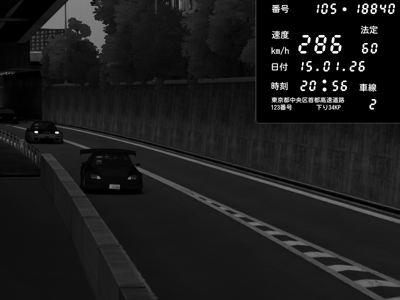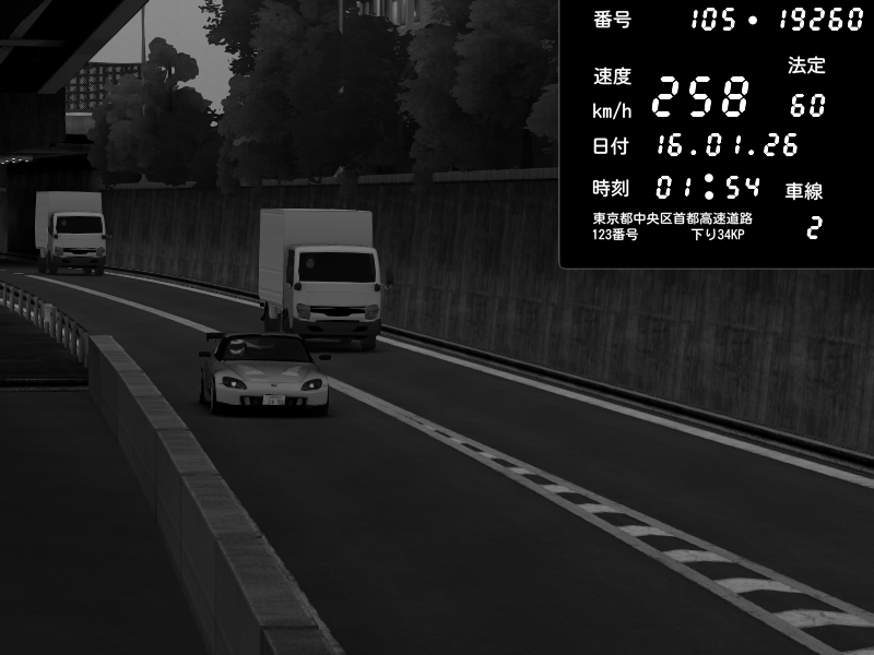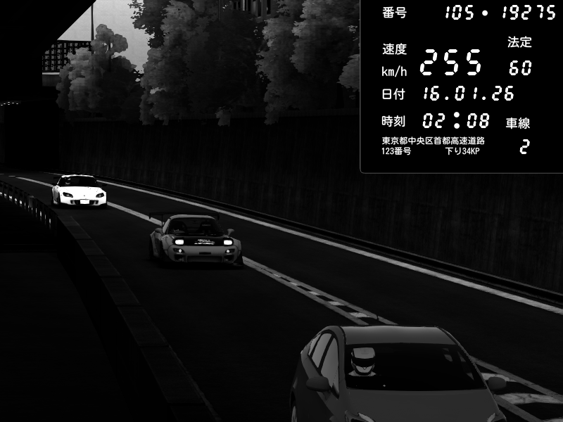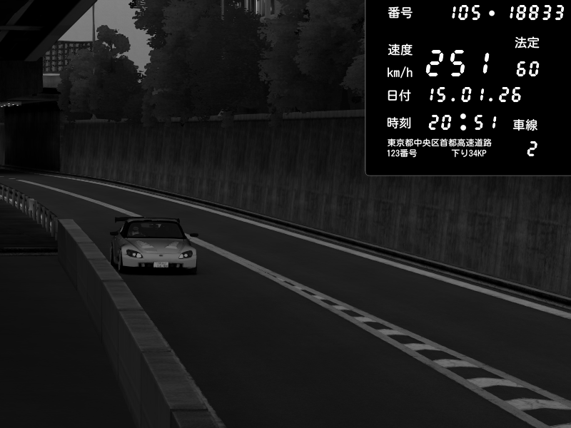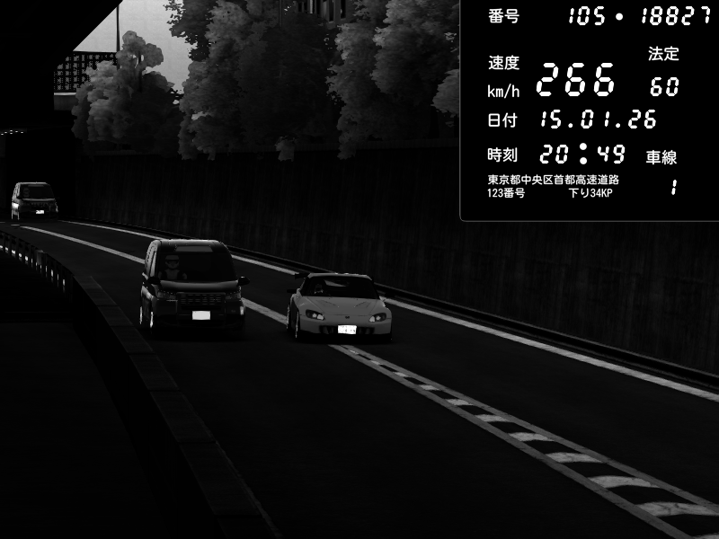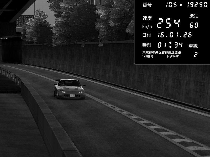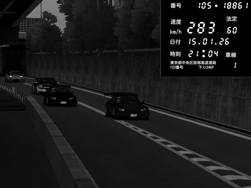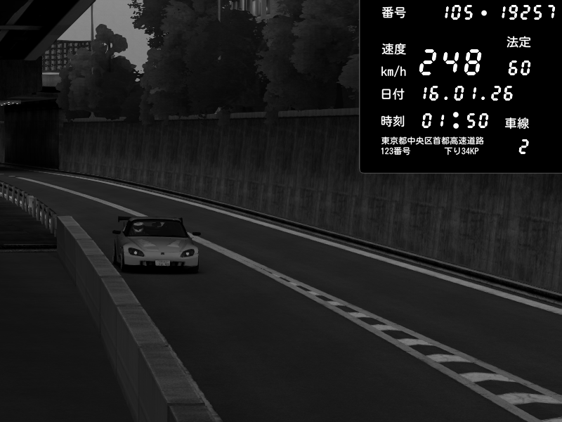 | 2026/01/15 21:03 | C1外回り 京橋 | 253 / 60 km/h | 黒日本人 | Honda S2000 (AP2 - Legendary) | CAPTURE |
