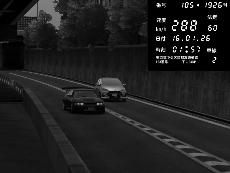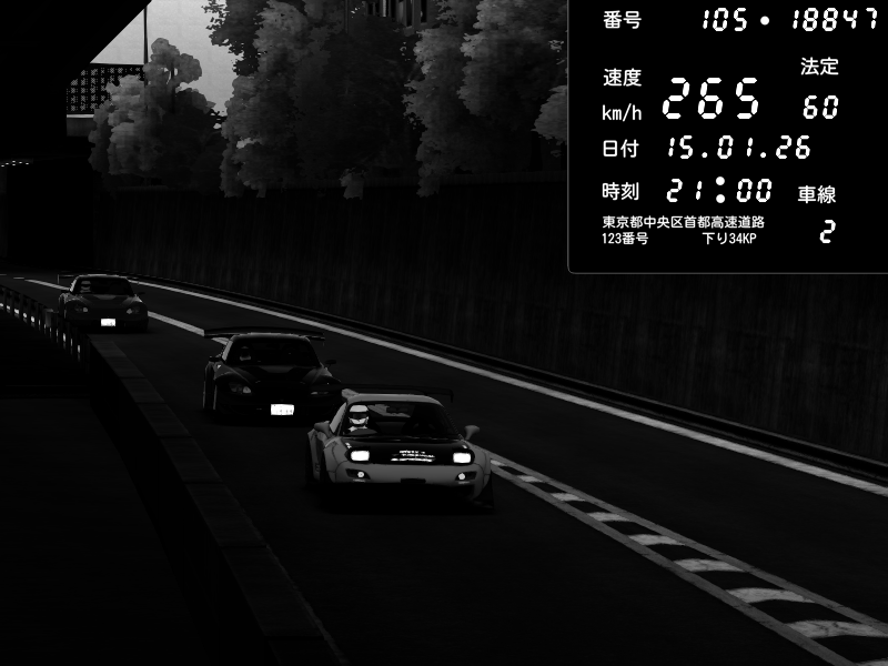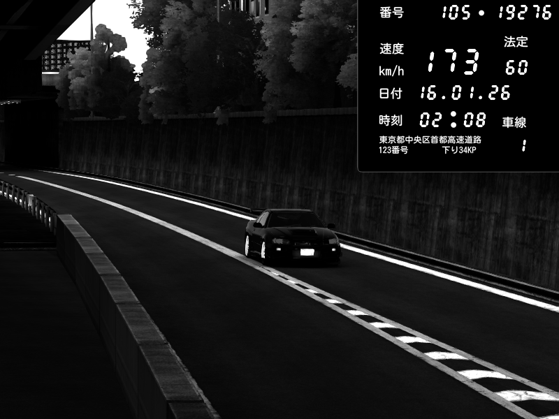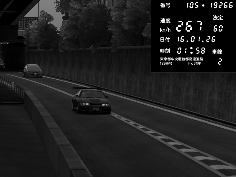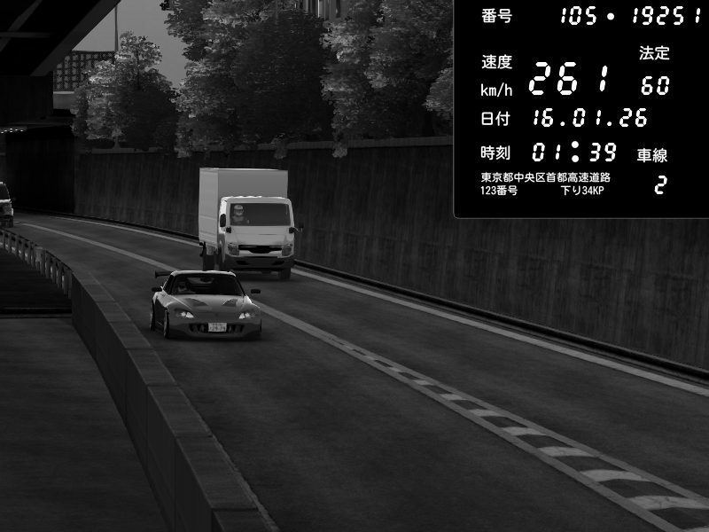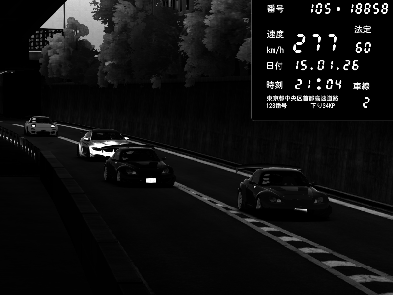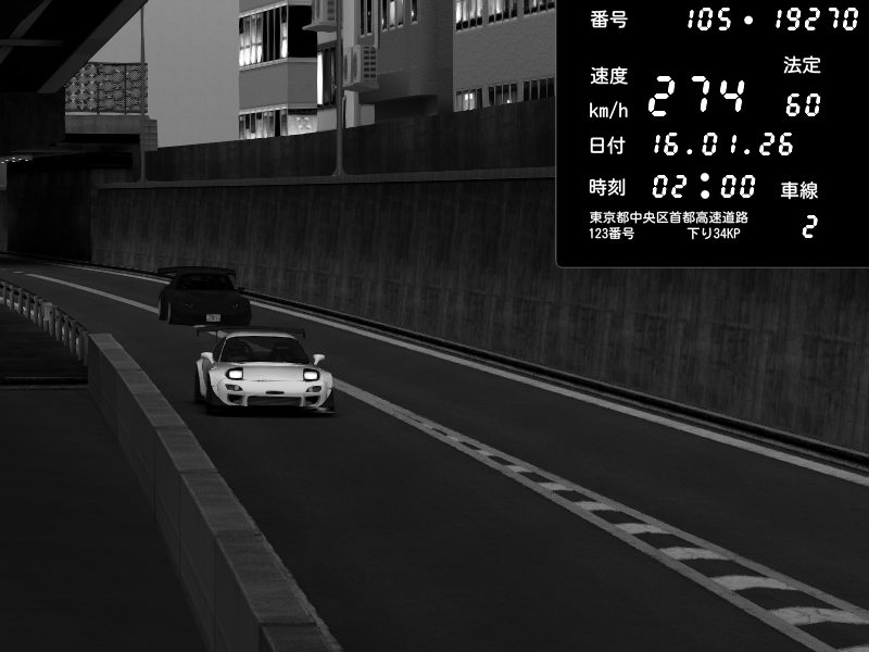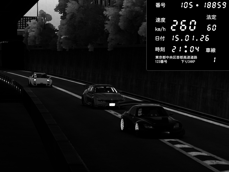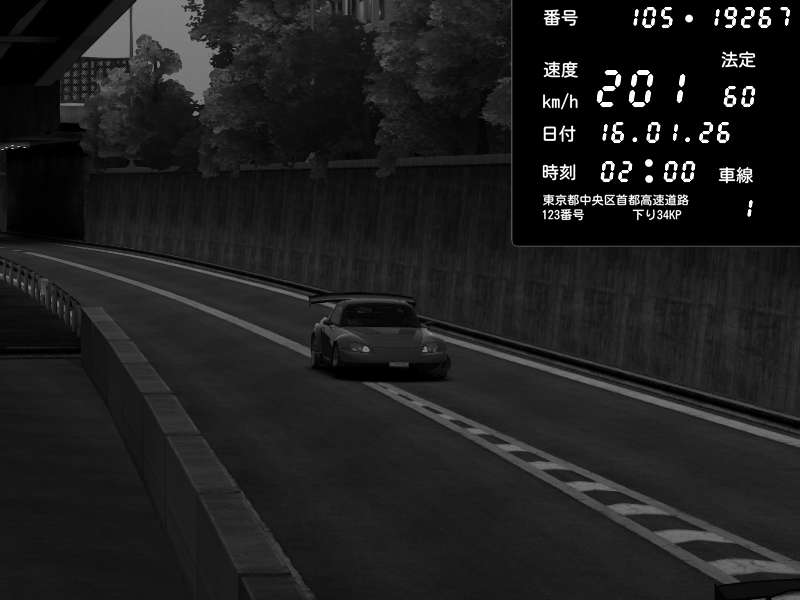 | 2026/01/15 21:03 | C1外回り 京橋 | 253 / 60 km/h | 黒日本人 | Honda S2000 (AP2 - Legendary) | CAPTURE |