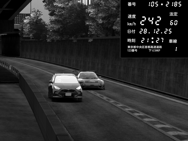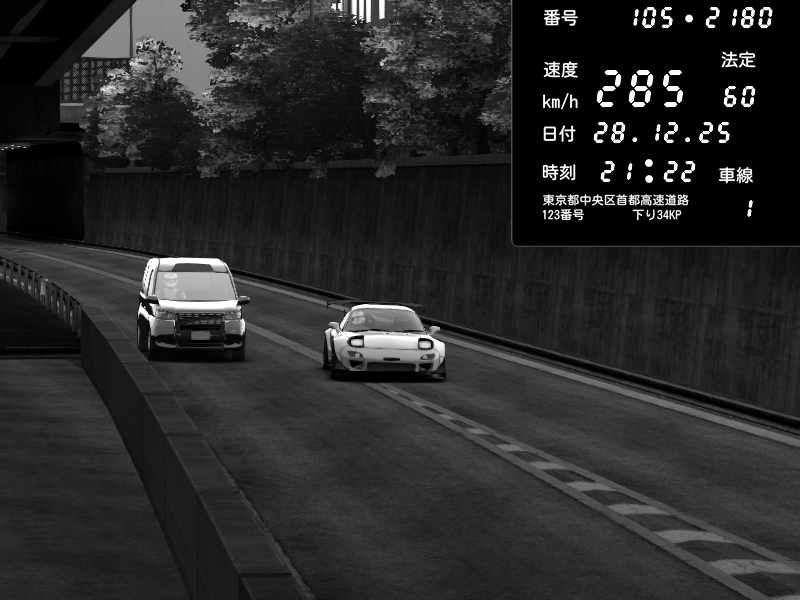 | 2025/12/28 21:27 | C1外回り 京橋 | 242 / 60 km/h | bebop | Mazda RX-7 FD3S FEED Afflux GT3 | CAPTURE |