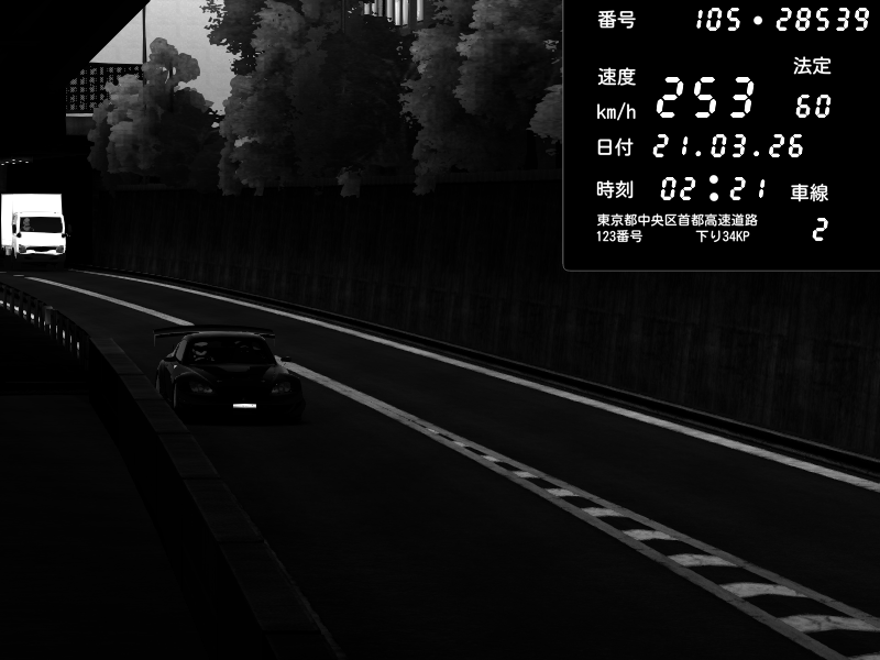 | 2026/03/21 02:21 | C1外回り 京橋 | 253 / 60 km/h | SHOW5 | Honda S2000 Turbo GT1 Amuse (AP1) | CAPTURE |