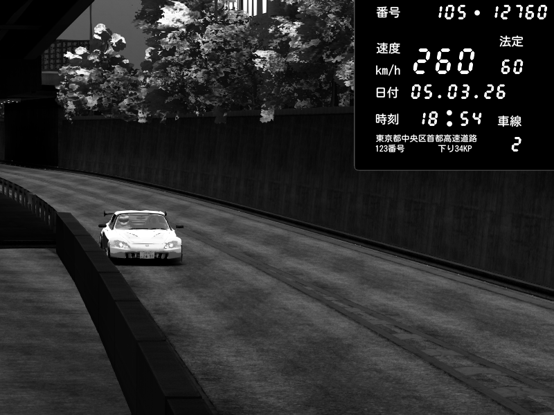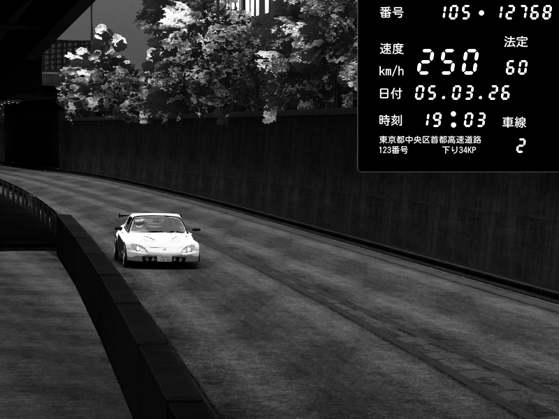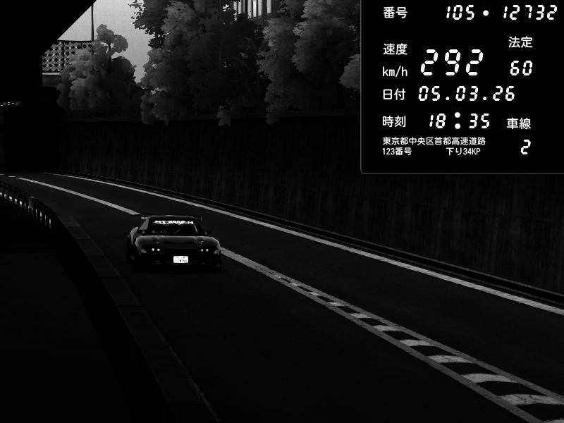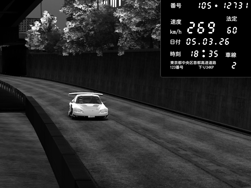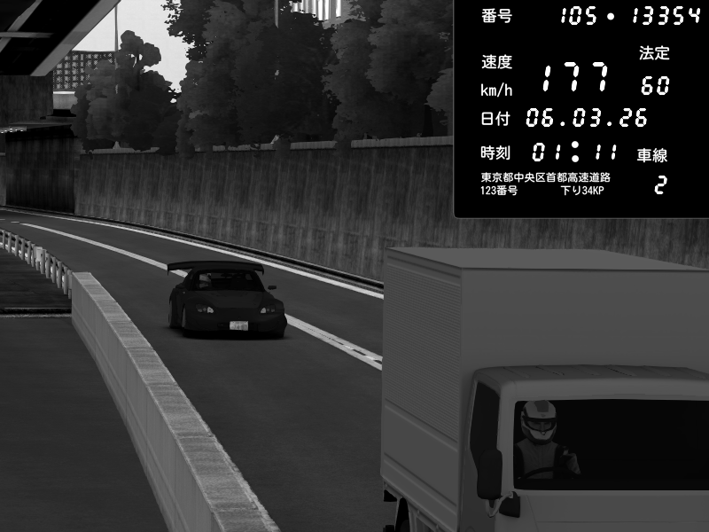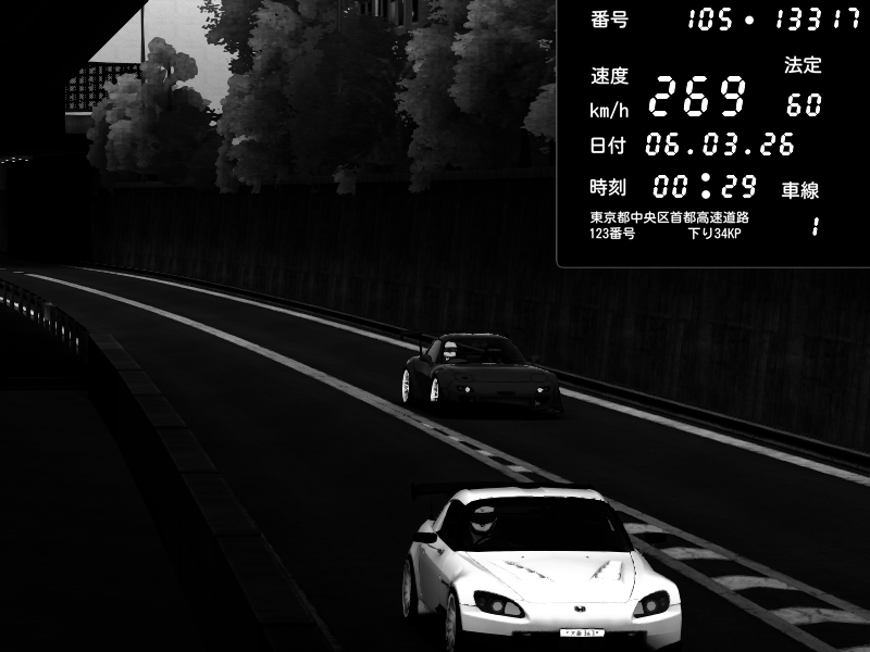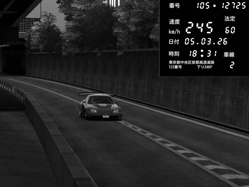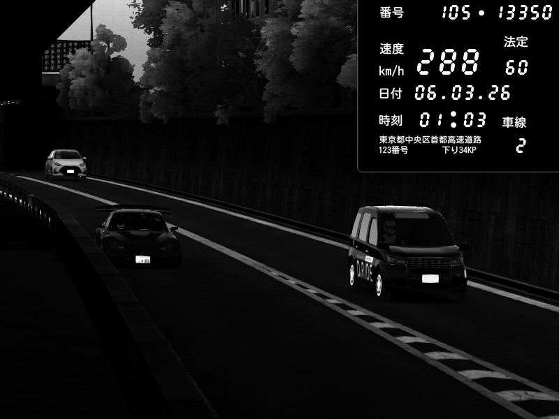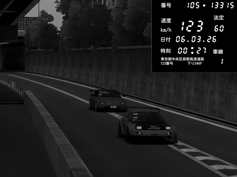 | 2026/03/06 01:03 | C1外回り 京橋 | 288 / 60 km/h | Shinra | Honda S2000 Turbo GT1 Amuse (AP1) | CAPTURE |