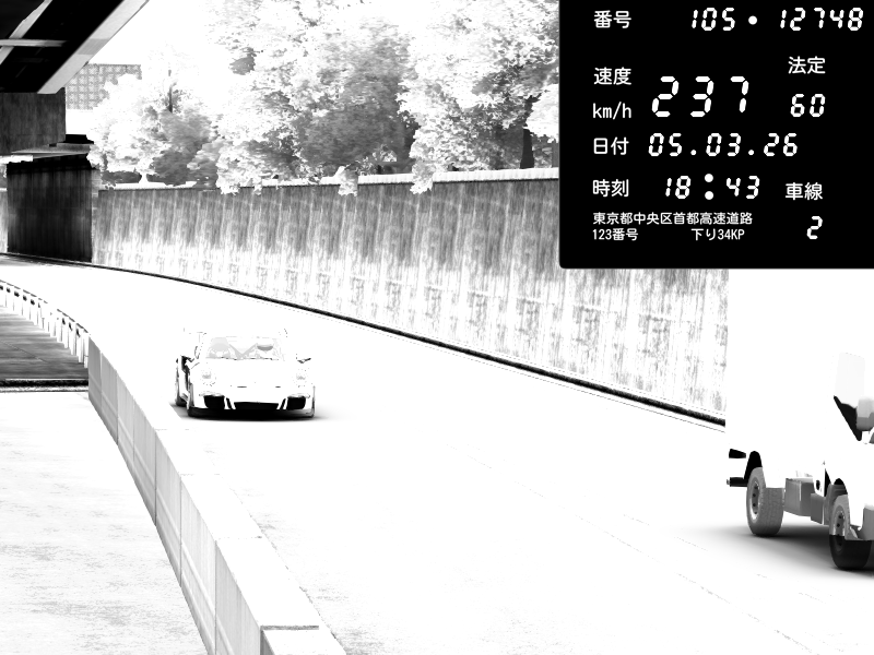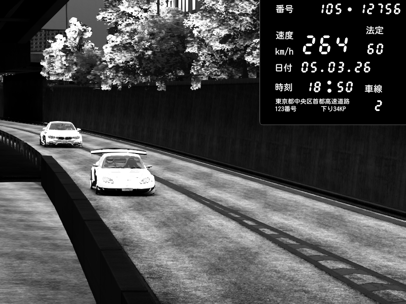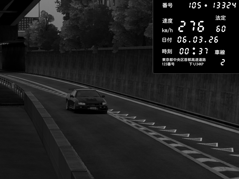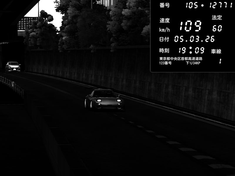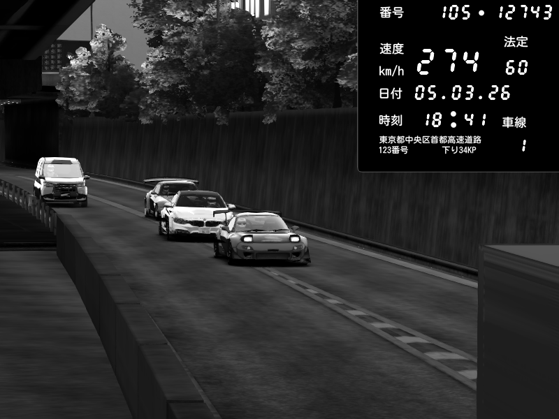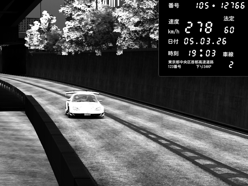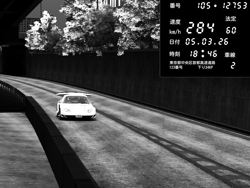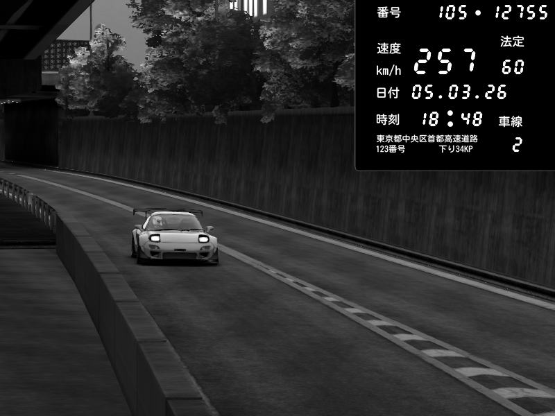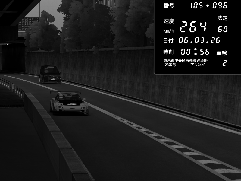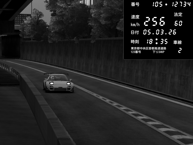 | 2026/03/06 00:34 | C1外回り 京橋 | 276 / 60 km/h | Player | Mazda RX-7 FD3S FEED Afflux GT3 | CAPTURE |
