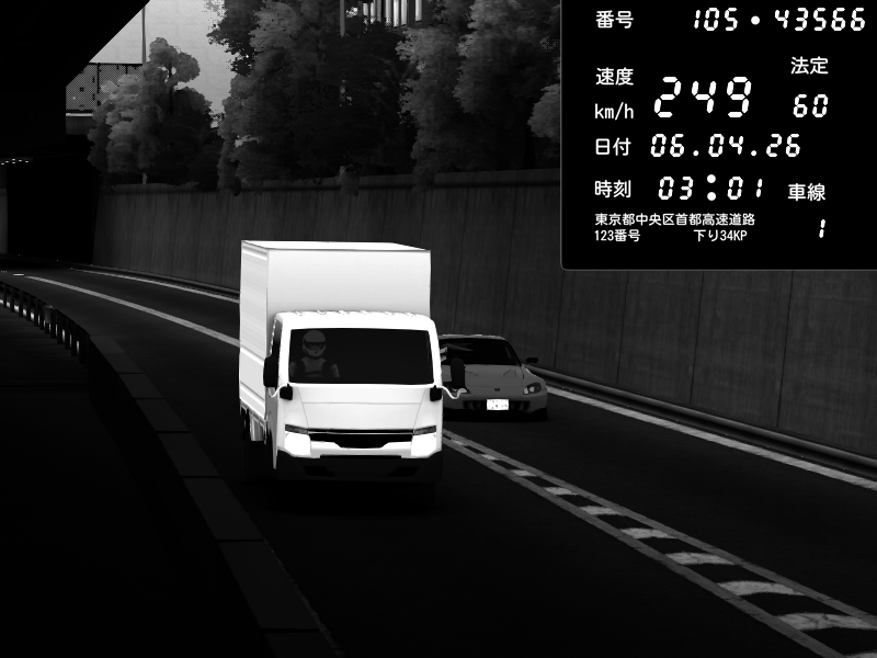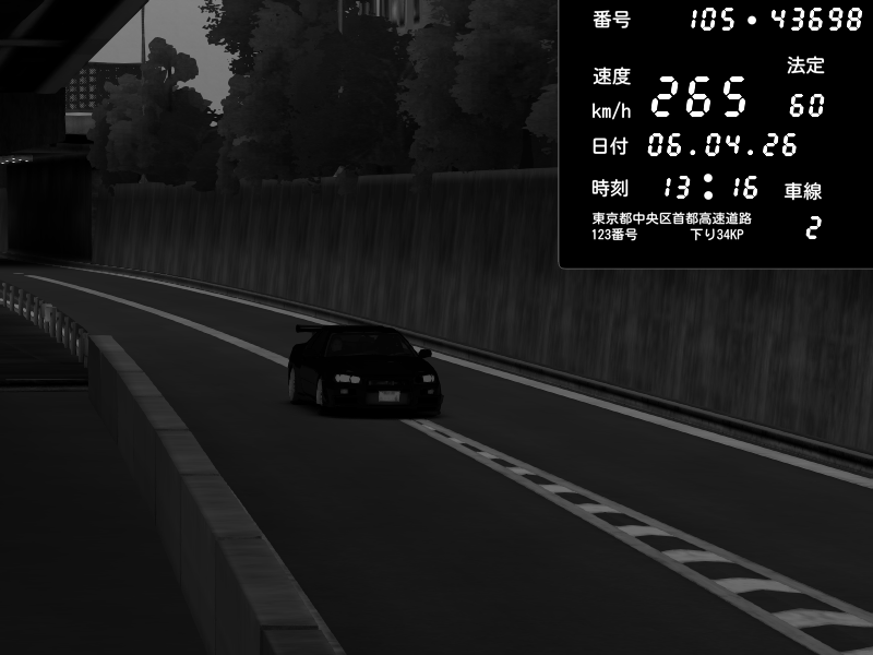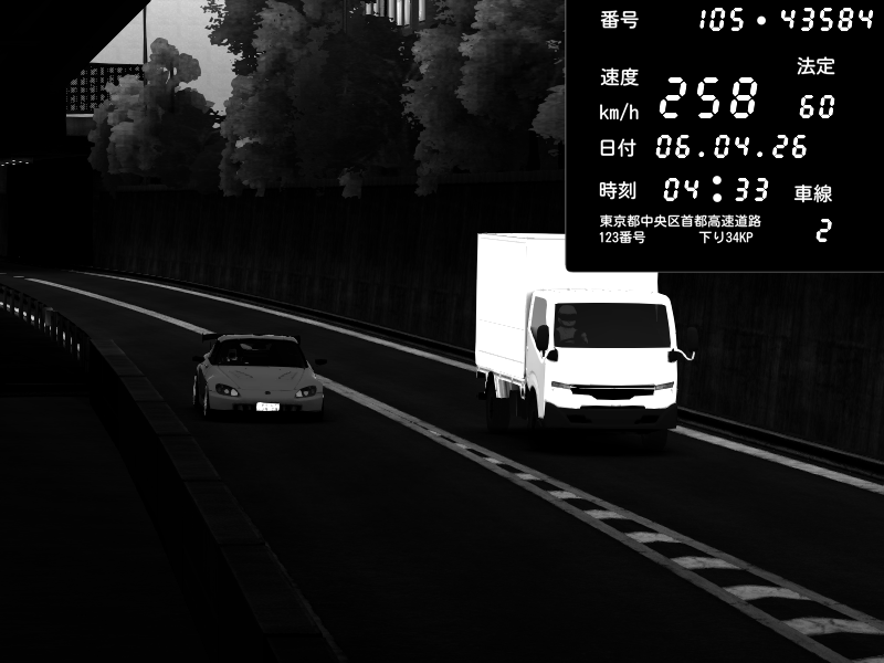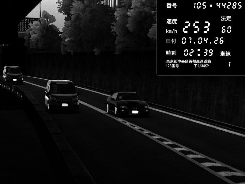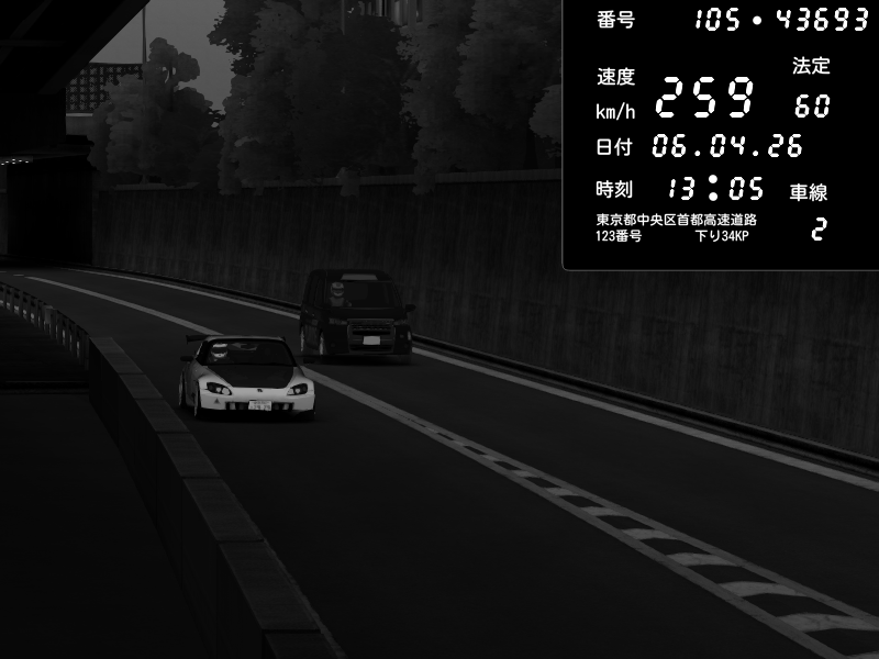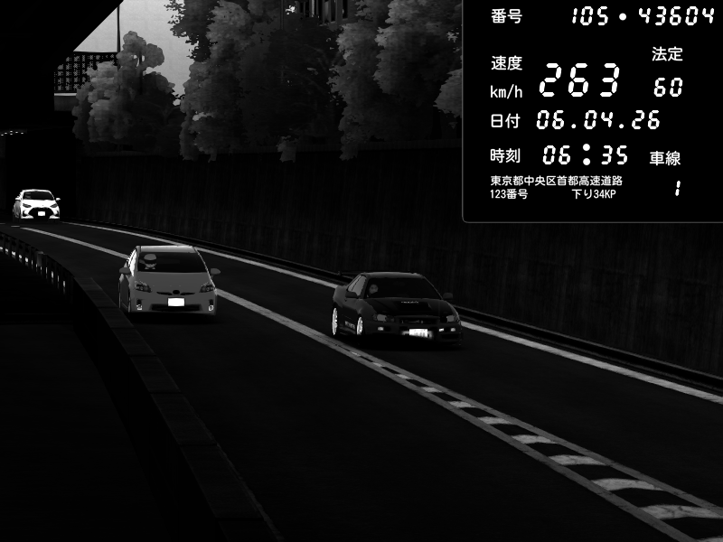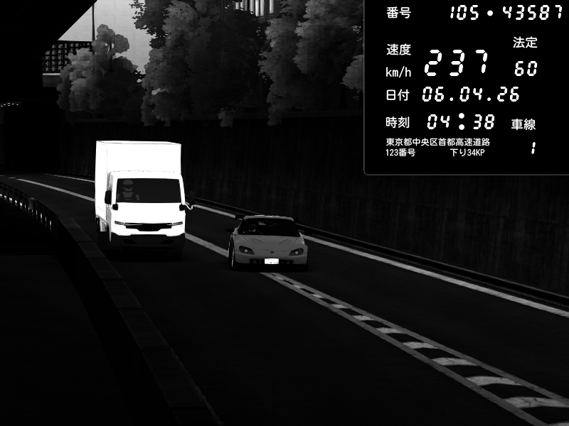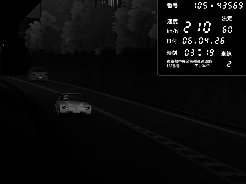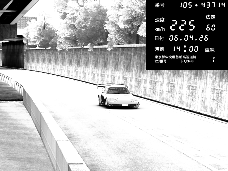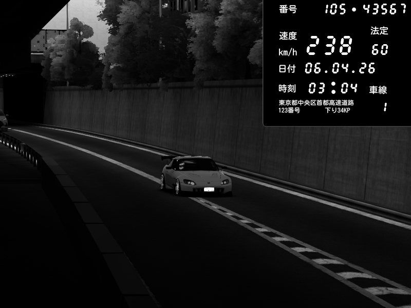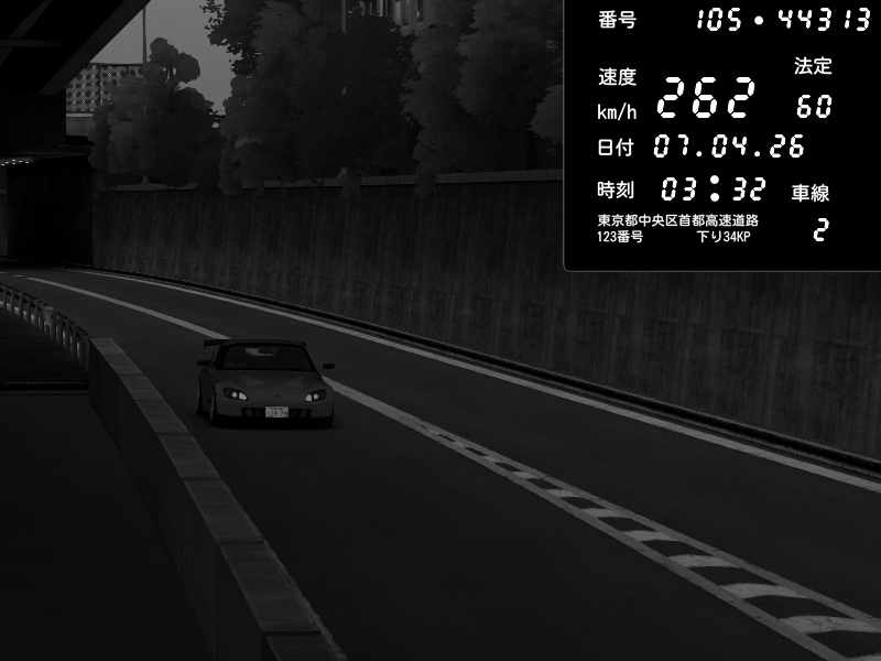 | 2026/04/07 03:32 | C1外回り 京橋 | 262 / 60 km/h | Sh0a | Honda S2000 (AP2 - Legendary) | CAPTURE |