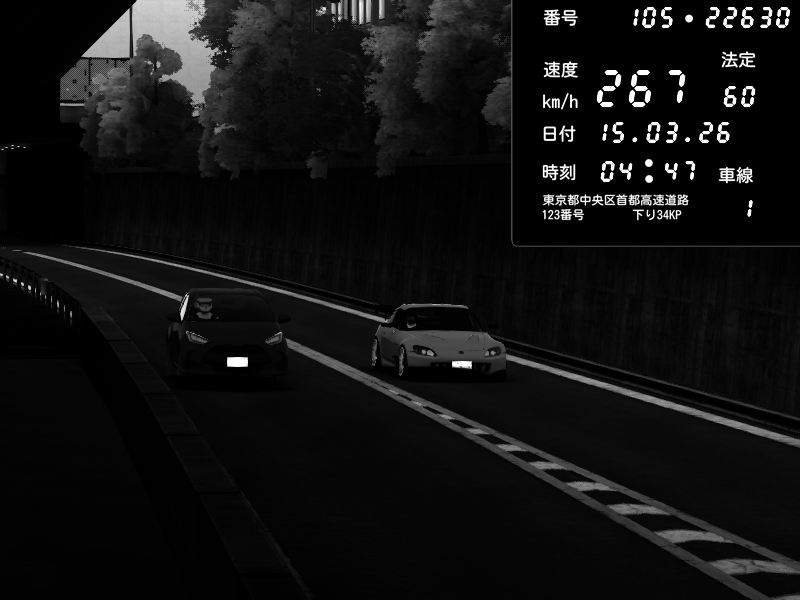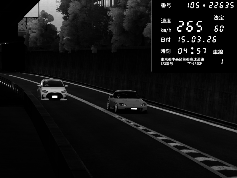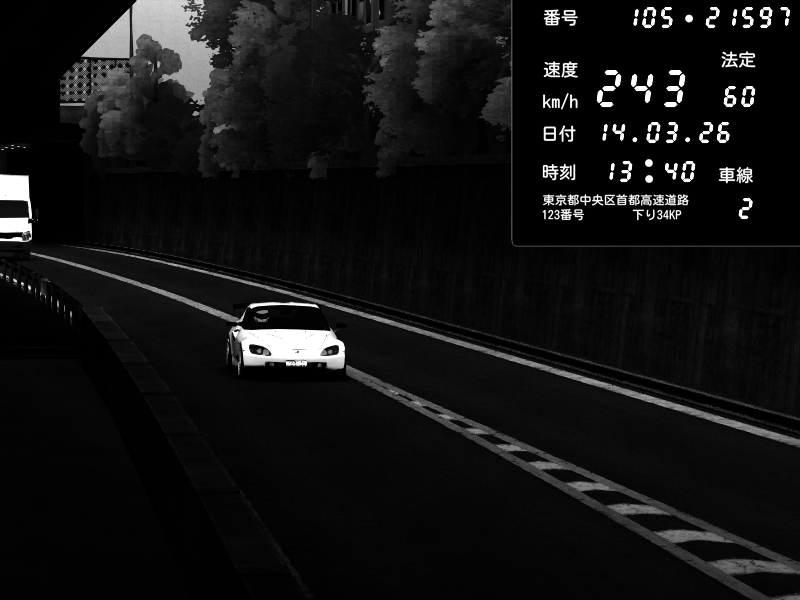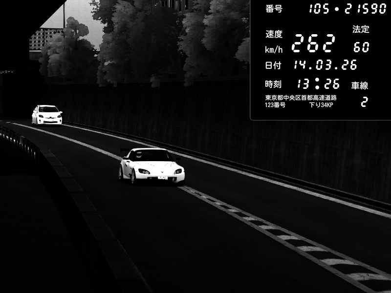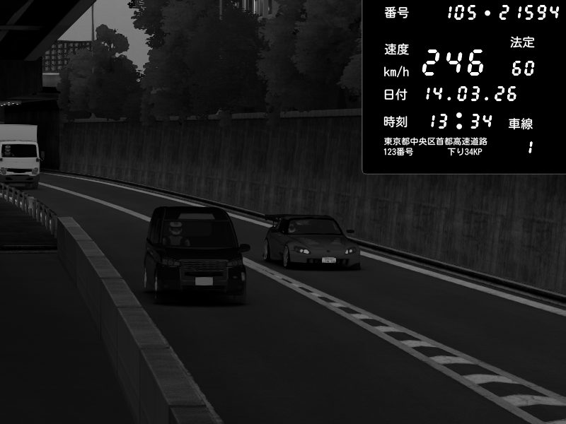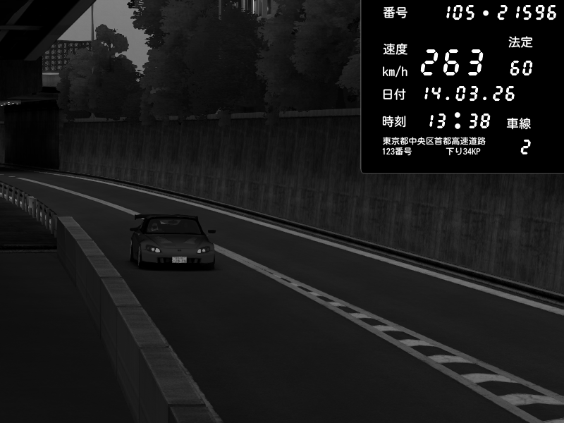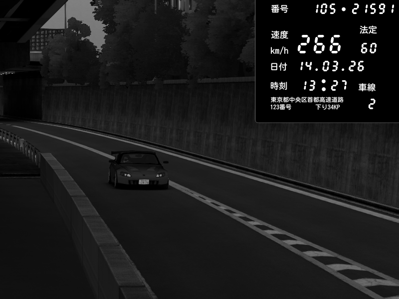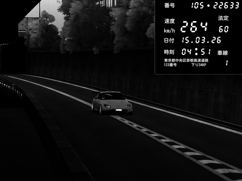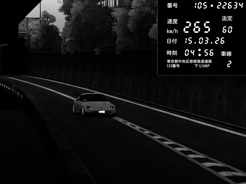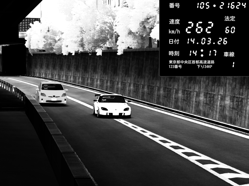 | 2026/03/14 13:26 | C1外回り 京橋 | 262 / 60 km/h | ナイトシフト | Honda S2000 (AP2 - Legendary) | CAPTURE |