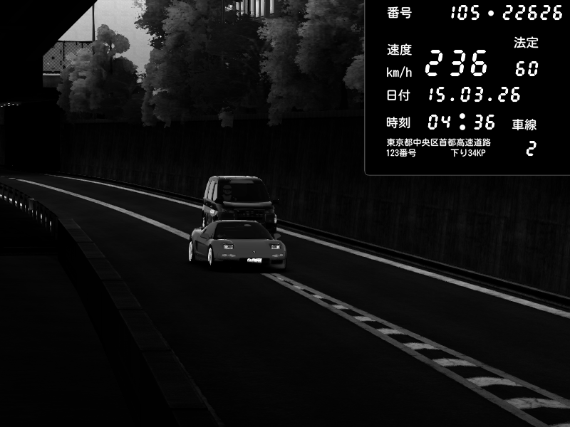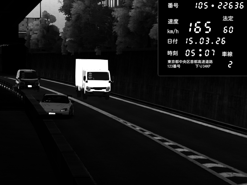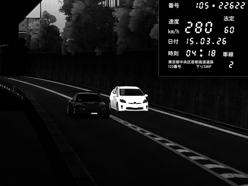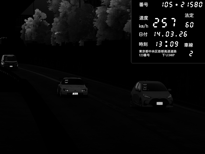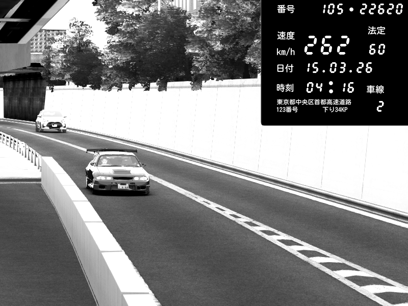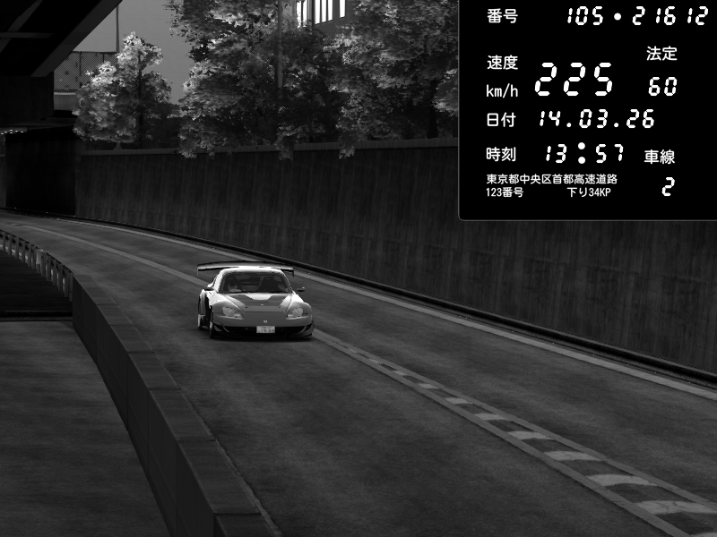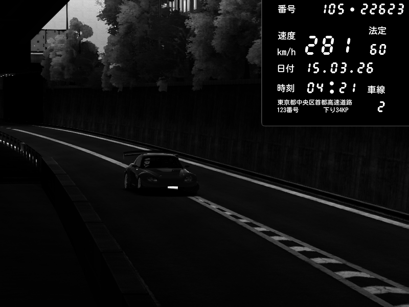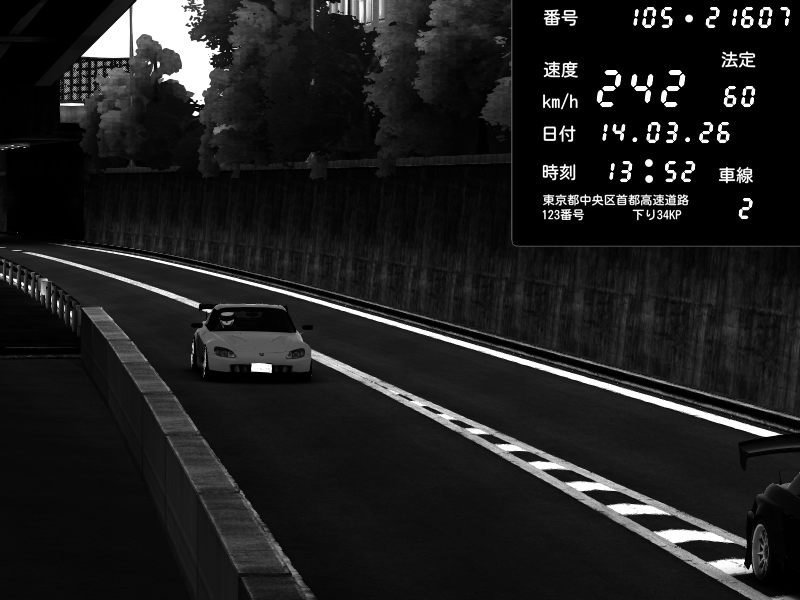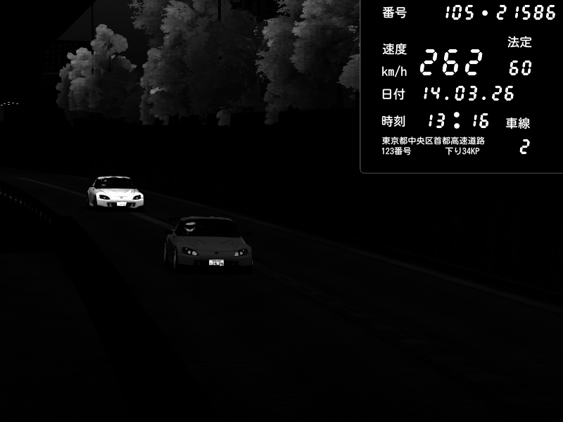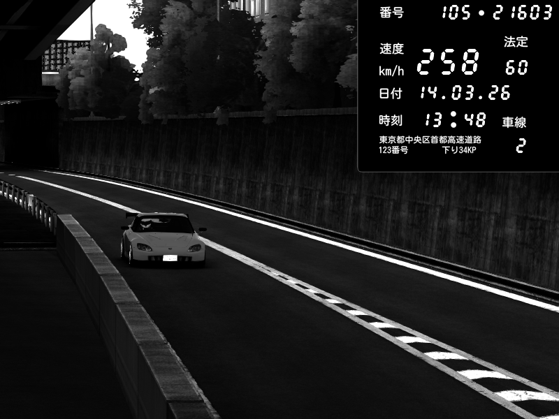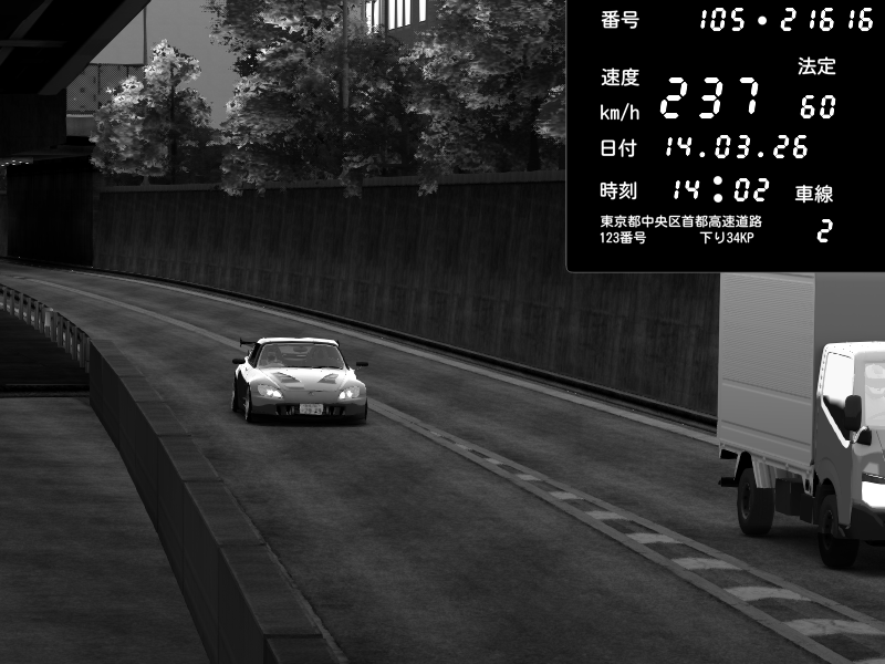 | 2026/03/14 13:26 | C1外回り 京橋 | 262 / 60 km/h | ナイトシフト | Honda S2000 (AP2 - Legendary) | CAPTURE |