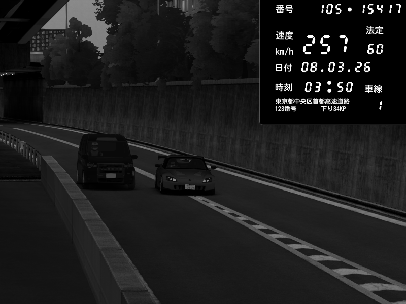 | 2026/03/08 03:50 | C1外回り 京橋 | 257 / 60 km/h | Twinnn Diesel | Honda S2000 (AP2 - Legendary) | CAPTURE |