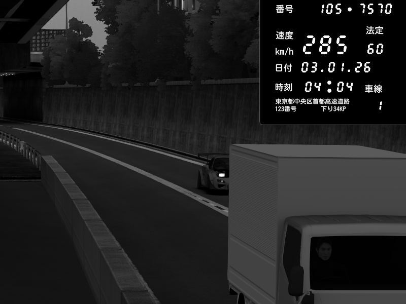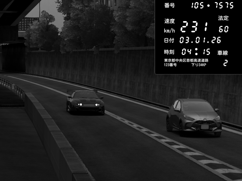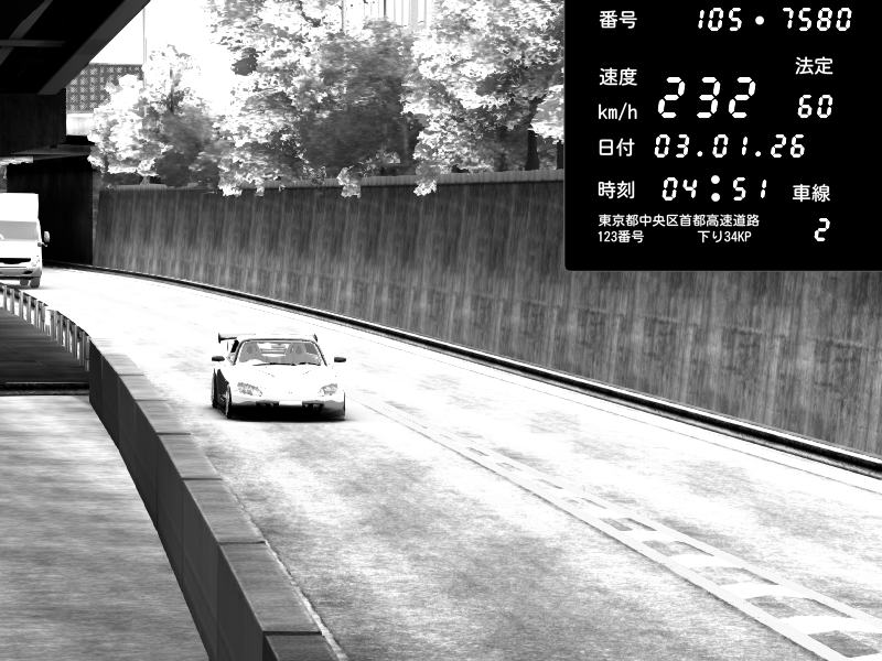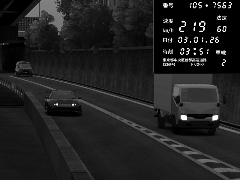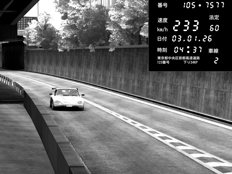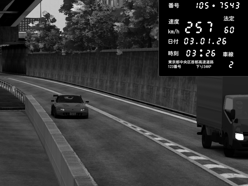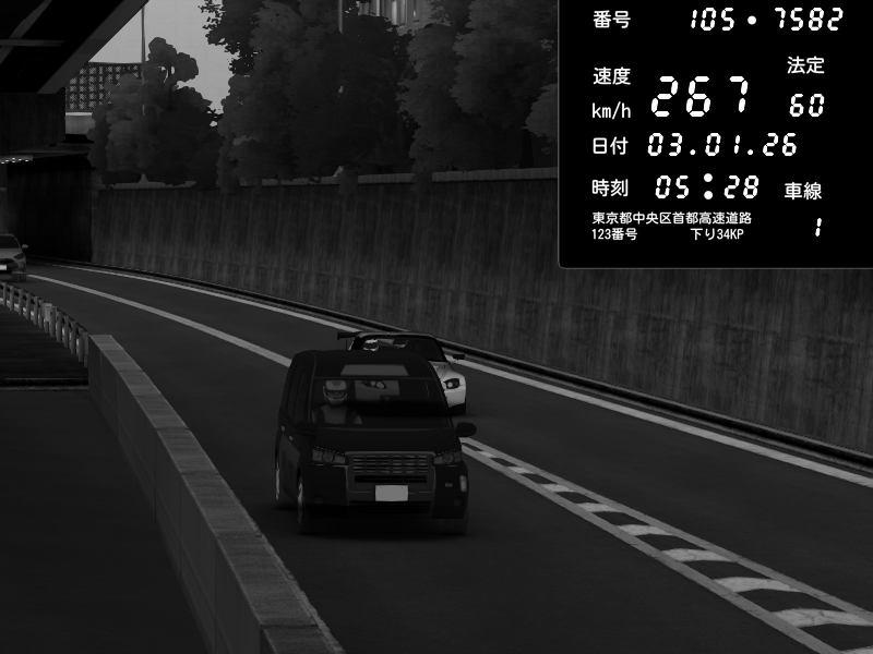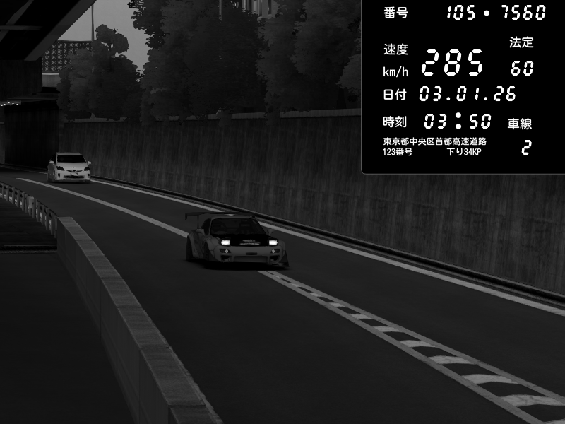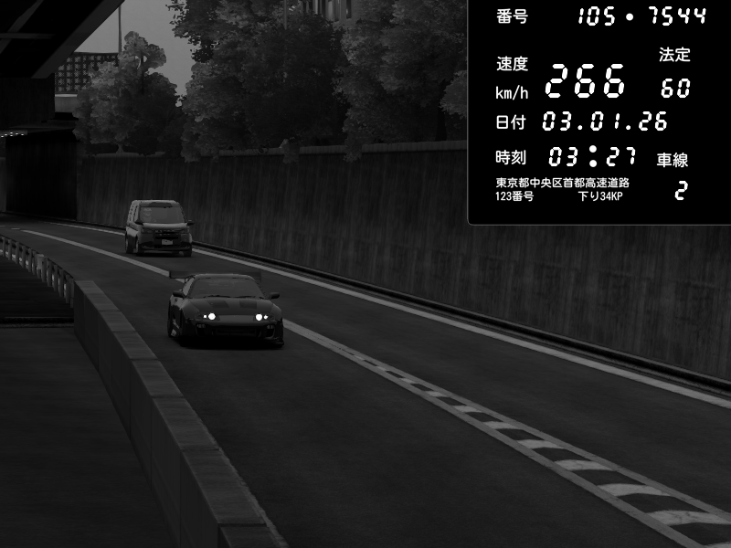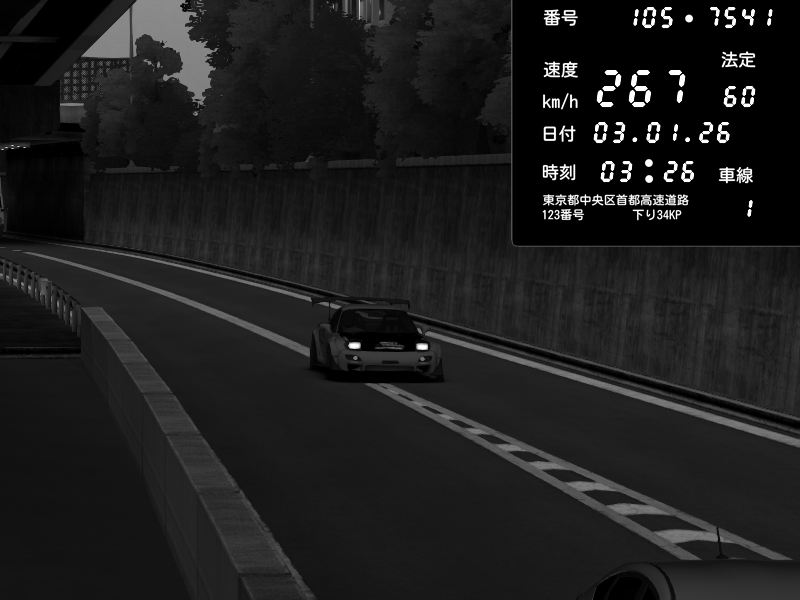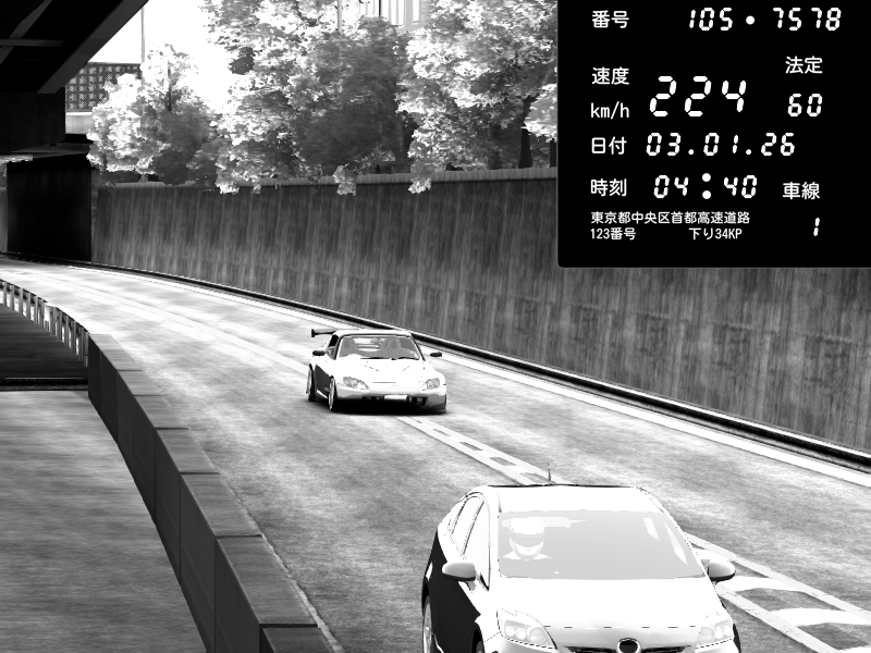 | 2026/01/03 05:33 | C1外回り 京橋 | 265 / 60 km/h | Desturno | Honda S2000 (AP2 - Legendary) | CAPTURE |