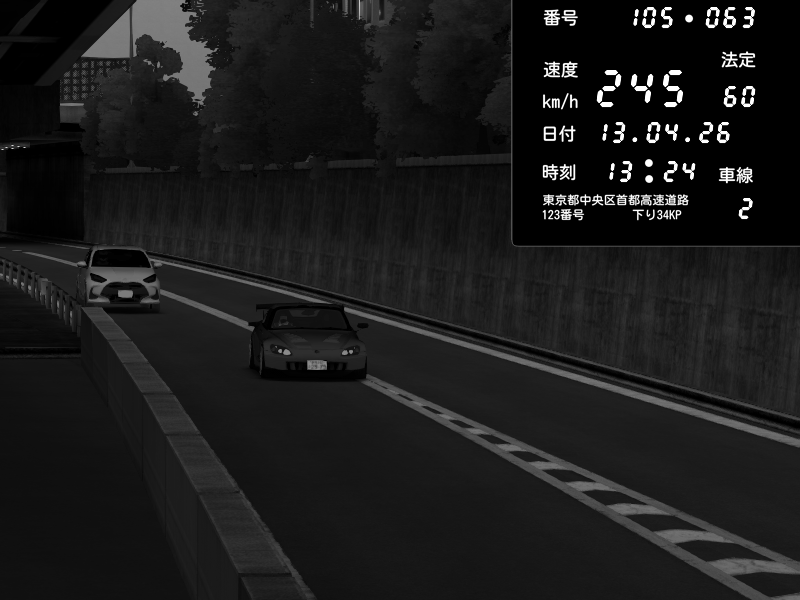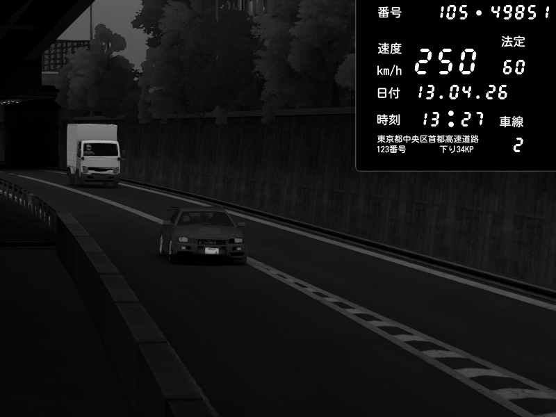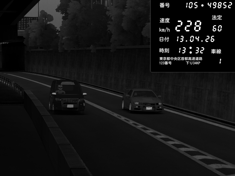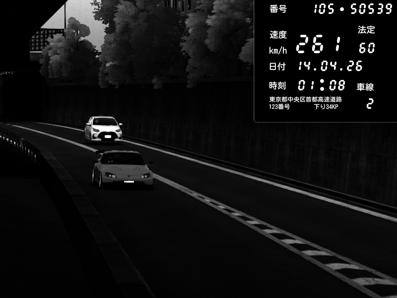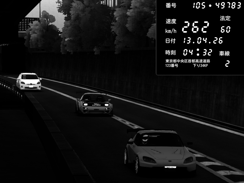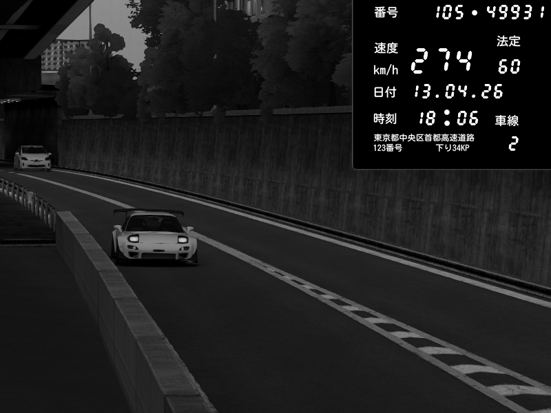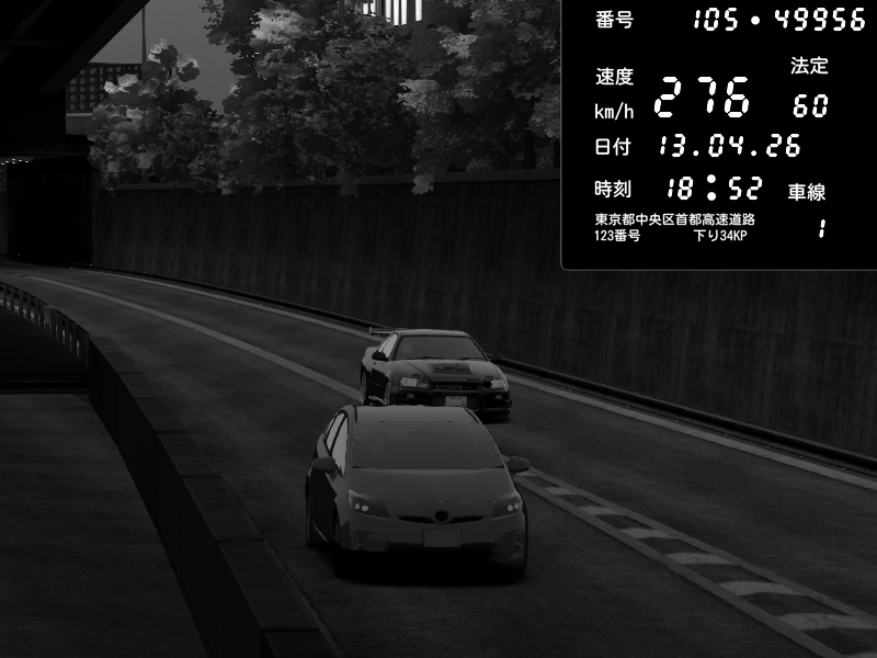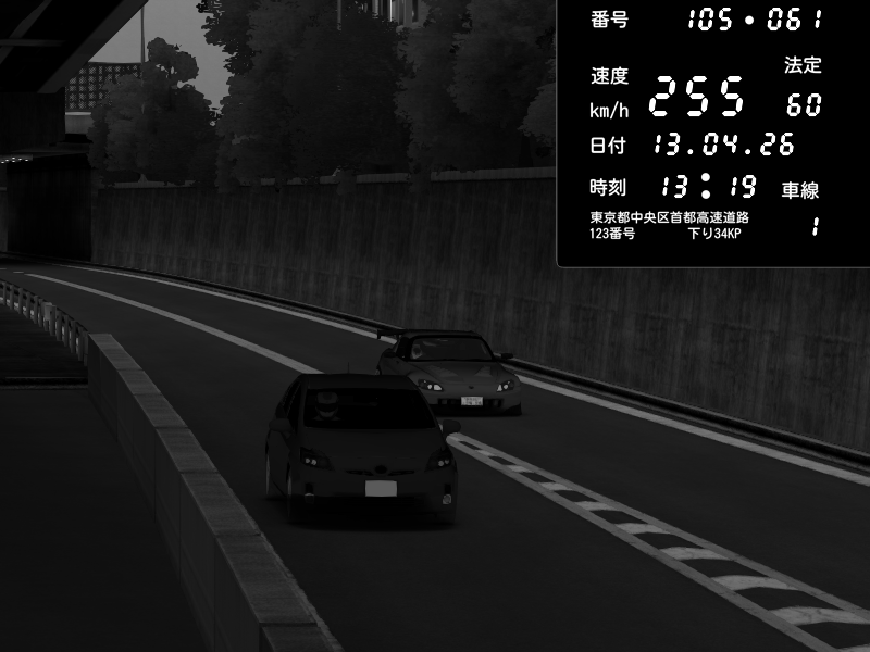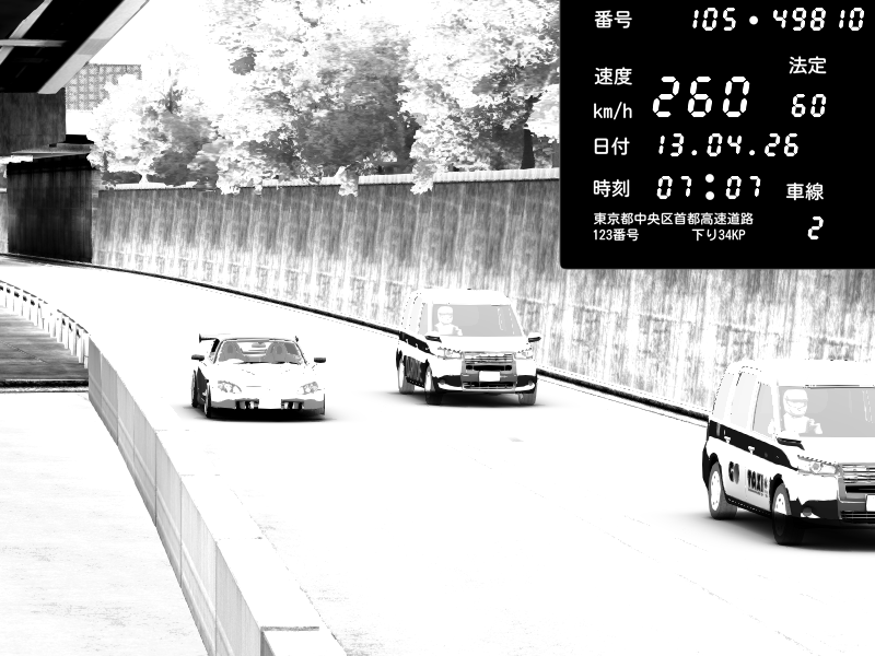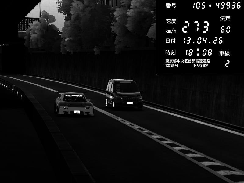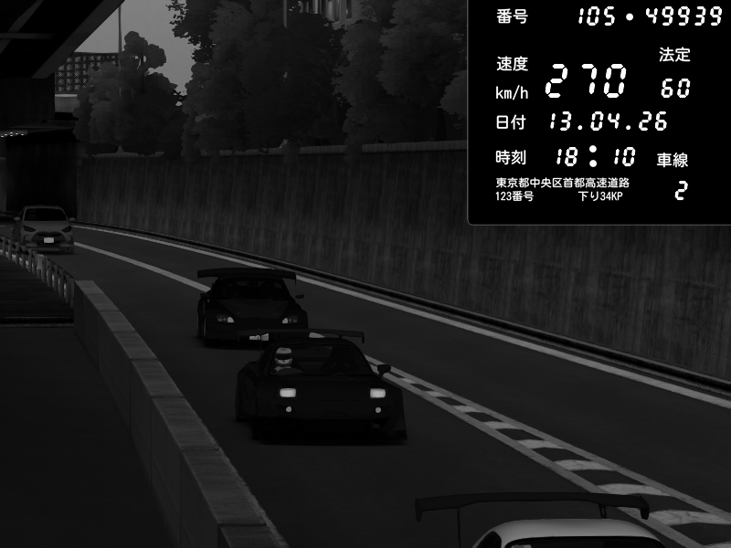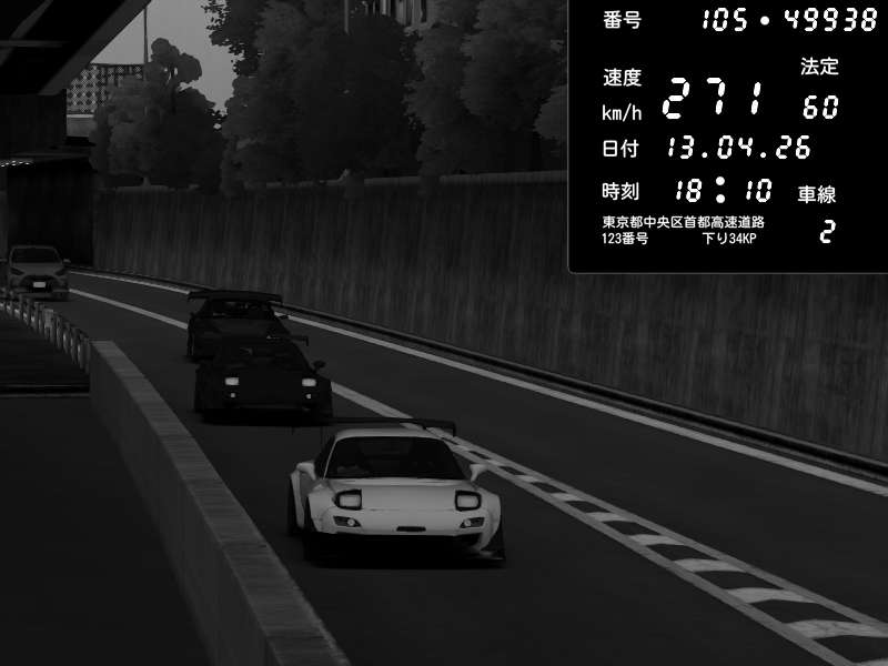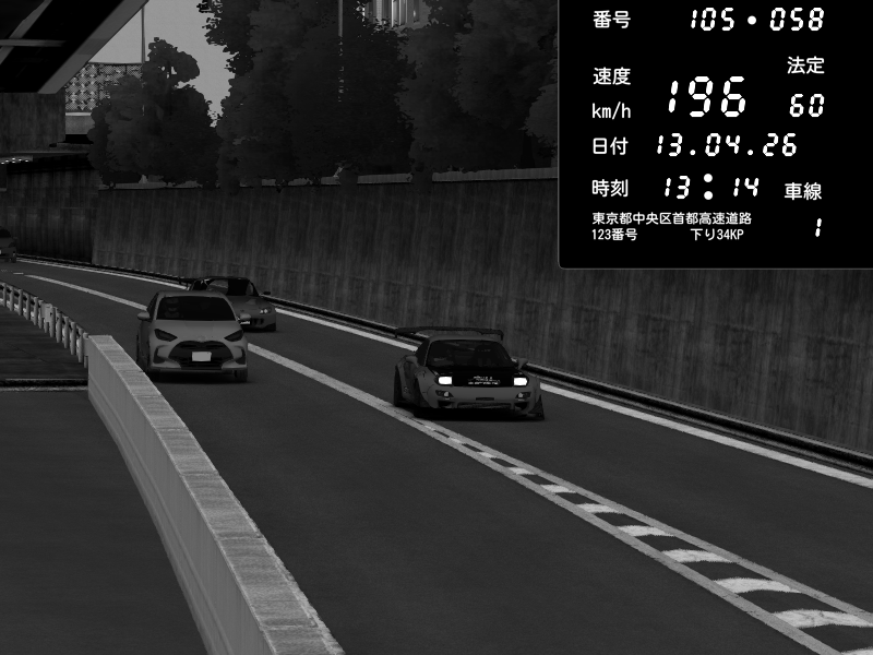 | 2026/04/13 18:09 | C1外回り 京橋 | 273 / 60 km/h | Pixy | Pit Road M - Mitsubishi GTO Twin Turbo | CAPTURE |