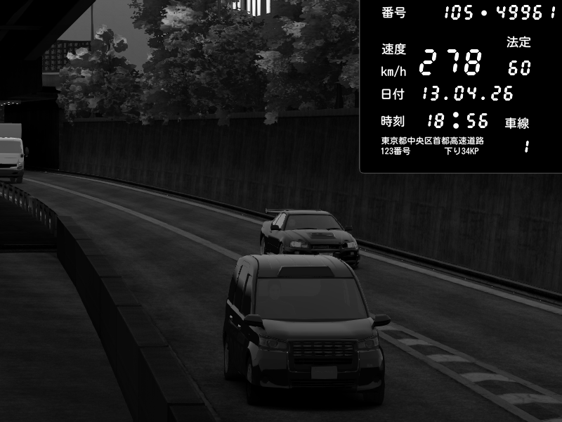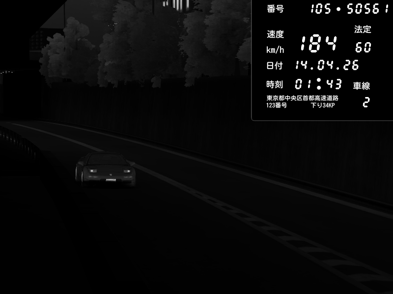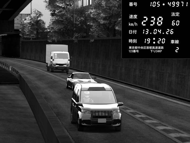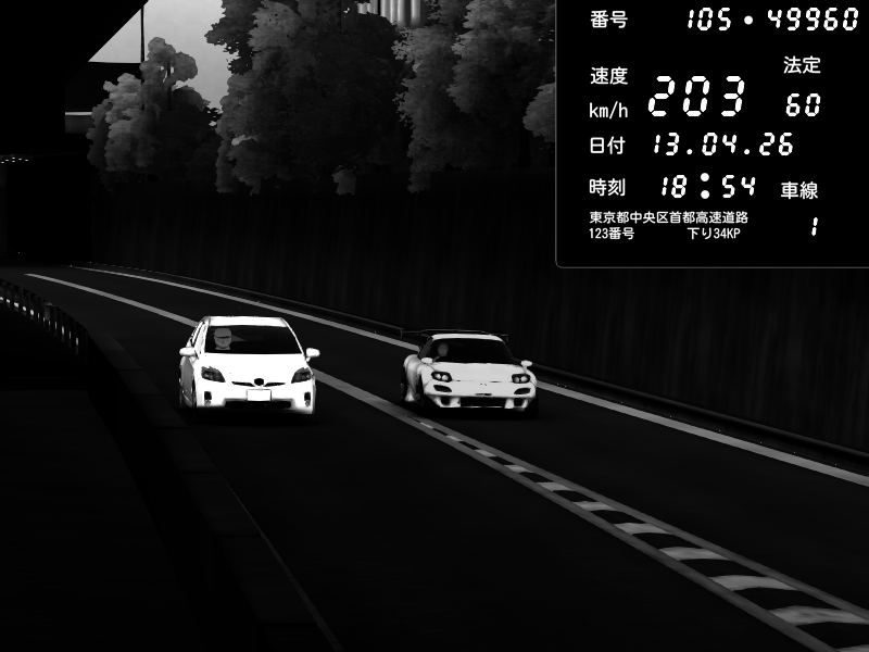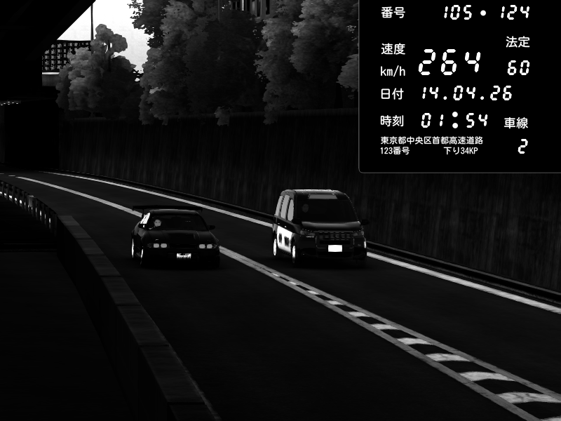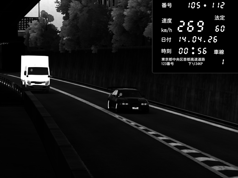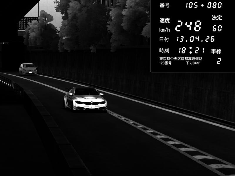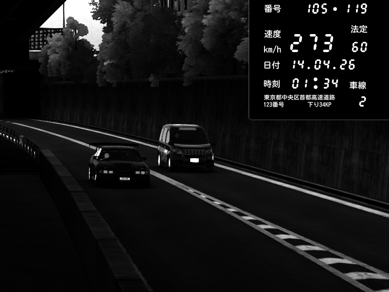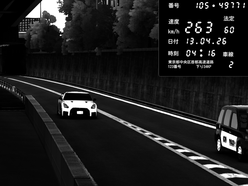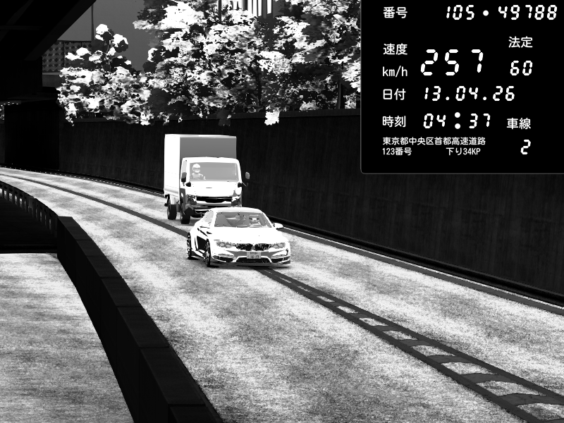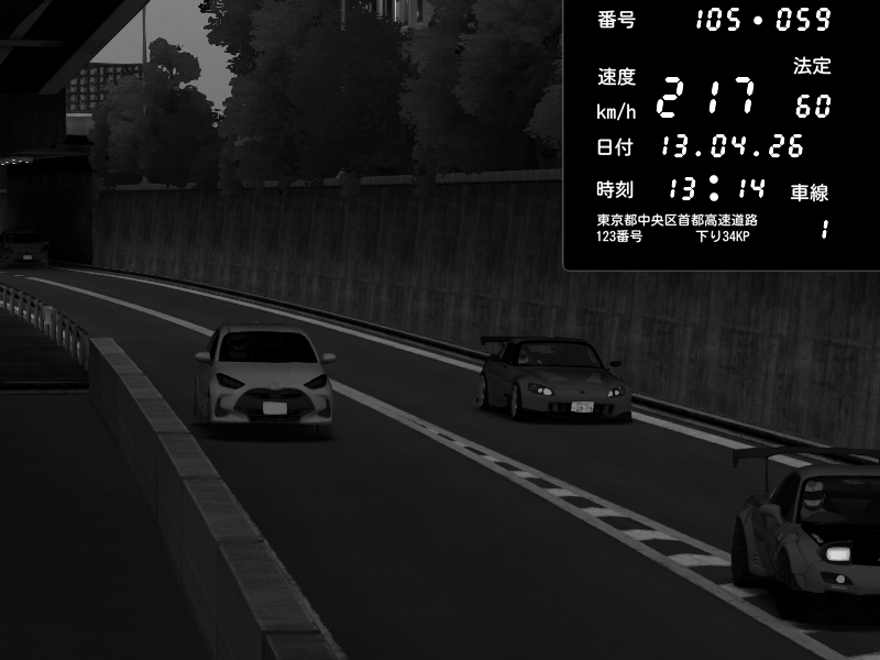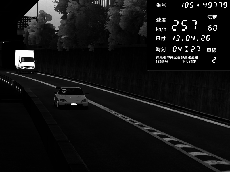 | 2026/04/13 18:09 | C1外回り 京橋 | 273 / 60 km/h | Pixy | Pit Road M - Mitsubishi GTO Twin Turbo | CAPTURE |