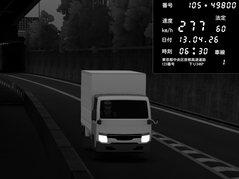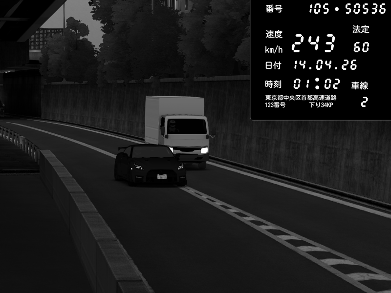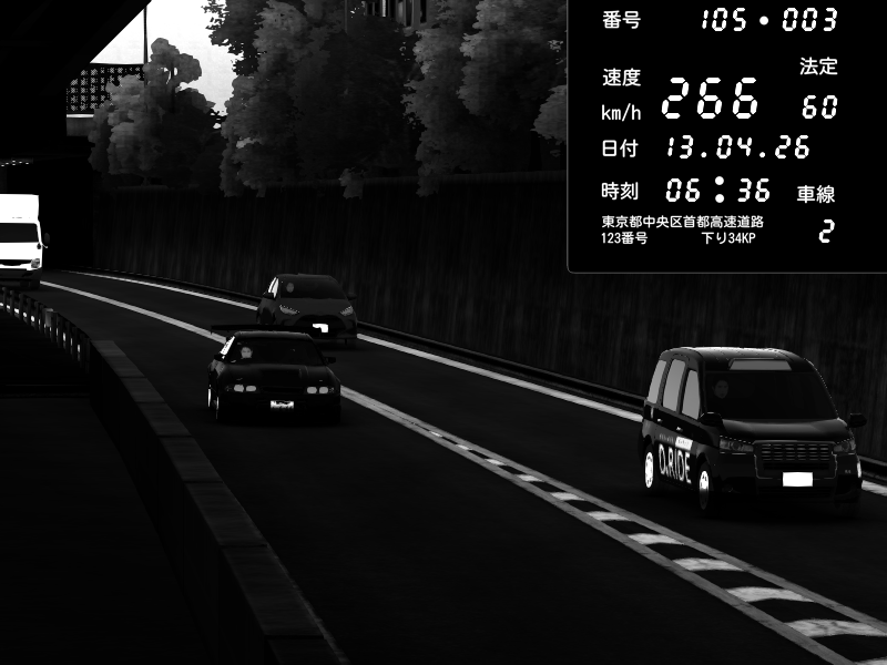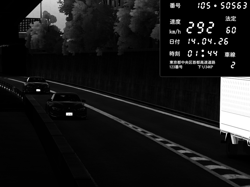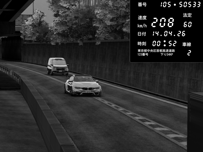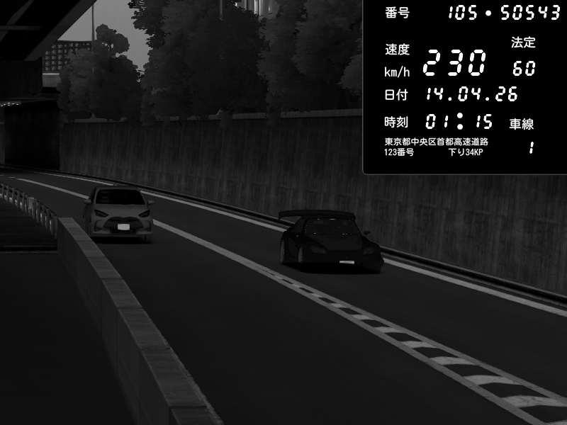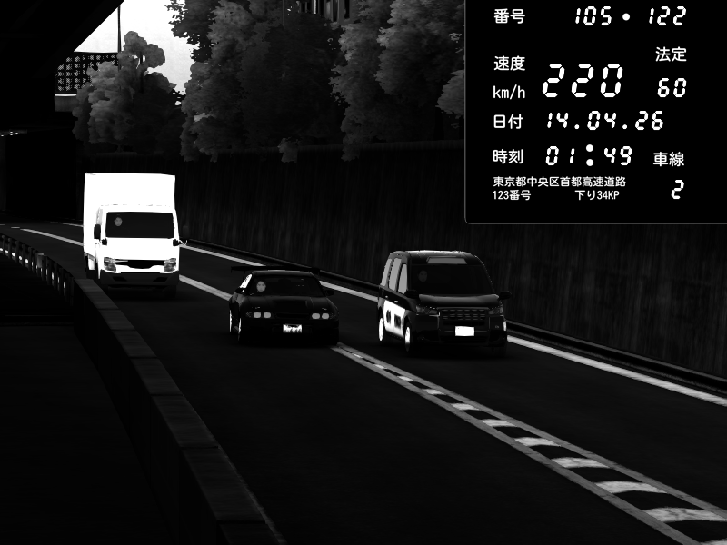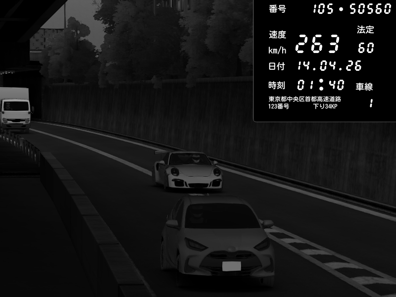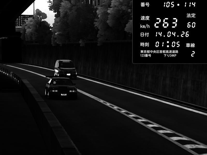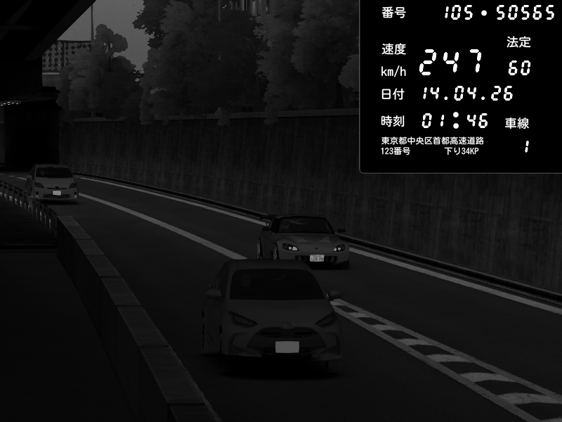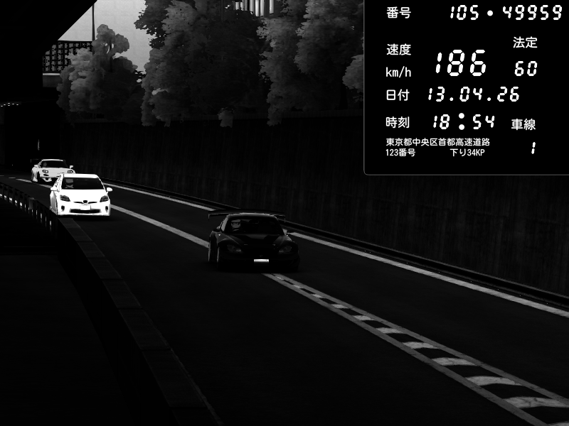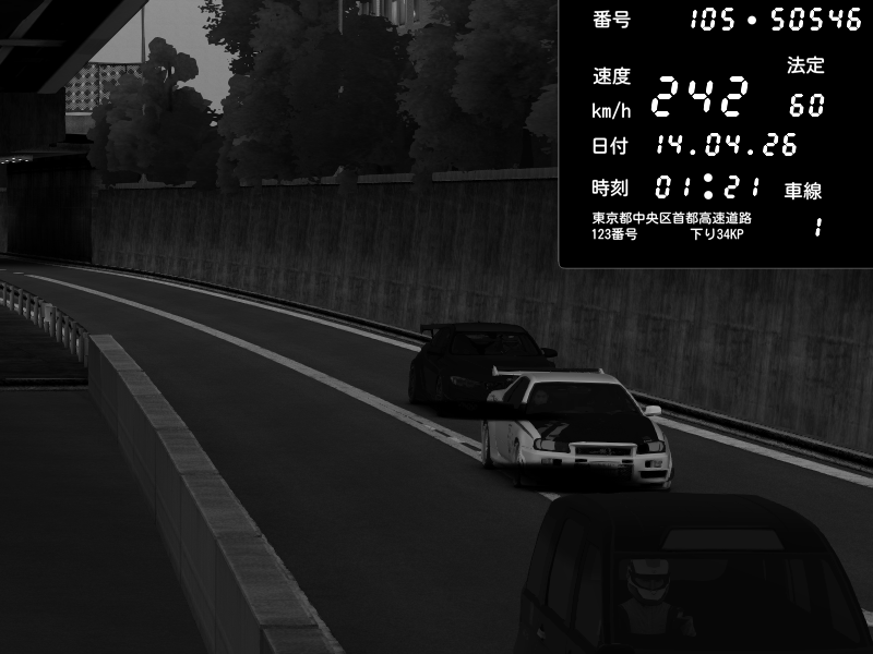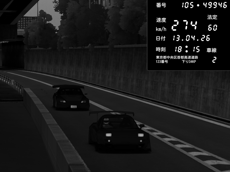 | 2026/04/13 18:09 | C1外回り 京橋 | 273 / 60 km/h | Pixy | Pit Road M - Mitsubishi GTO Twin Turbo | CAPTURE |
