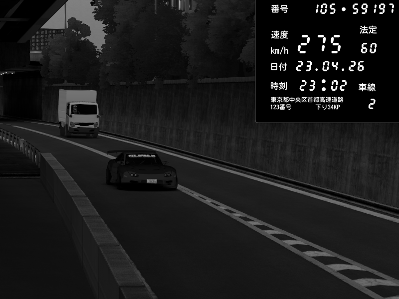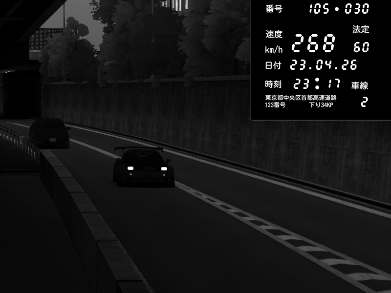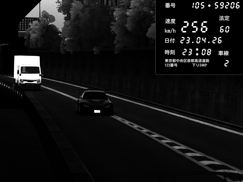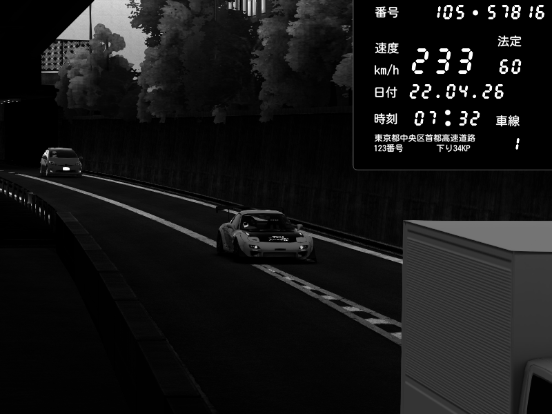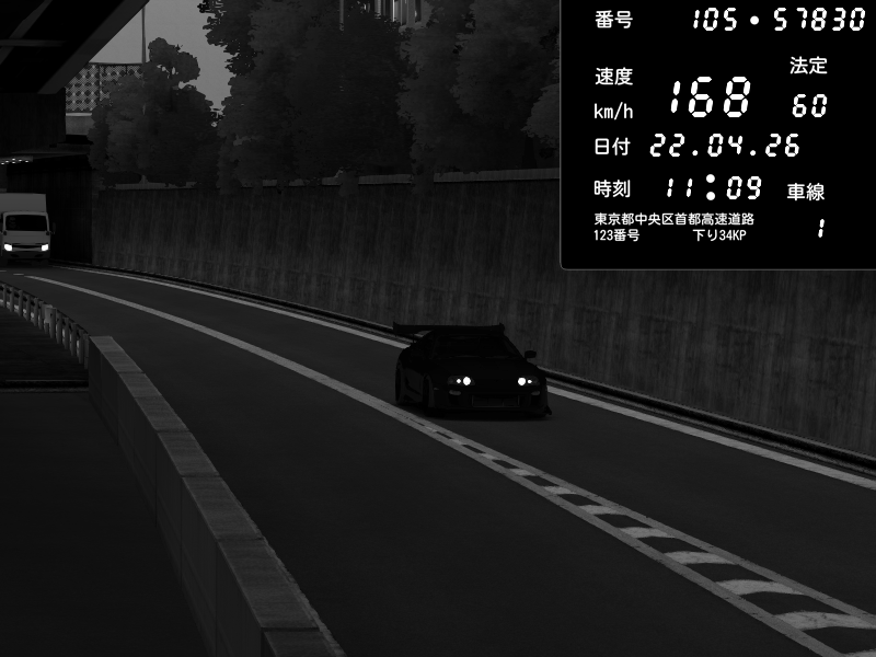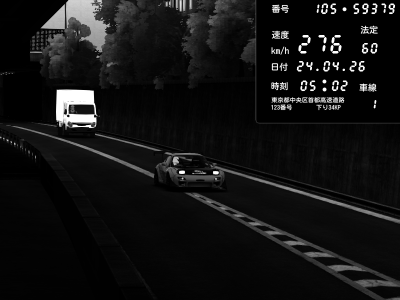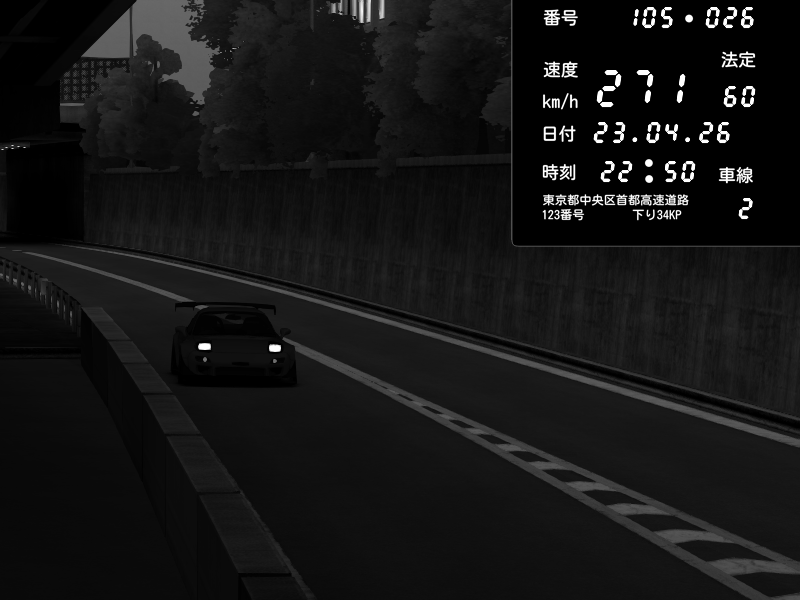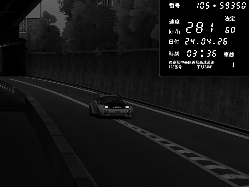 | 2026/04/22 01:18 | C1外回り 京橋 | 237 / 60 km/h | SHOW5-S.R.C.- | Honda NSX [NA1] PVLSX | CAPTURE |