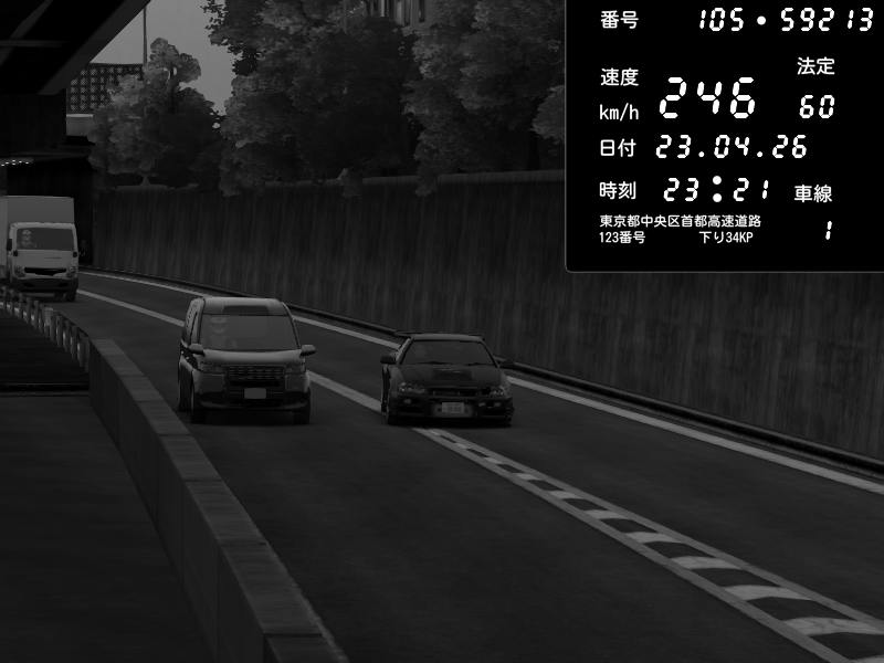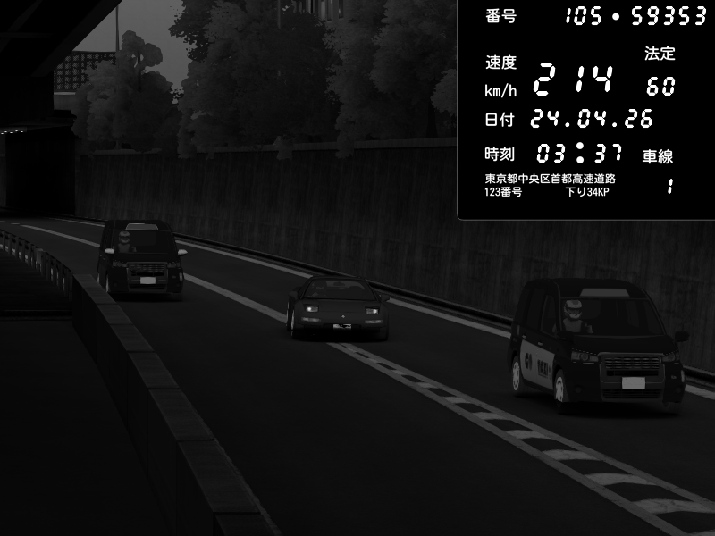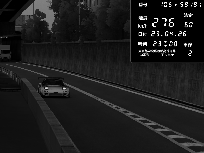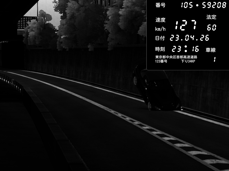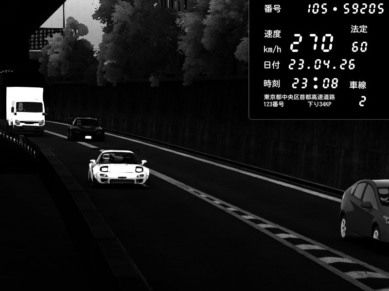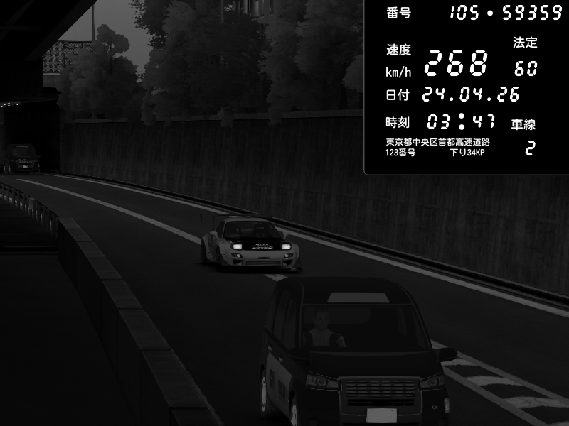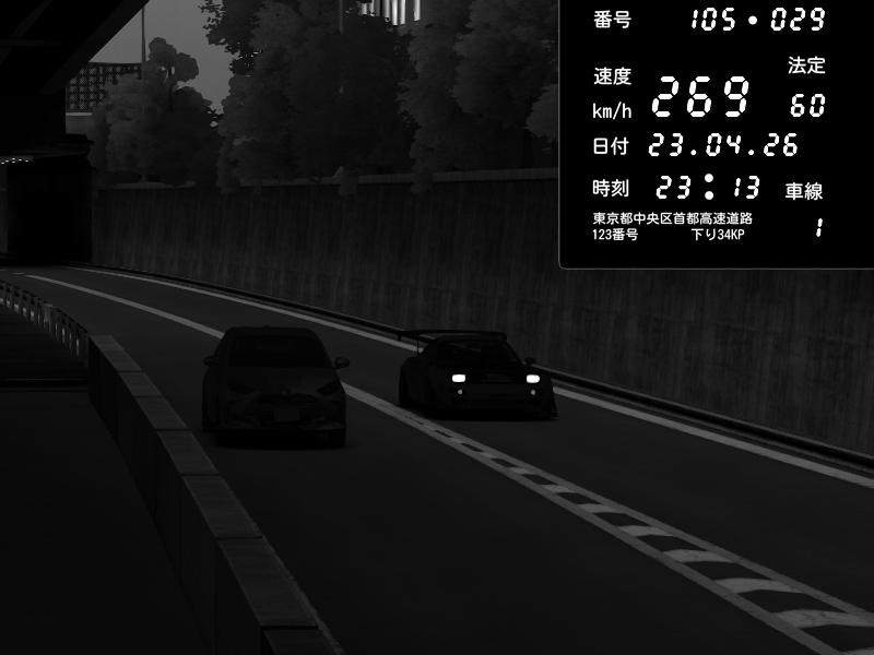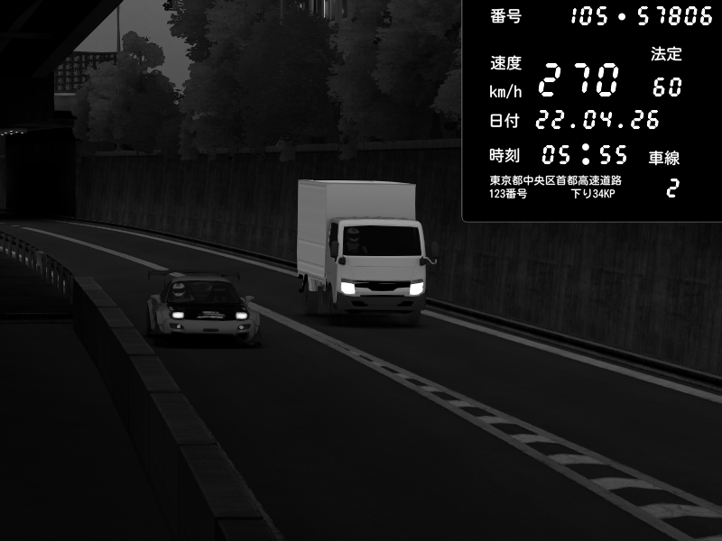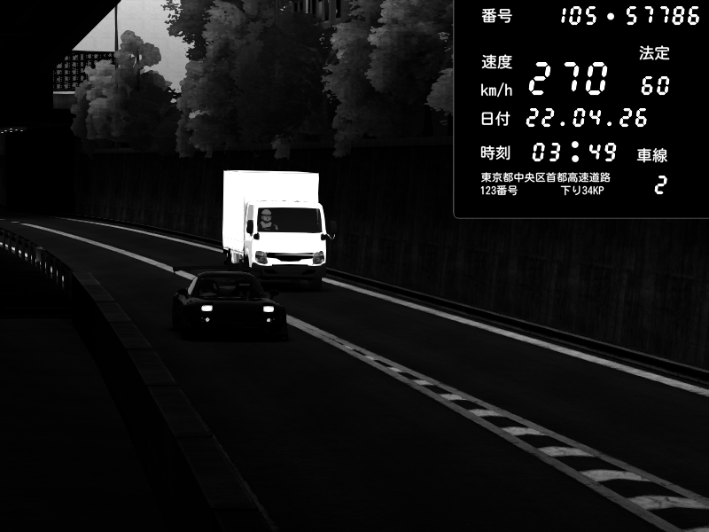 | 2026/04/22 01:18 | C1外回り 京橋 | 237 / 60 km/h | SHOW5-S.R.C.- | Honda NSX [NA1] PVLSX | CAPTURE |
