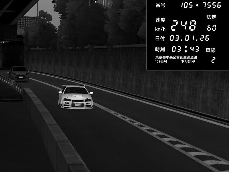 | 2026/01/03 04:58 | C1外回り 京橋 | 239 / 60 km/h | SXUNDWAVE | Honda S2000 (AP2 - Legendary) | CAPTURE |
