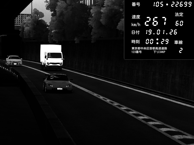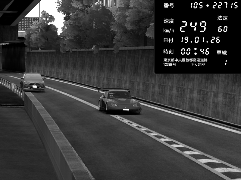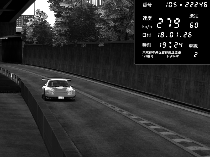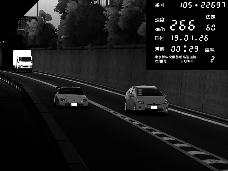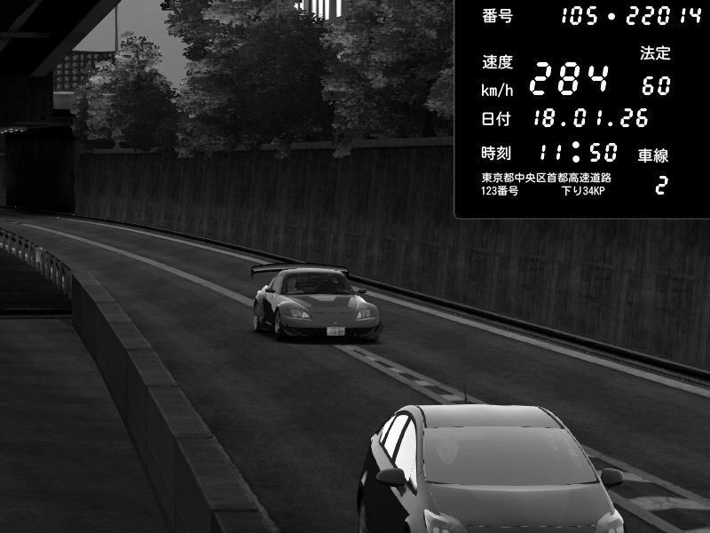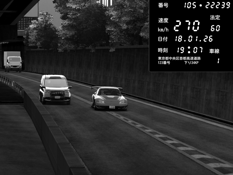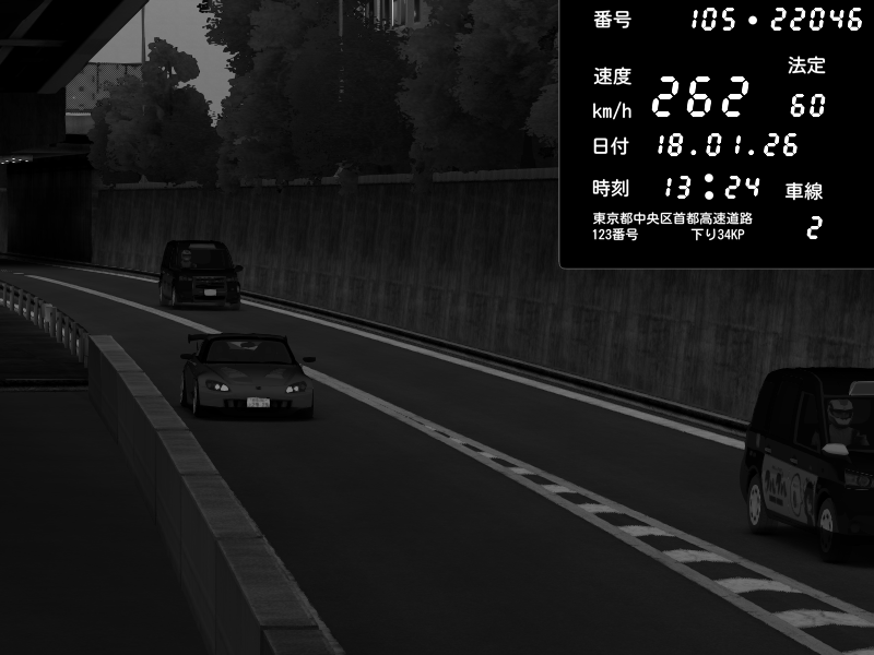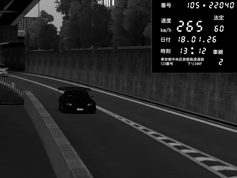 | 2026/01/19 00:29 | C1外回り 京橋 | 267 / 60 km/h | Escape77JP@pad | Honda S2000 (AP2 - Legendary) | CAPTURE |