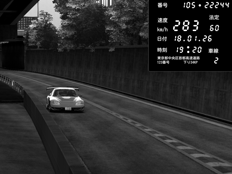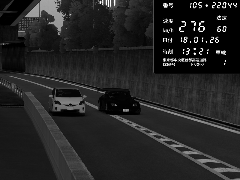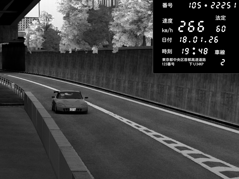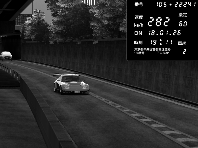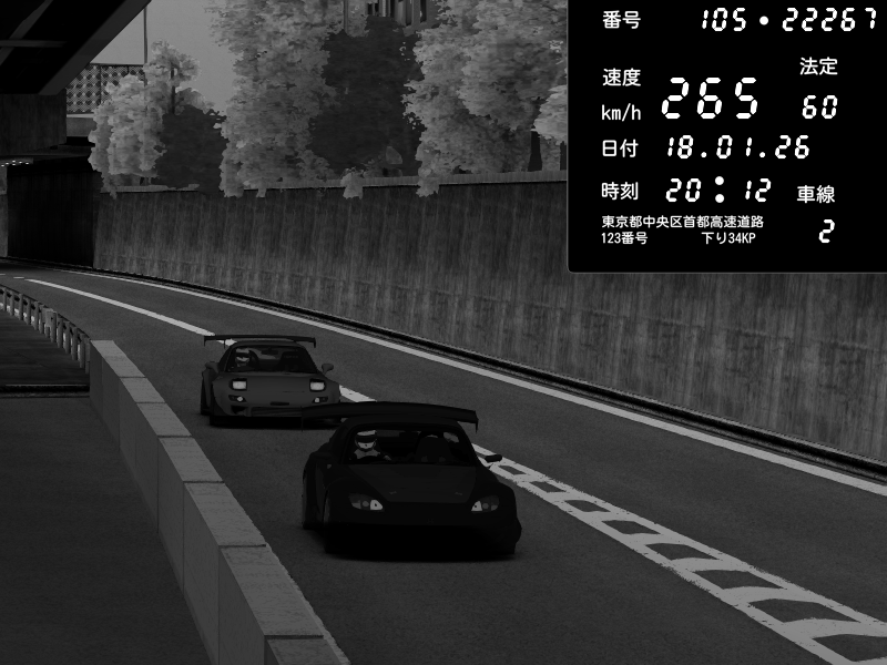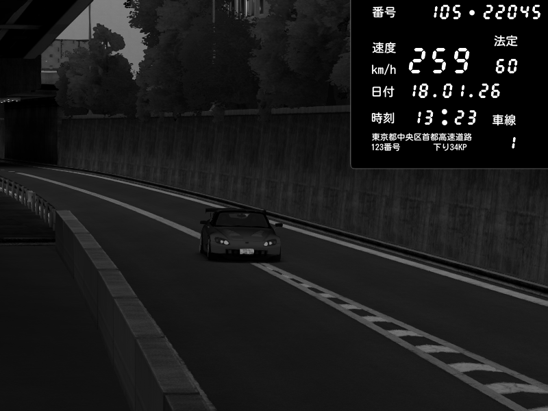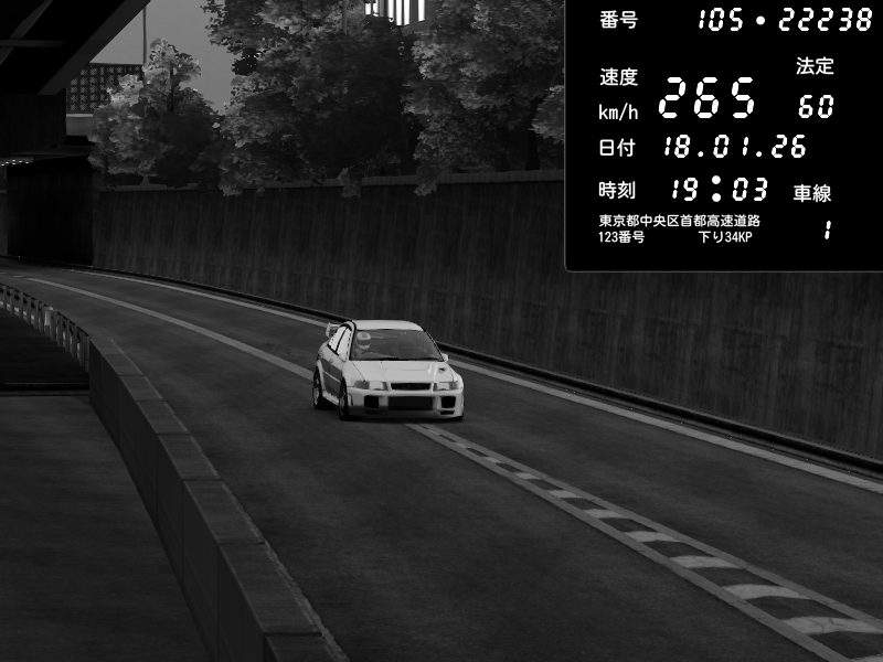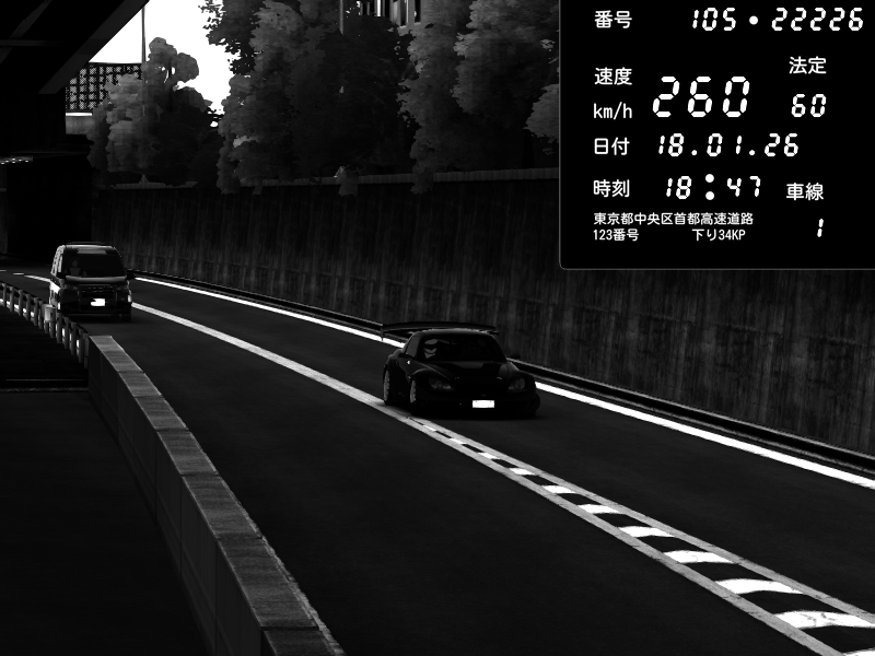 | 2026/01/19 00:29 | C1外回り 京橋 | 267 / 60 km/h | Escape77JP@pad | Honda S2000 (AP2 - Legendary) | CAPTURE |