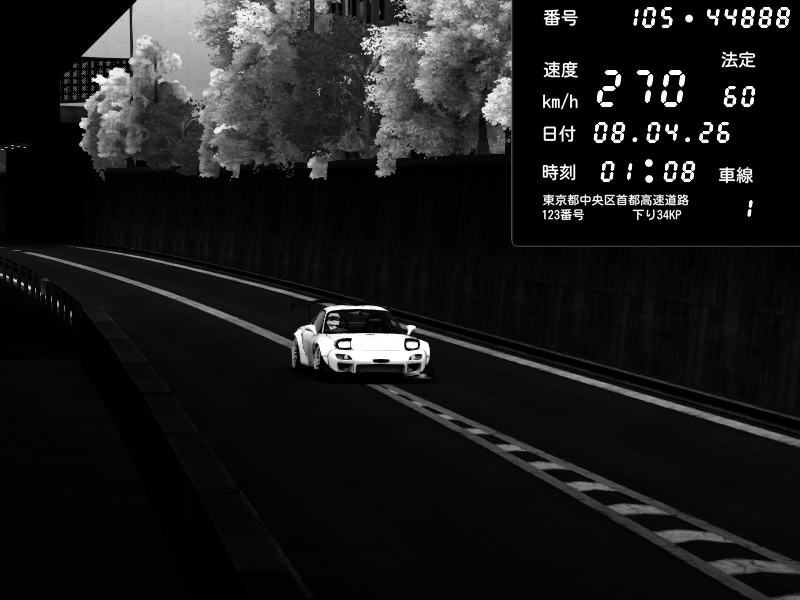 | 2026/04/07 23:59 | C1外回り 京橋 | 271 / 60 km/h | Genove_Slant | Mazda RX-7 FD3S FEED Afflux GT3 | CAPTURE |