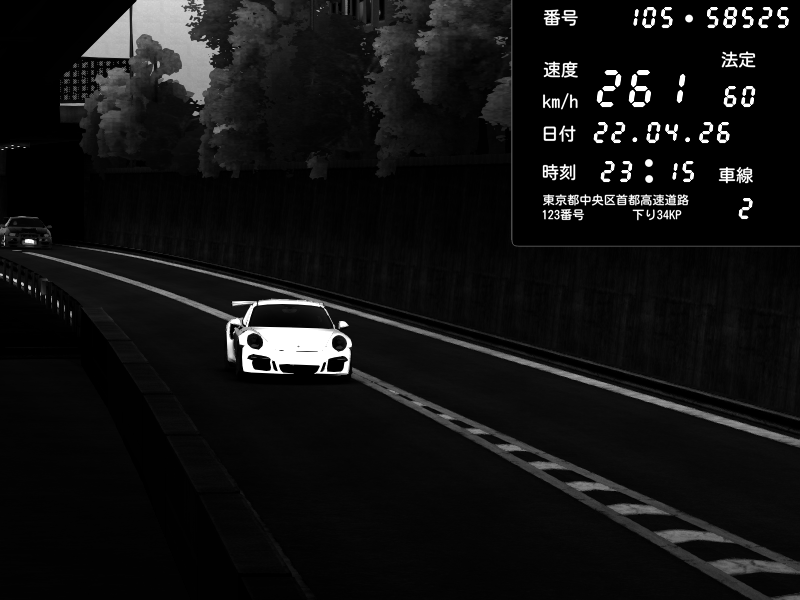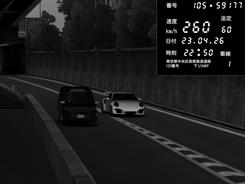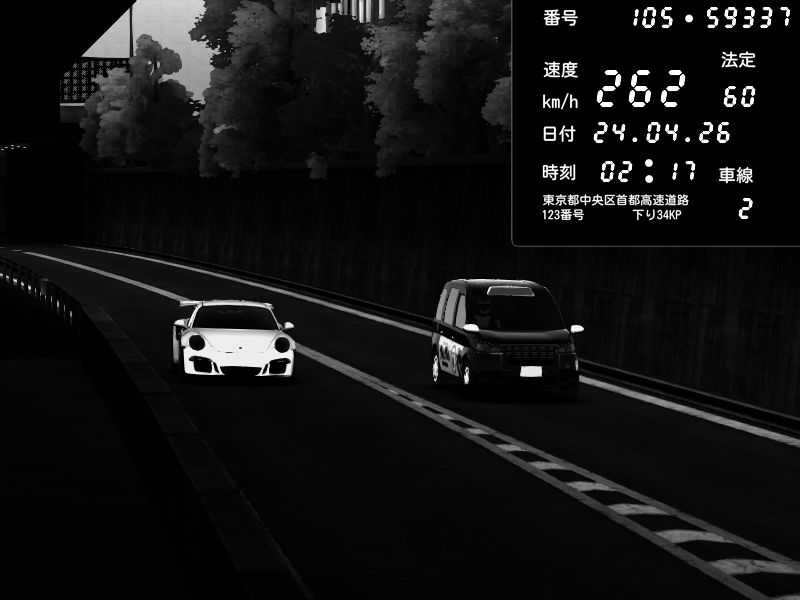 | 2026/04/22 00:59 | C1外回り 京橋 | 260 / 60 km/h | クロちゃん | Porsche 911 GT3 RS | CAPTURE |
