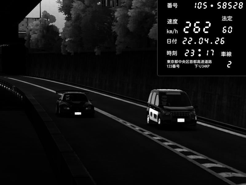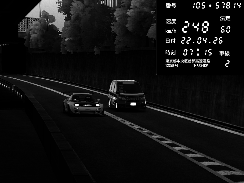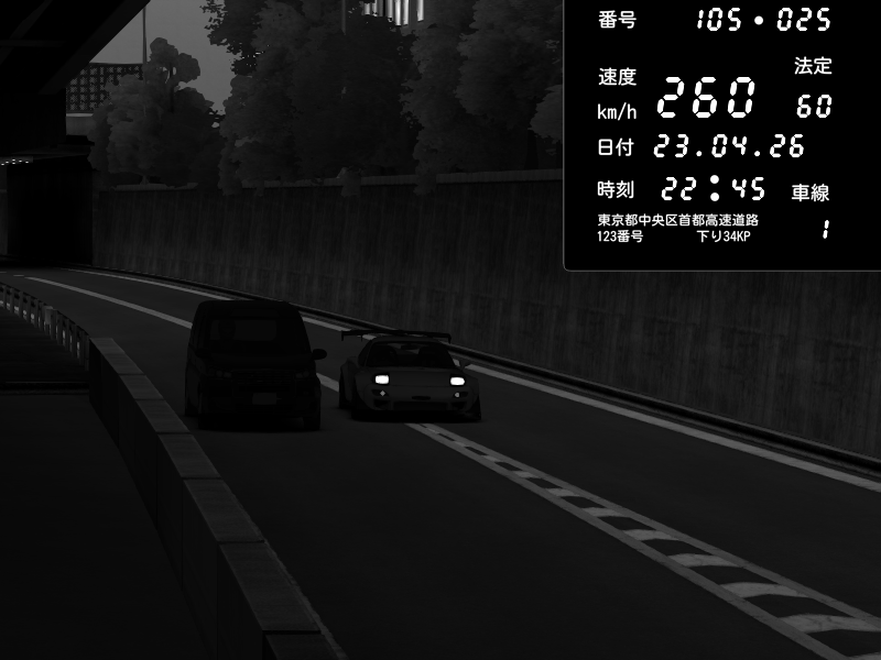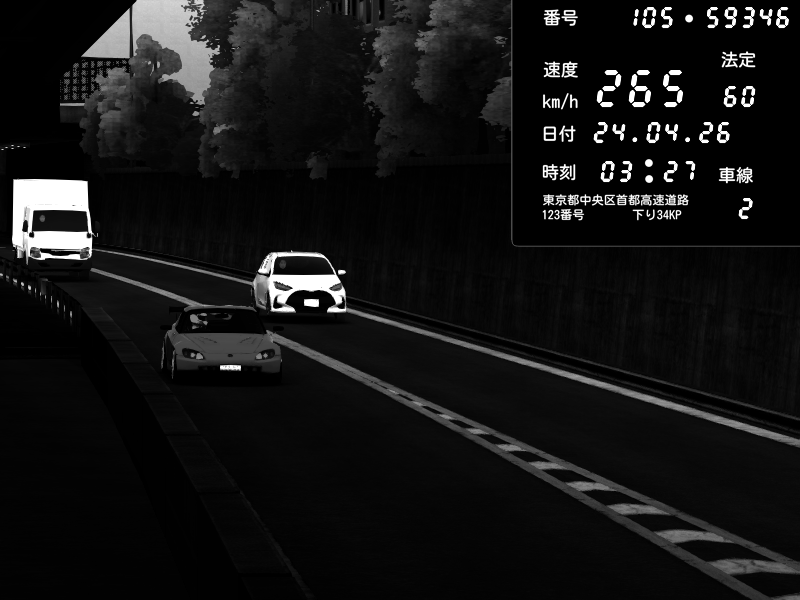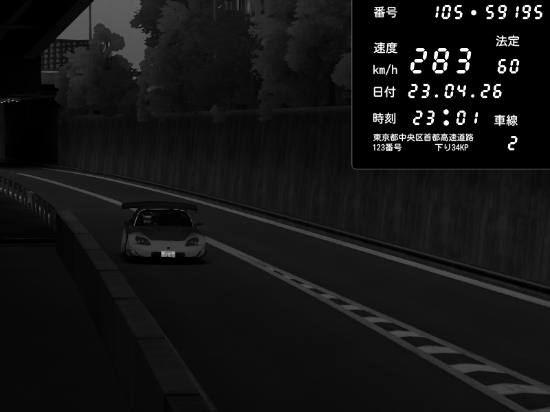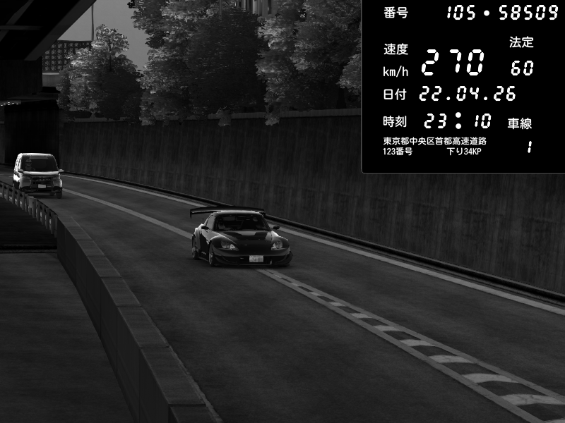 | 2026/04/22 01:05 | C1外回り 京橋 | 263 / 60 km/h | LxLxNPLAYA | Honda S2000 (AP2 - Legendary) | CAPTURE |