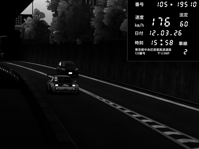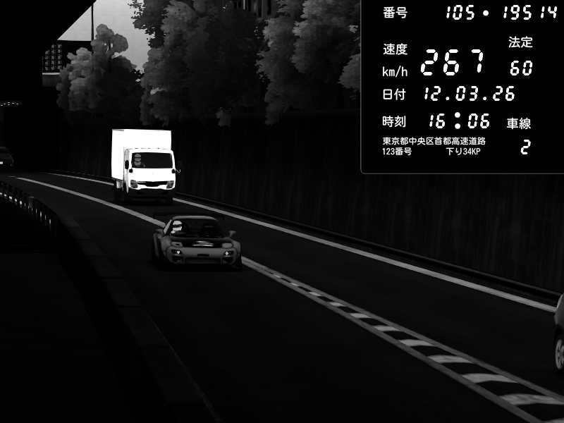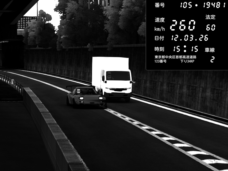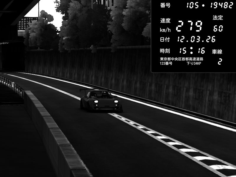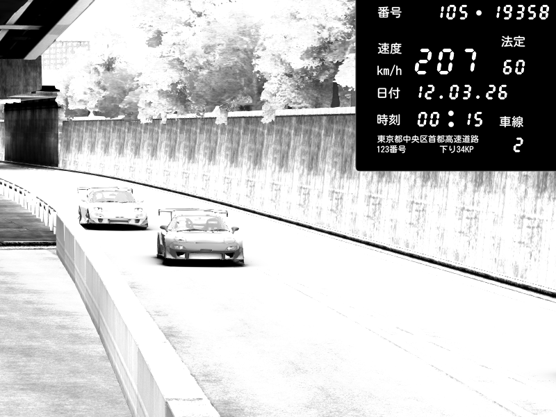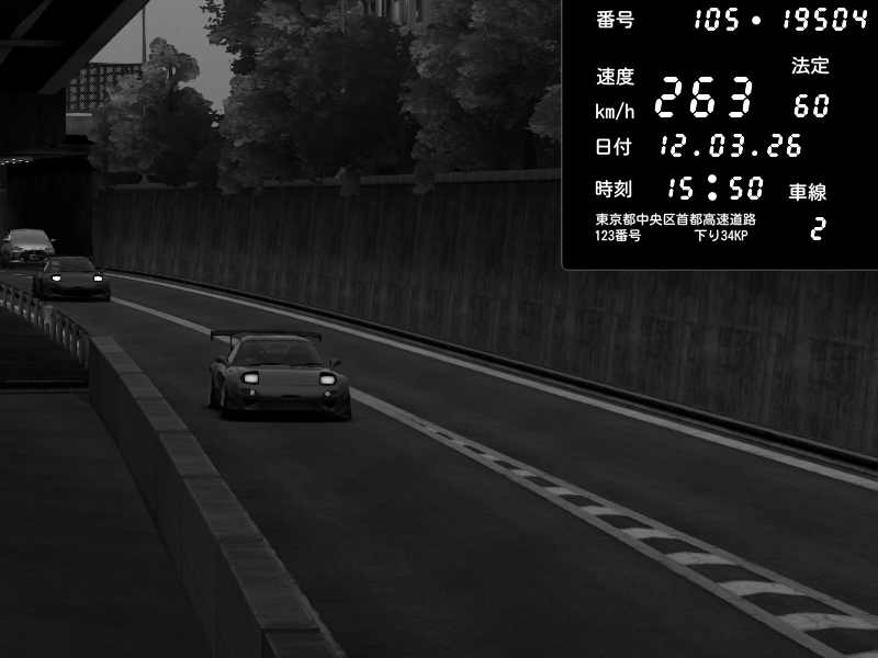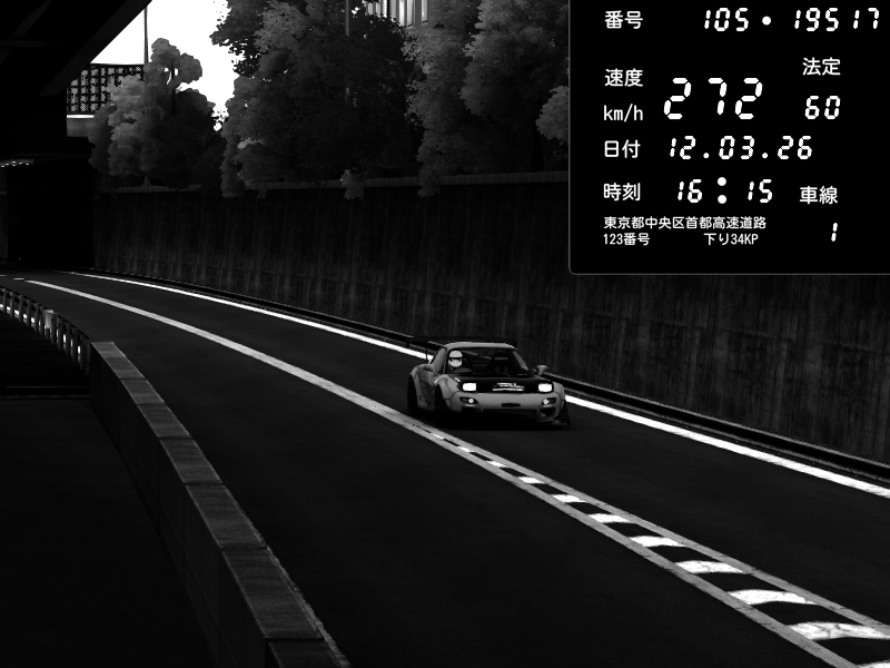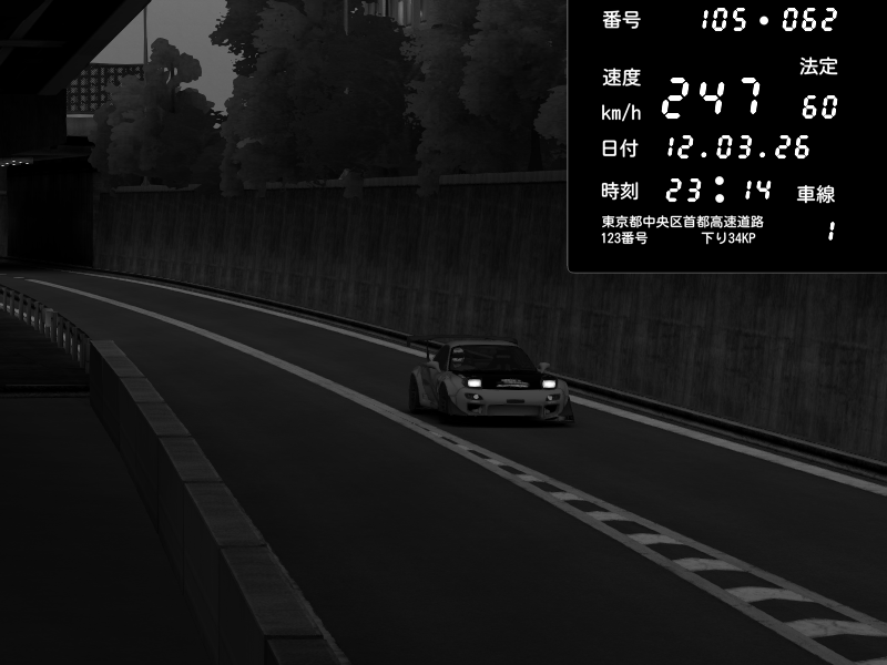 | 2026/03/12 15:15 | C1外回り 京橋 | 260 / 60 km/h | kyuru | Mazda RX-7 FD3S FEED Afflux GT3 | CAPTURE |
