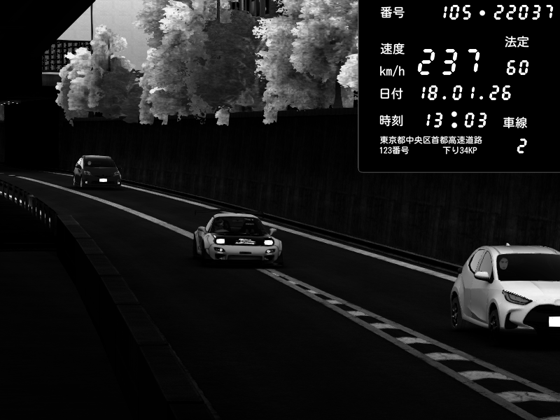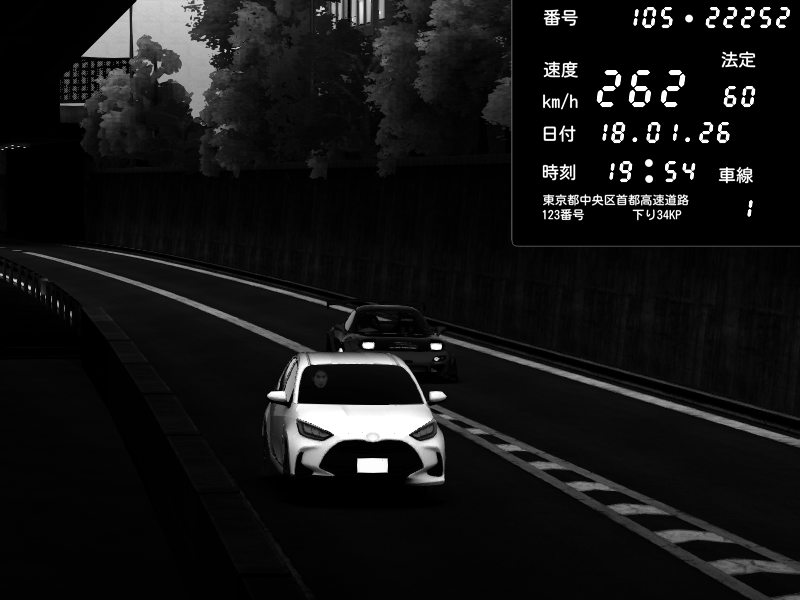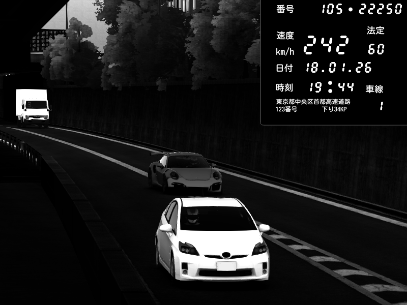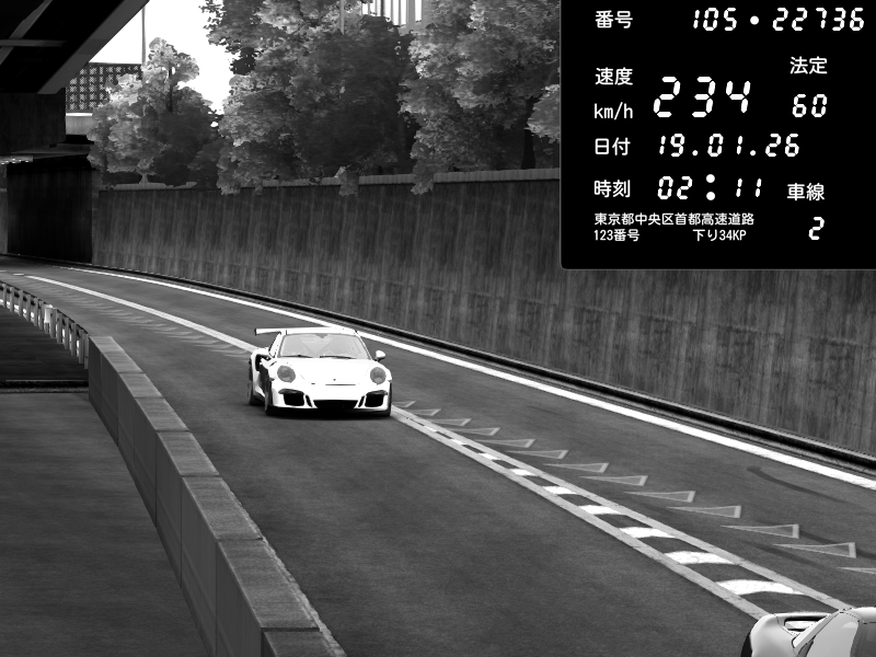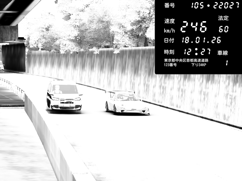 | 2026/01/19 02:12 | C1外回り 京橋 | 234 / 60 km/h | yelowskim | Porsche 911 GT3 RS | CAPTURE |