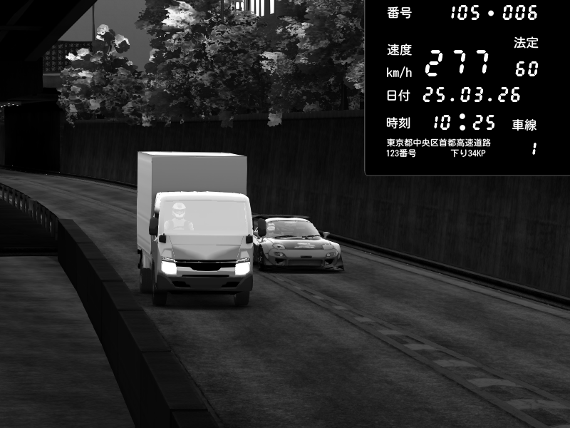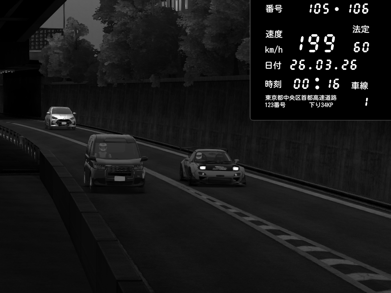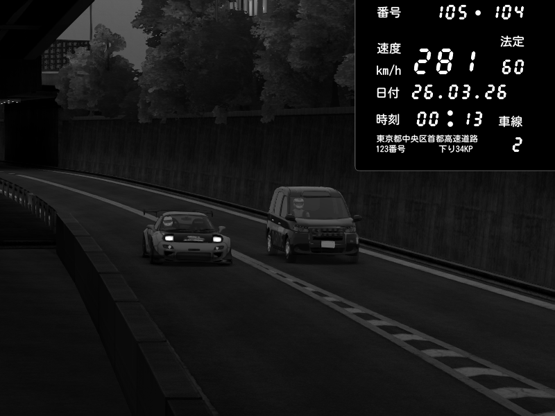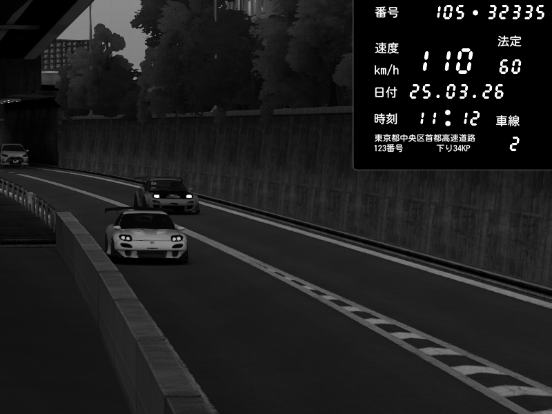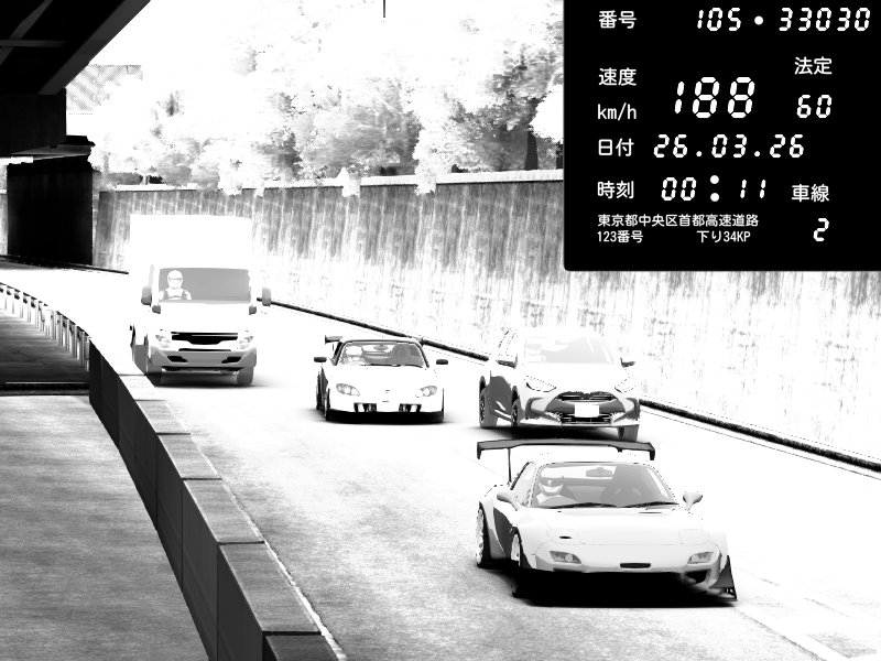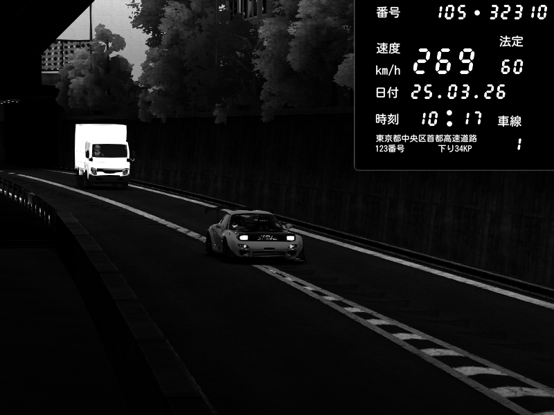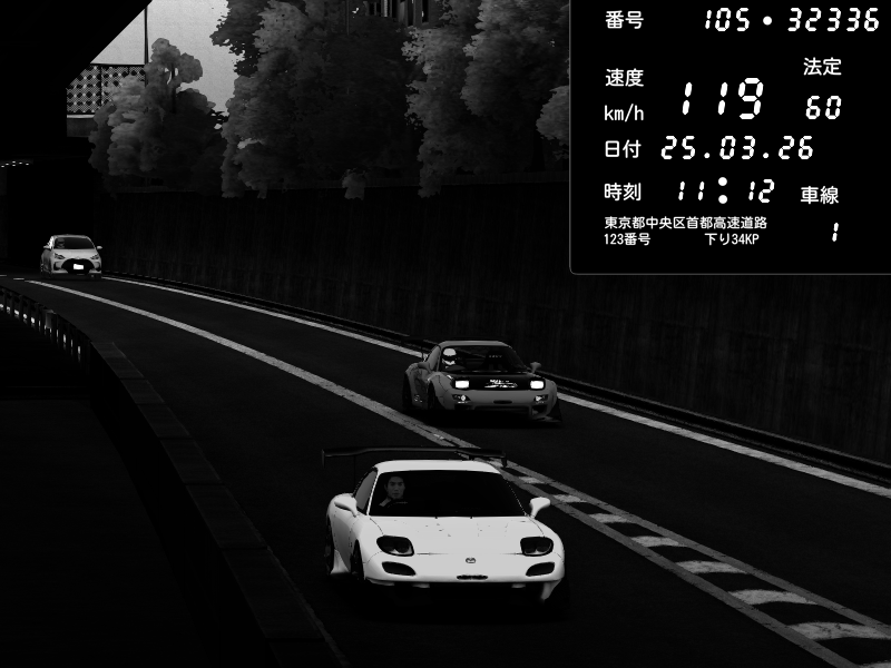 | 2026/03/25 11:12 | C1外回り 京橋 | 110 / 60 km/h | dome | Mazda RX-7 FD3S RE Amemiya | CAPTURE |