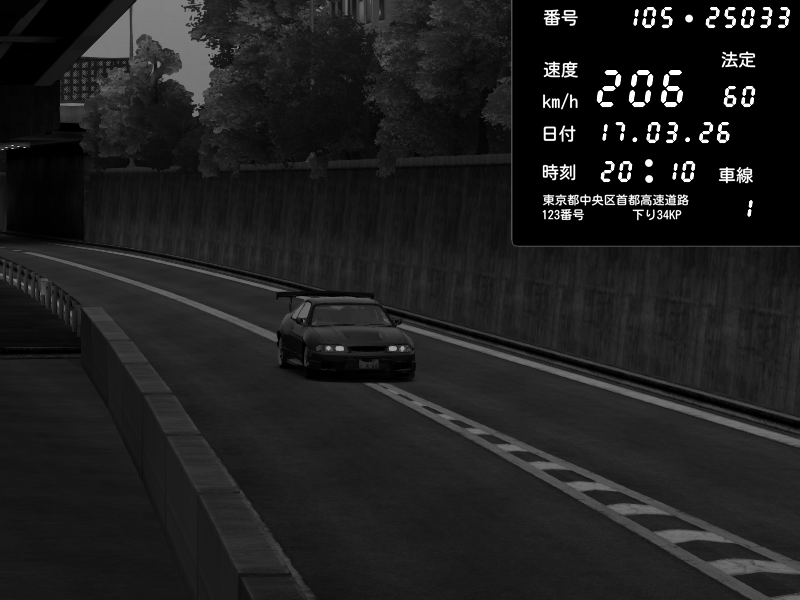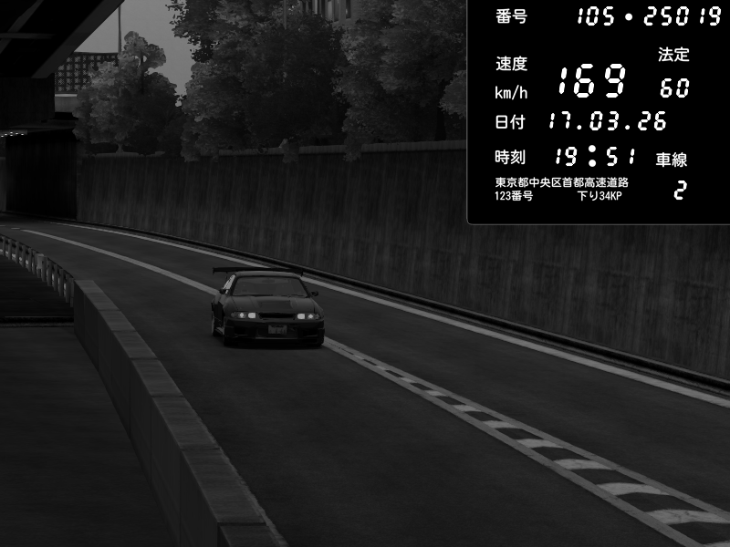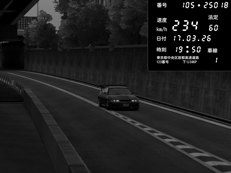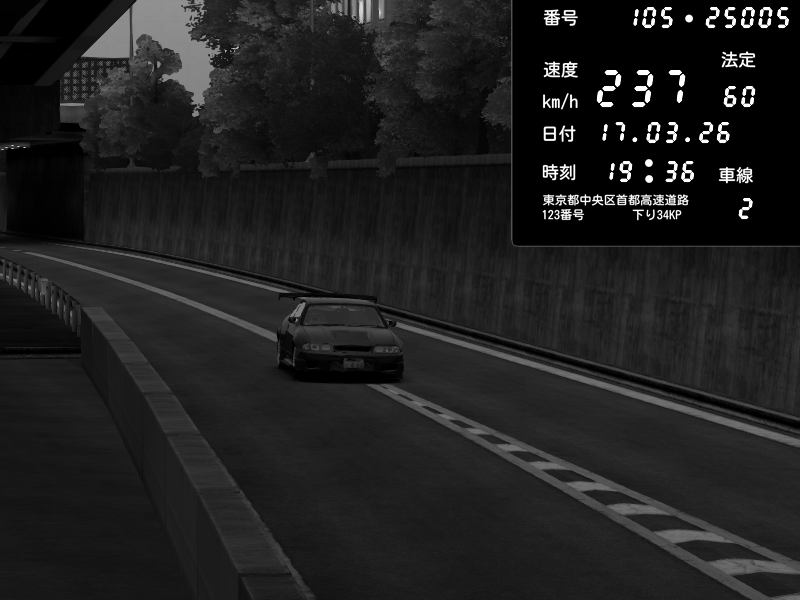 | 2026/03/17 19:50 | C1外回り 京橋 | 234 / 60 km/h | yuta002 | Nissan Skyline GTR R33 (S3 - Wangan) | CAPTURE |