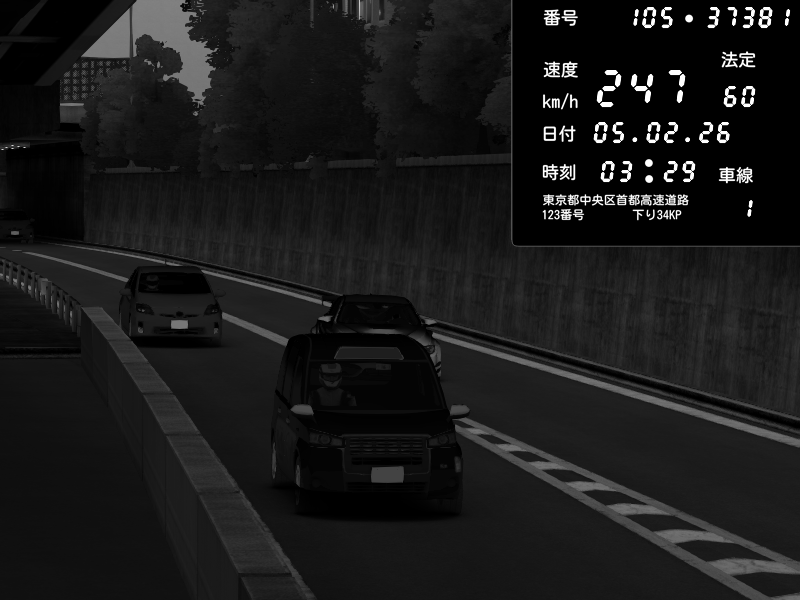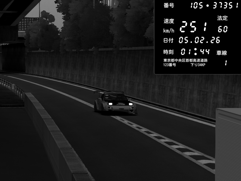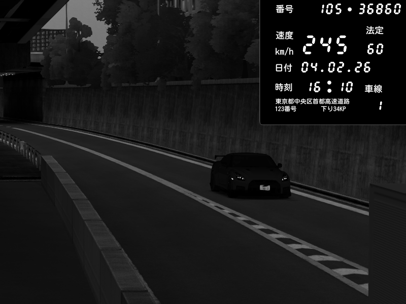 | 2026/02/05 01:43 | C1外回り 京橋 | 223 / 60 km/h | slowly_killer | Nissan Skyline GTR R33 (S3 - Wangan) | CAPTURE |