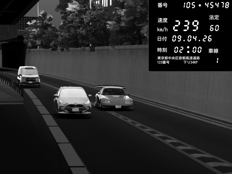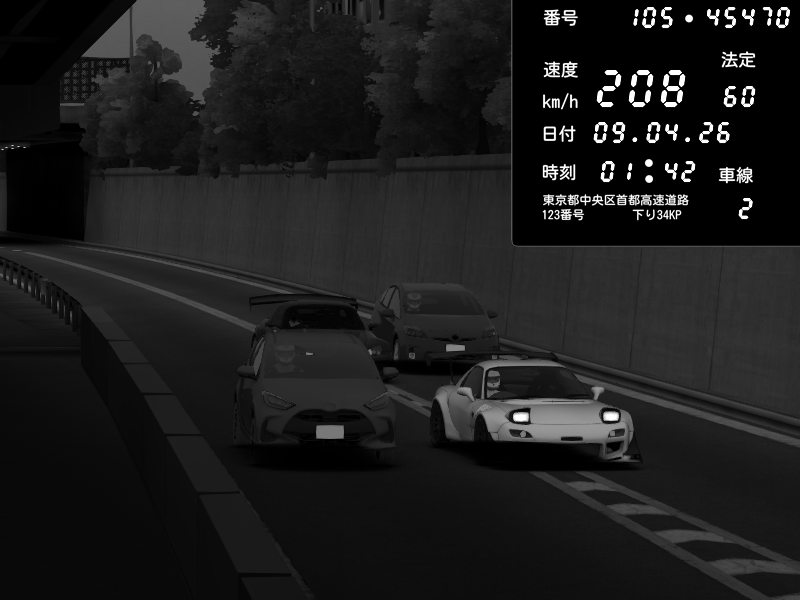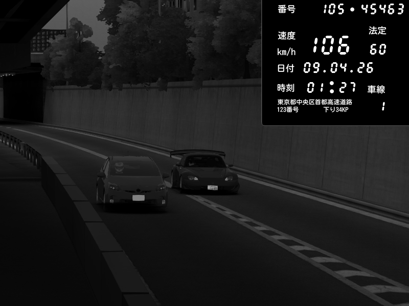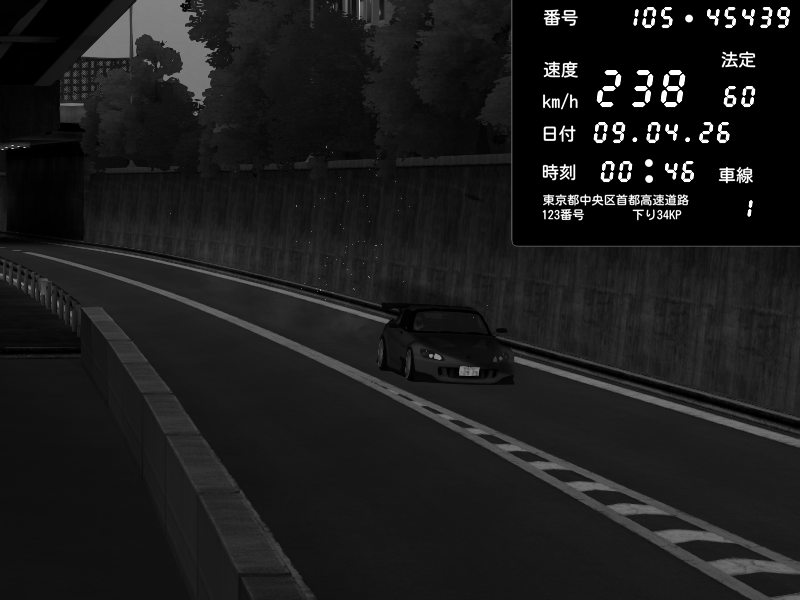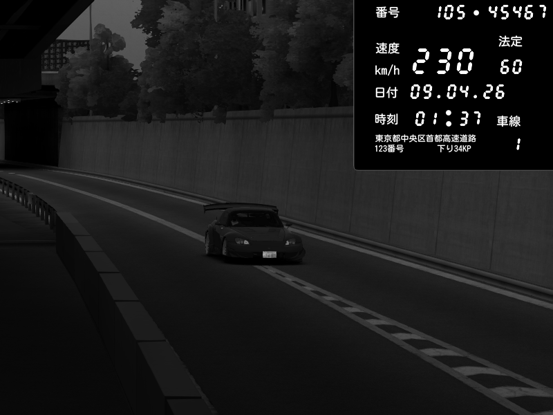 | 2026/04/09 01:37 | C1外回り 京橋 | 230 / 60 km/h | ( ・▽・) | Honda S2000 Turbo GT1 Amuse (AP1) | CAPTURE |
