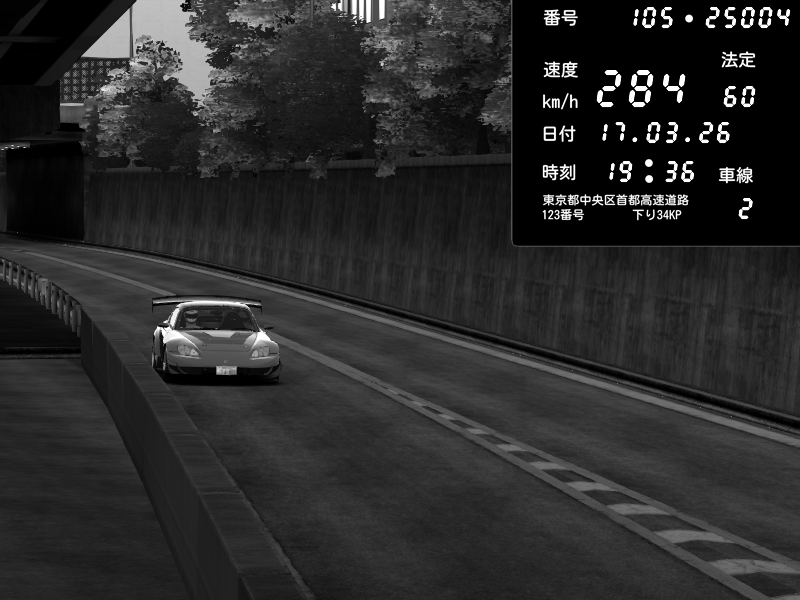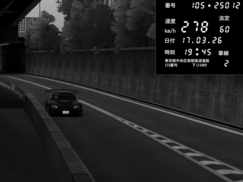 | 2026/03/17 19:45 | C1外回り 京橋 | 278 / 60 km/h | U-0 | Honda S2000 Turbo GT1 Amuse (AP1) | CAPTURE |