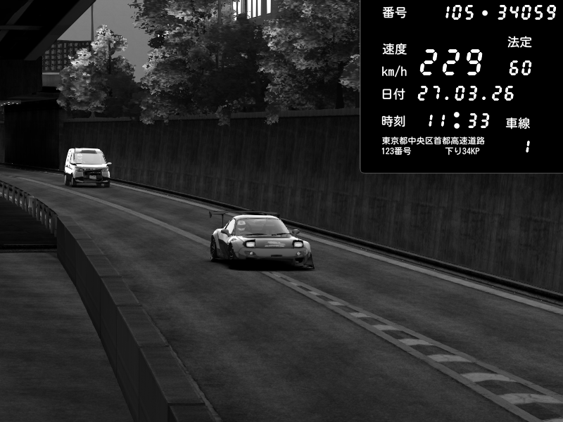 | 2026/03/27 11:33 | C1外回り 京橋 | 229 / 60 km/h | kan | Mazda RX-7 FD3S FEED Afflux GT3 | CAPTURE |