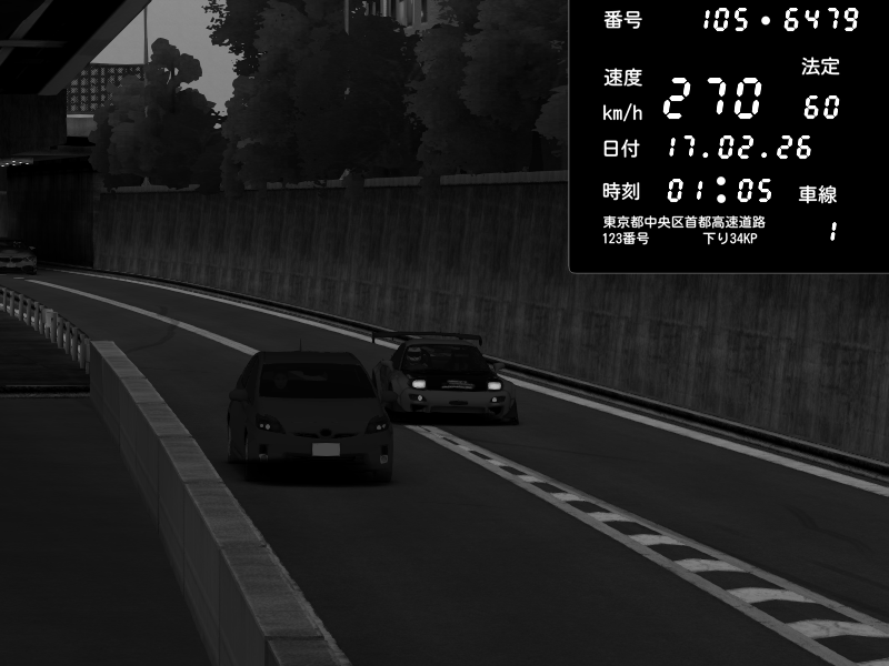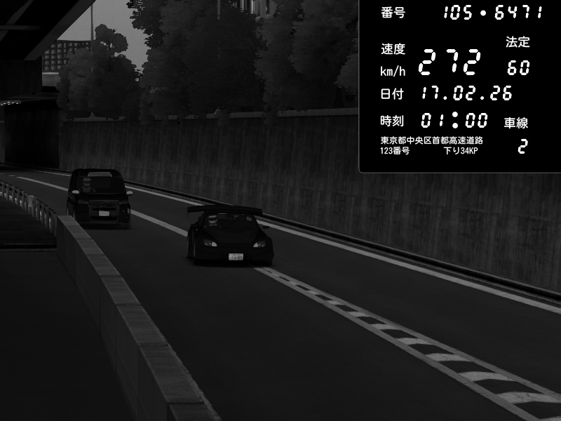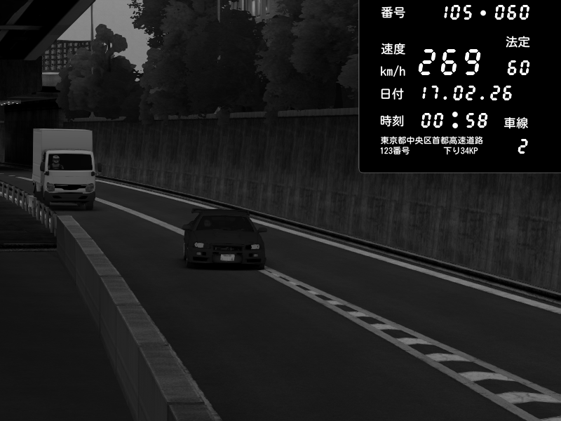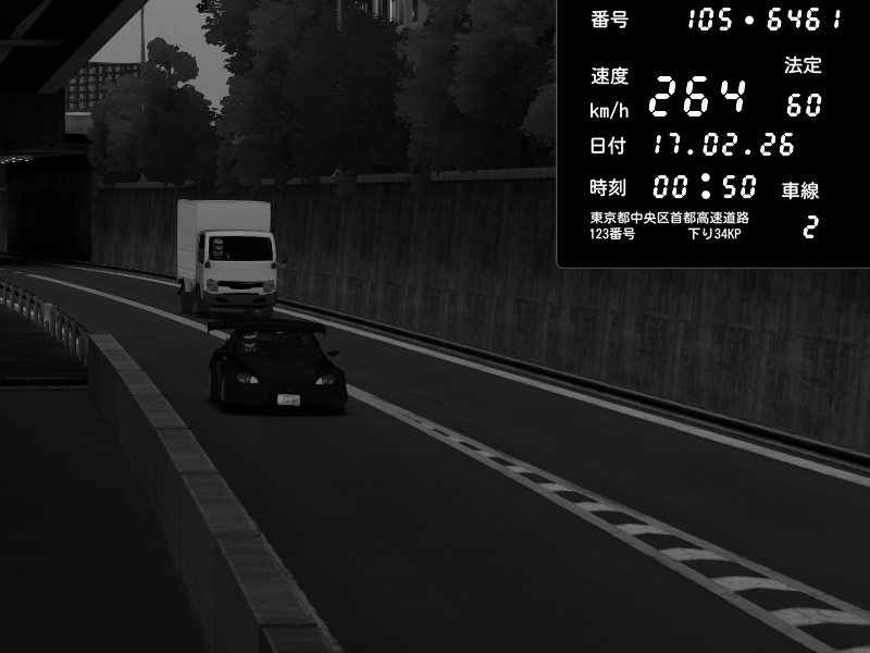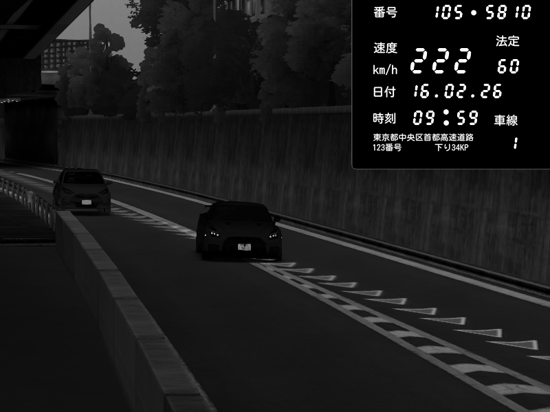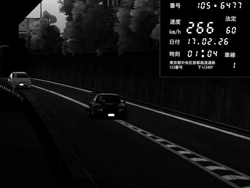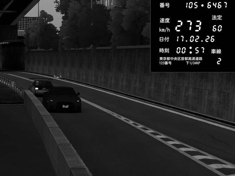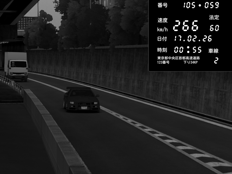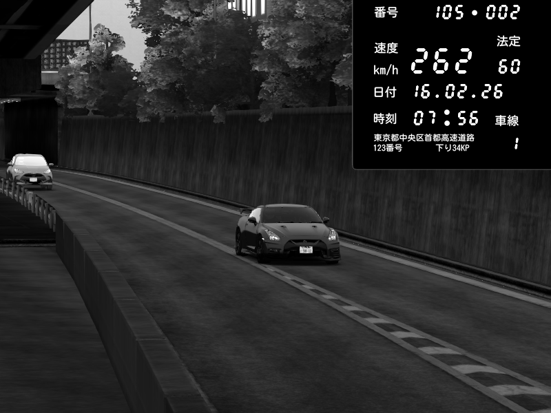 | 2026/02/16 12:07 | C1外回り 京橋 | 266 / 60 km/h | Player | Nissan GT-R NISMO 2017 | CAPTURE |