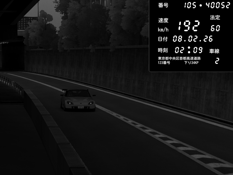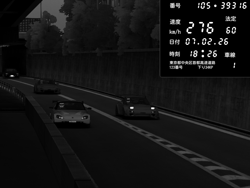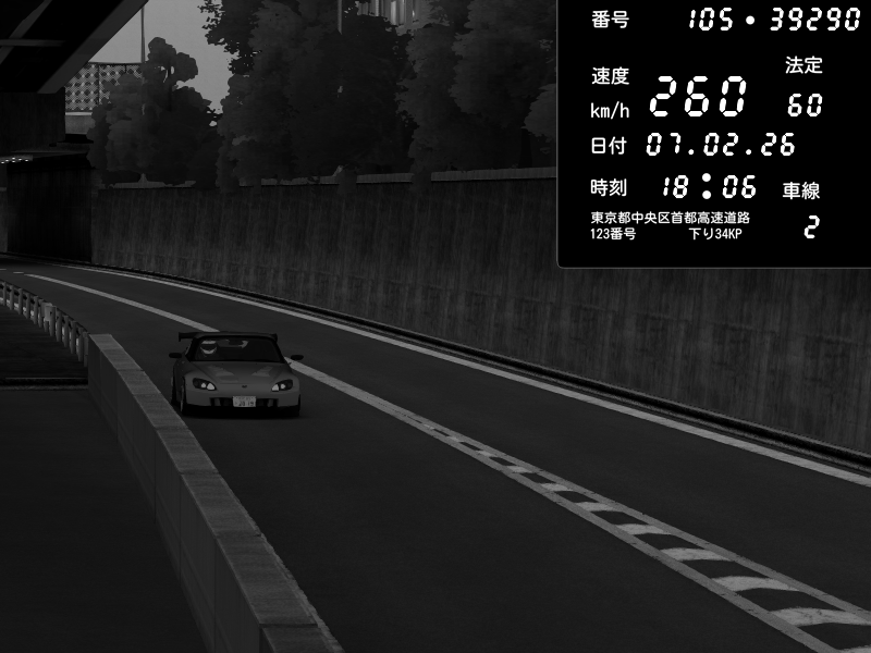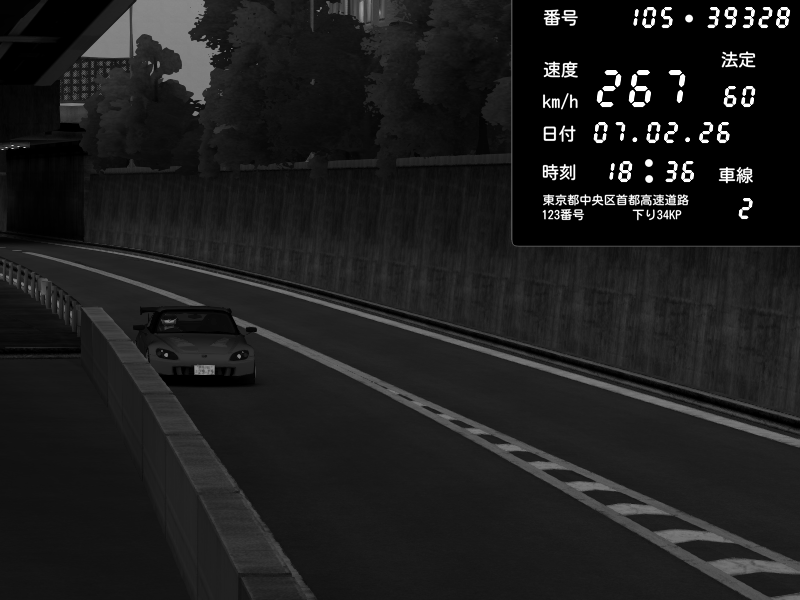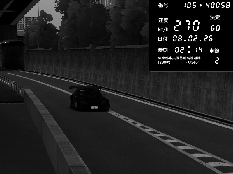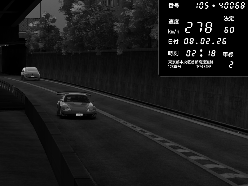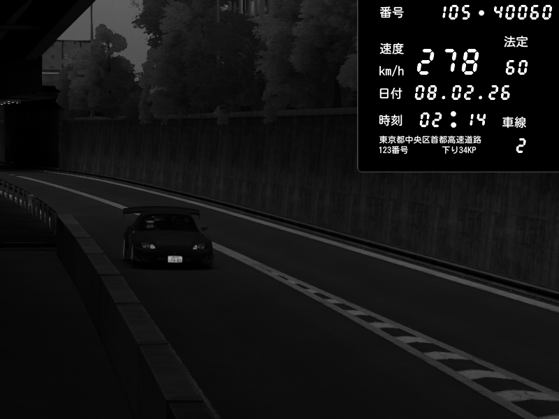 | 2026/02/07 18:31 | C1外回り 京橋 | 256 / 60 km/h | GereGere | Honda S2000 (AP2 - Legendary) | CAPTURE |