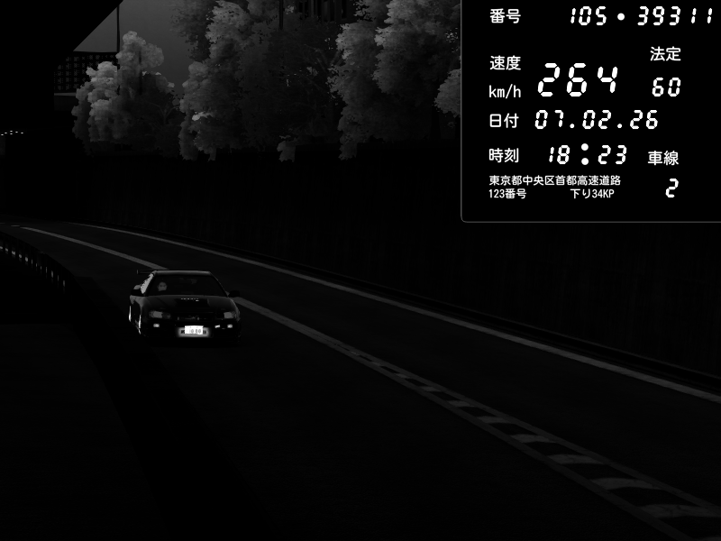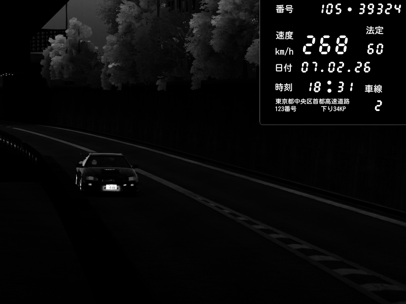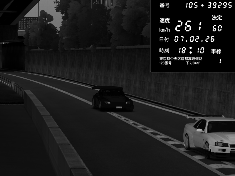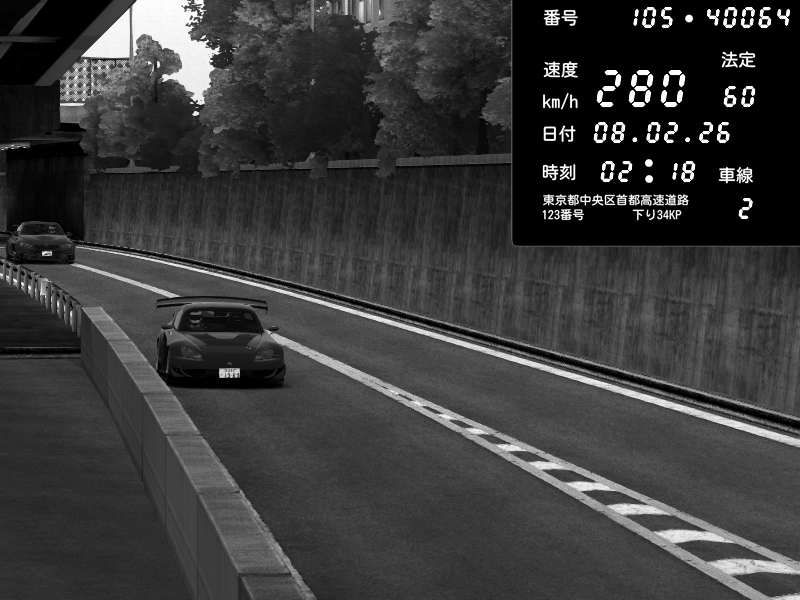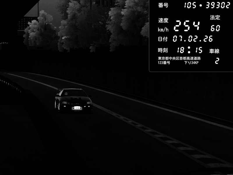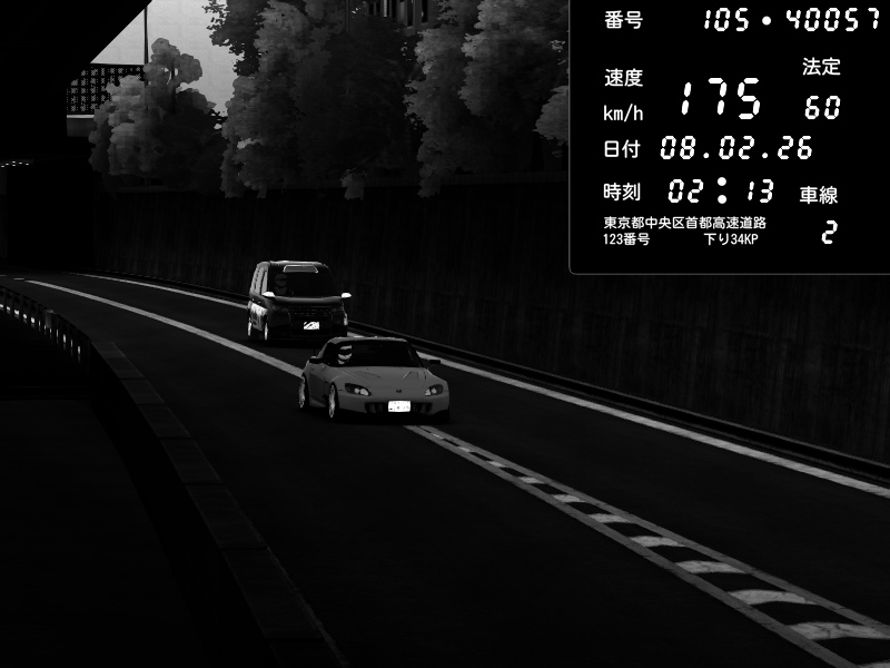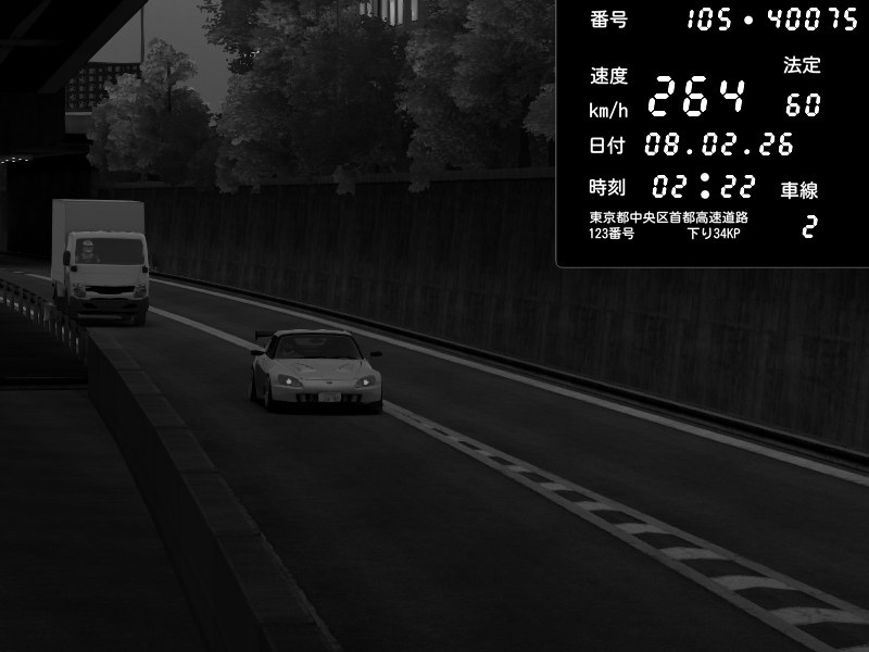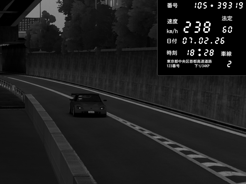 | 2026/02/07 18:31 | C1外回り 京橋 | 256 / 60 km/h | GereGere | Honda S2000 (AP2 - Legendary) | CAPTURE |