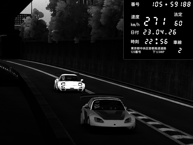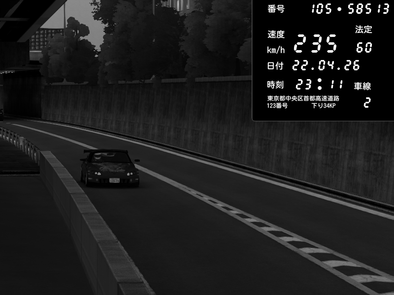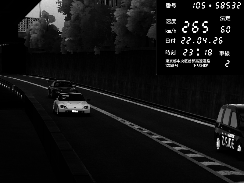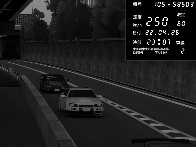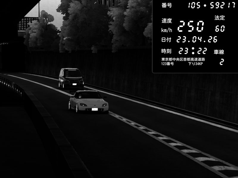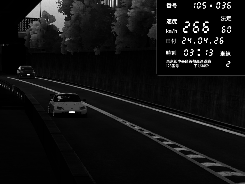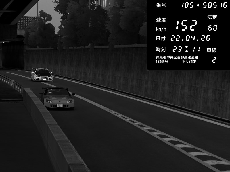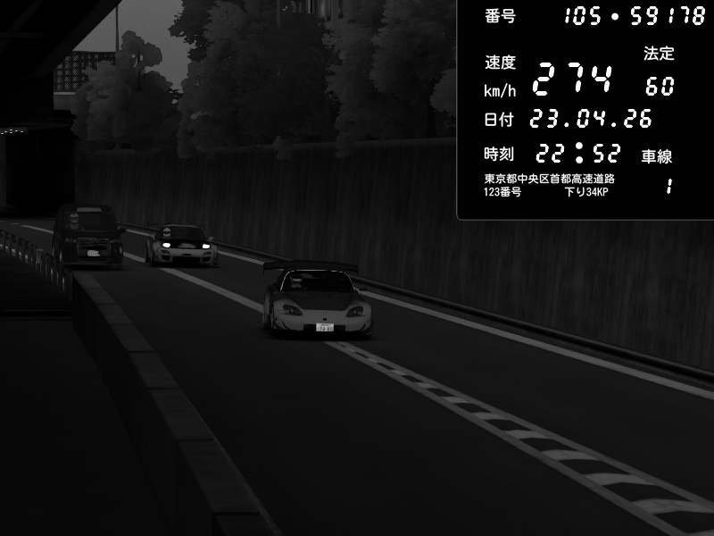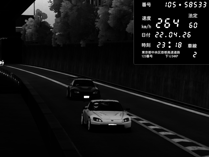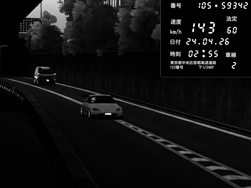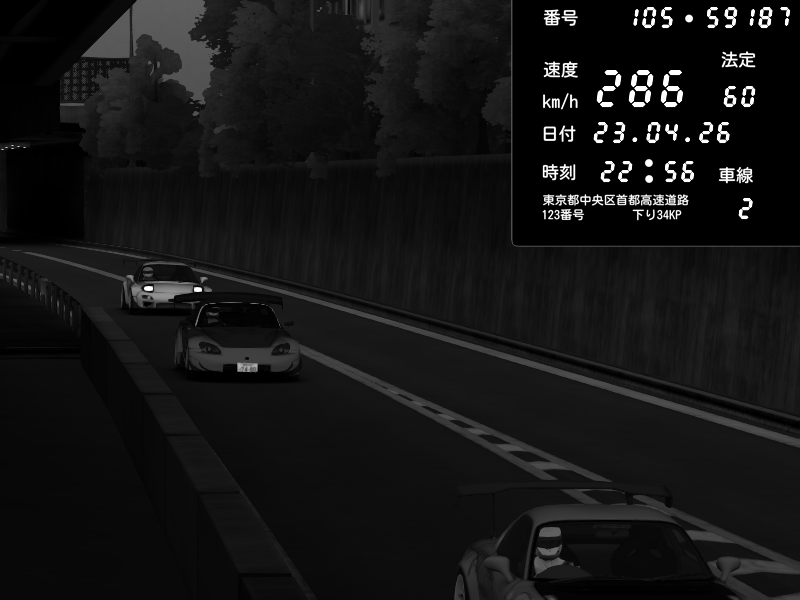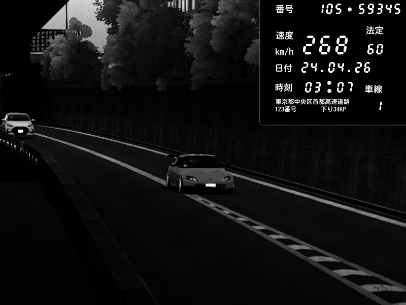 | 2026/04/22 00:59 | C1外回り 京橋 | 239 / 60 km/h | LxLxNPLAYA | Honda S2000 (AP2 - Legendary) | CAPTURE |