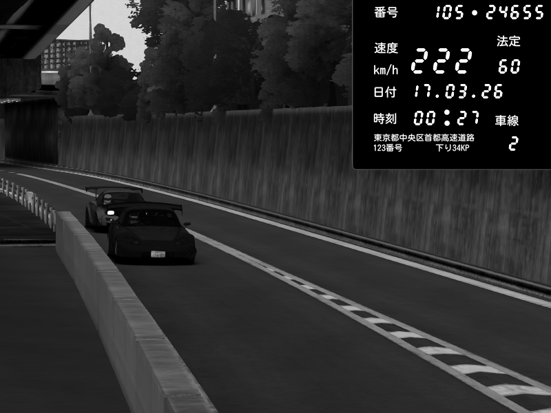 | 2026/03/16 16:27 | C1外回り 京橋 | 209 / 60 km/h | Chiyo | Honda S2000 (AP2 - Legendary) | CAPTURE |