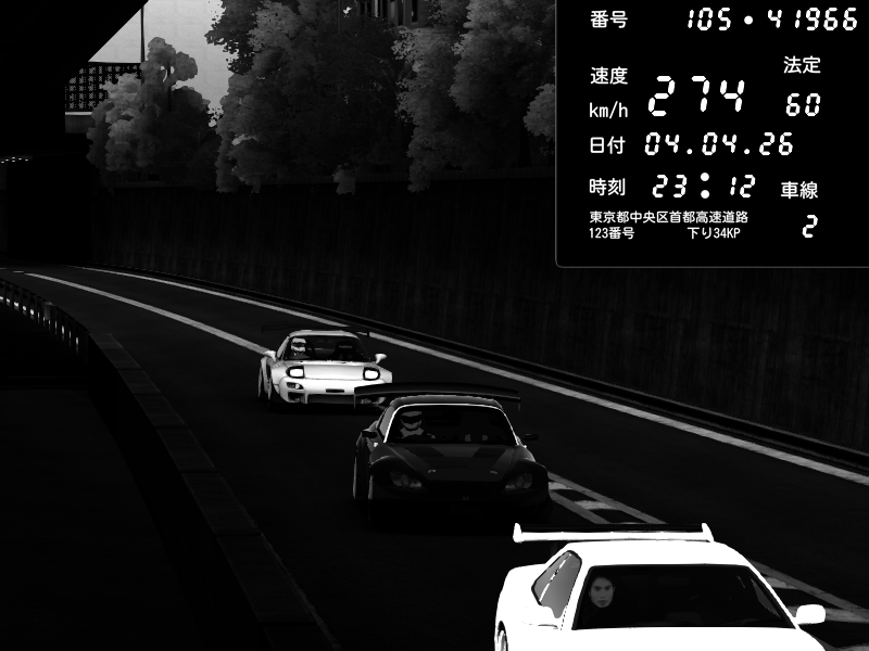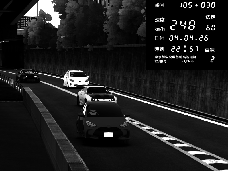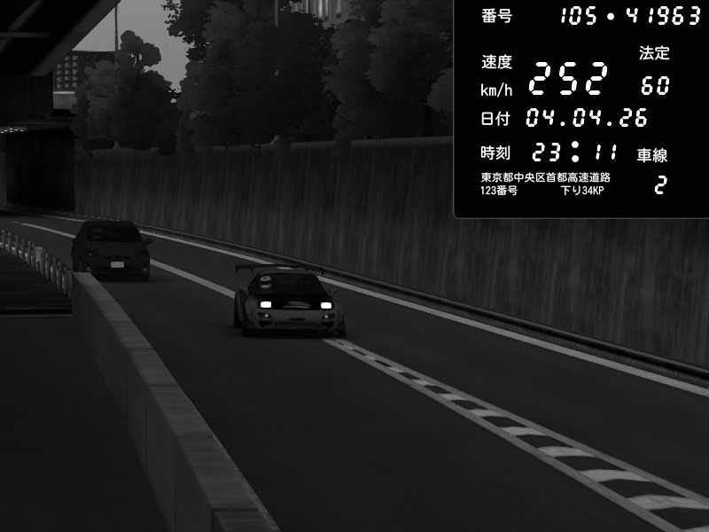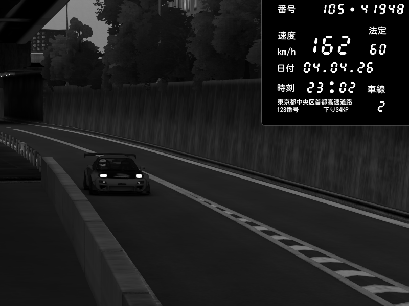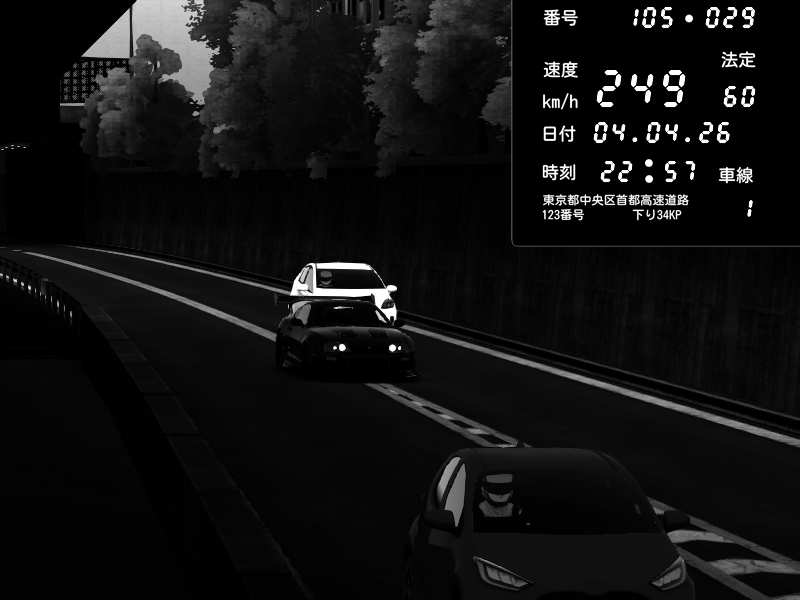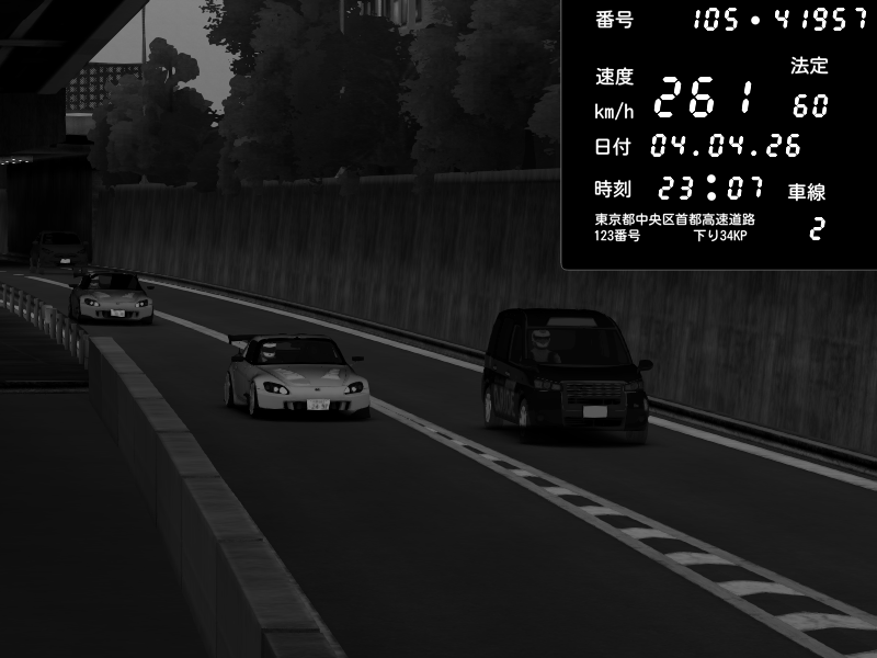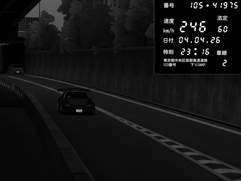 | 2026/04/04 15:06 | C1外回り 京橋 | 252 / 60 km/h | Nadur Spike | Honda S2000 Turbo GT1 Amuse (AP1) | CAPTURE |