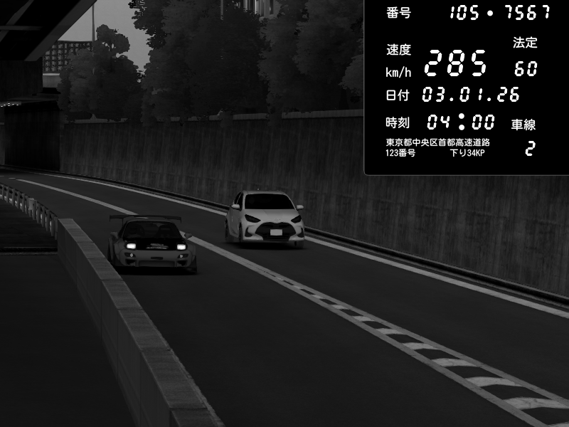 | 2026/01/03 04:14 | C1外回り 京橋 | 284 / 60 km/h | †~Dual★Sense~† | Mazda RX-7 FD3S FEED Afflux GT3 | CAPTURE |