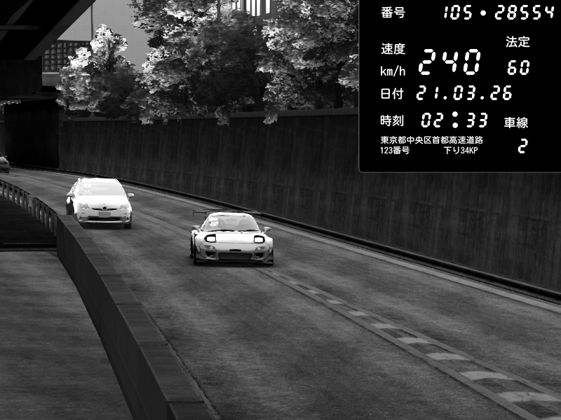 | 2026/03/21 02:33 | C1外回り 京橋 | 240 / 60 km/h | Futas | Mazda RX-7 FD3S FEED Afflux GT3 | CAPTURE |