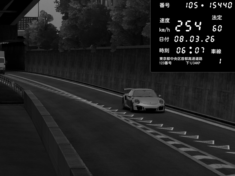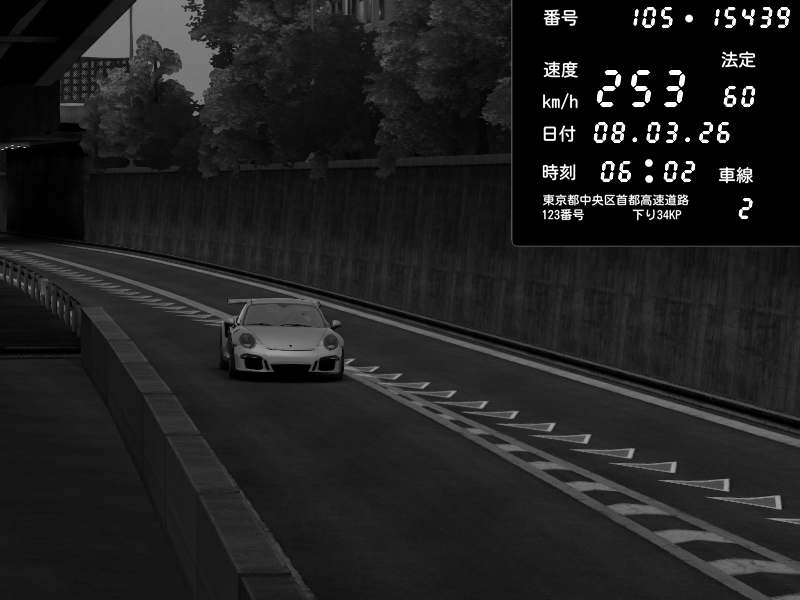 | 2026/03/08 06:02 | C1外回り 京橋 | 253 / 60 km/h | Chiyo | Porsche 911 GT3 RS | CAPTURE |