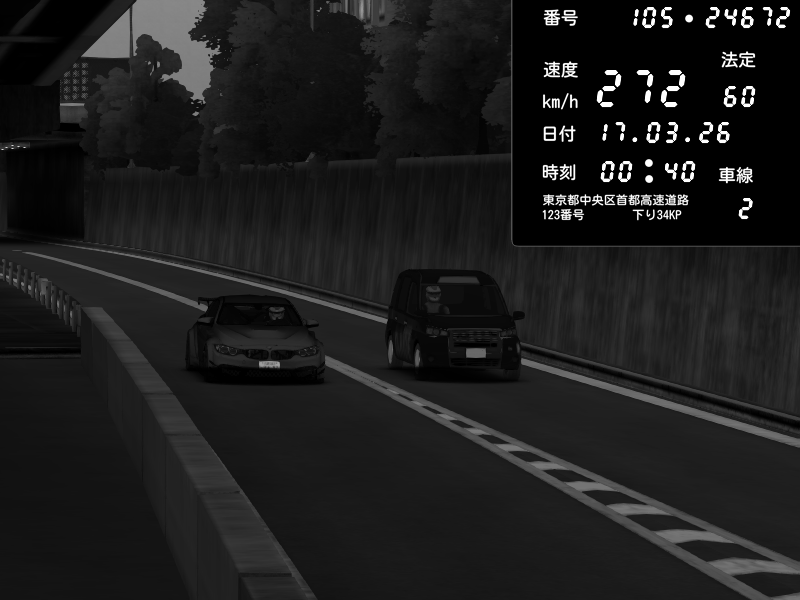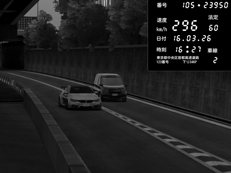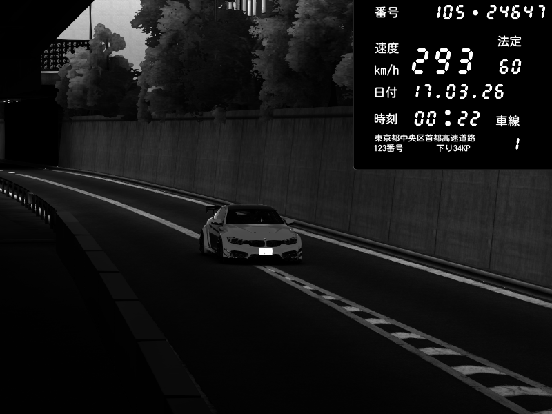 | 2026/03/16 16:27 | C1外回り 京橋 | 296 / 60 km/h | kota | BMW M4 crash.Sp Varis Widebody | CAPTURE |