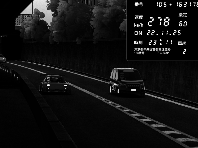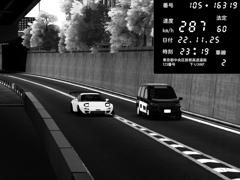 | 2025/11/22 23:00 | C1外回り 京橋 | 276 / 60 km/h | tontoro🐽 | Mazda RX-7 FD3S FEED Afflux GT3 | CAPTURE |