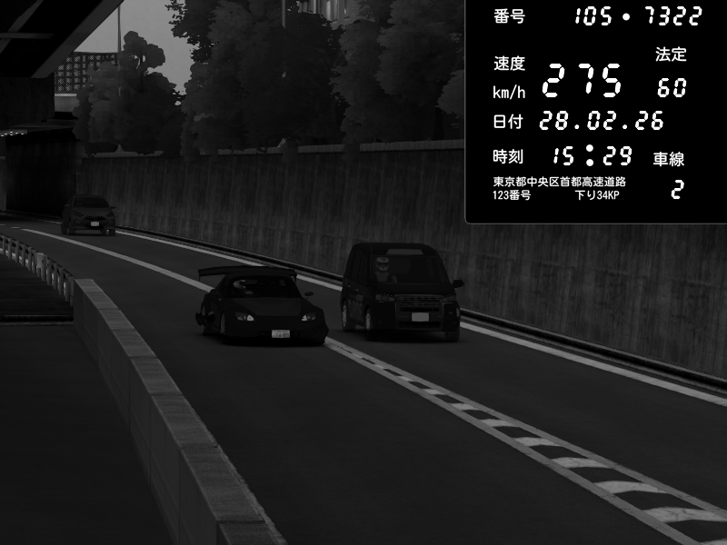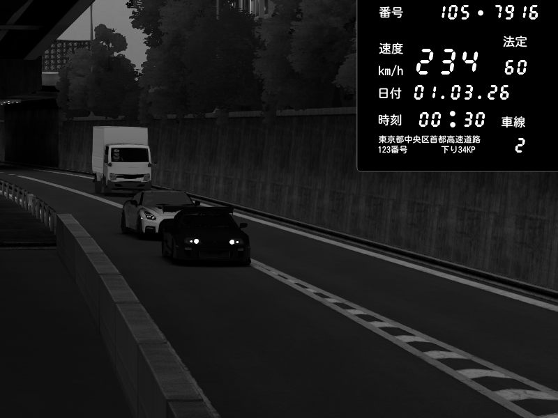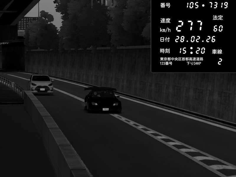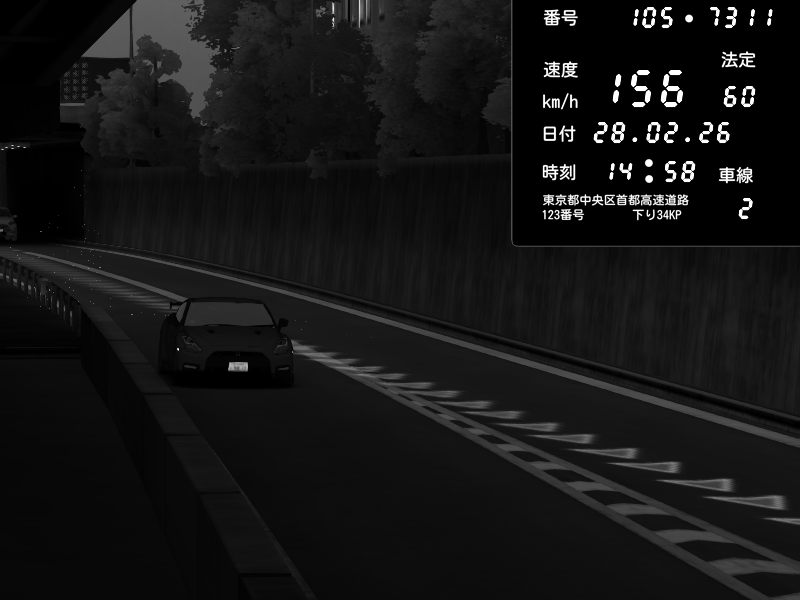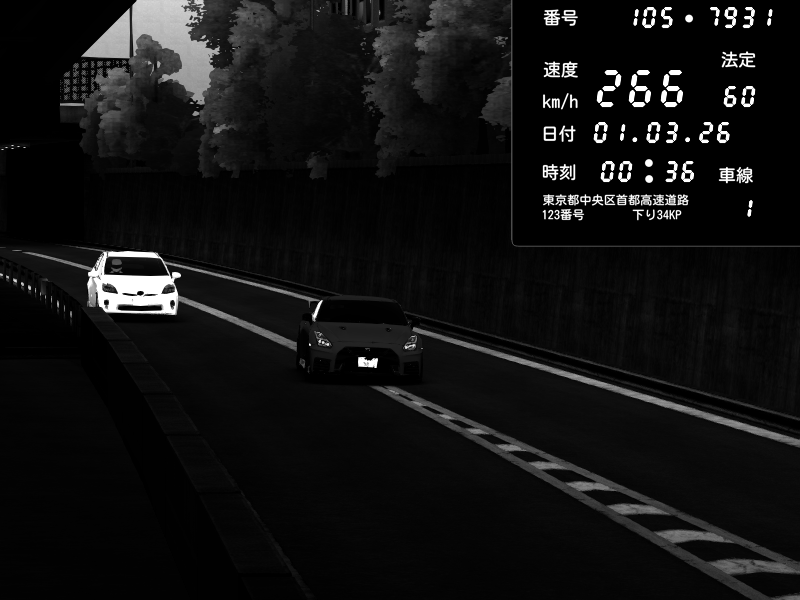 | 2026/03/01 00:19 | C1外回り 京橋 | 270 / 60 km/h | Kotone | Nissan GT-R NISMO 2017 | CAPTURE |