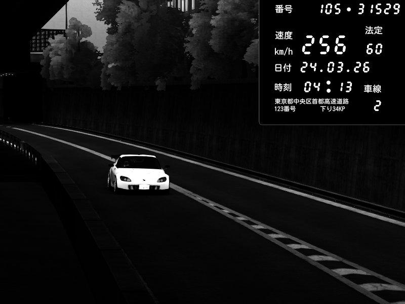 | 2026/03/24 04:13 | C1外回り 京橋 | 256 / 60 km/h | metaxa | Honda S2000 (AP2 - Legendary) | CAPTURE |