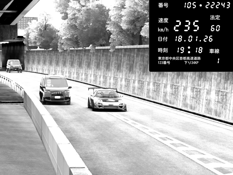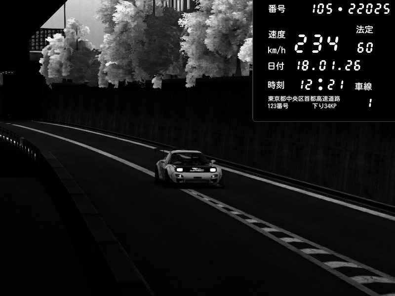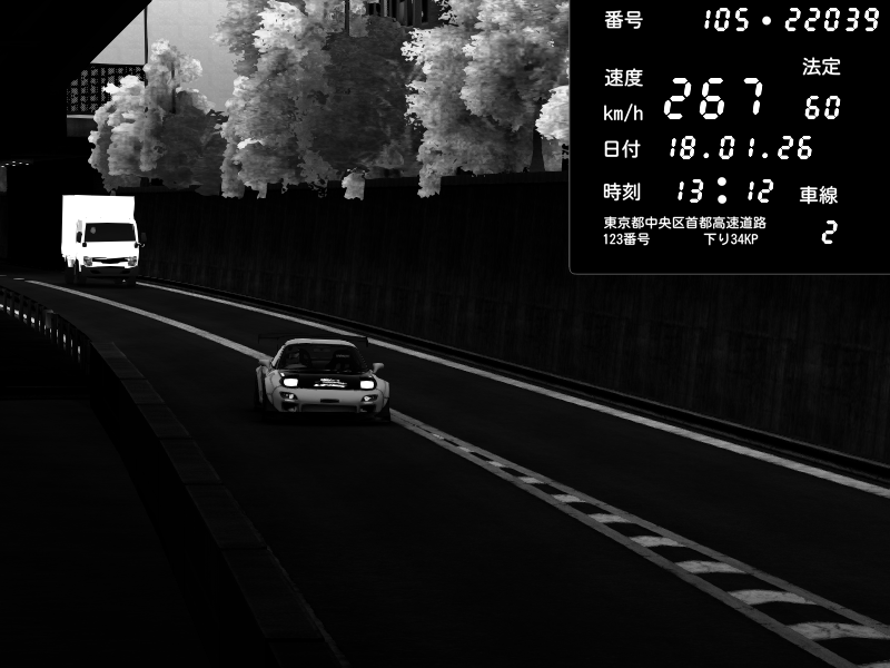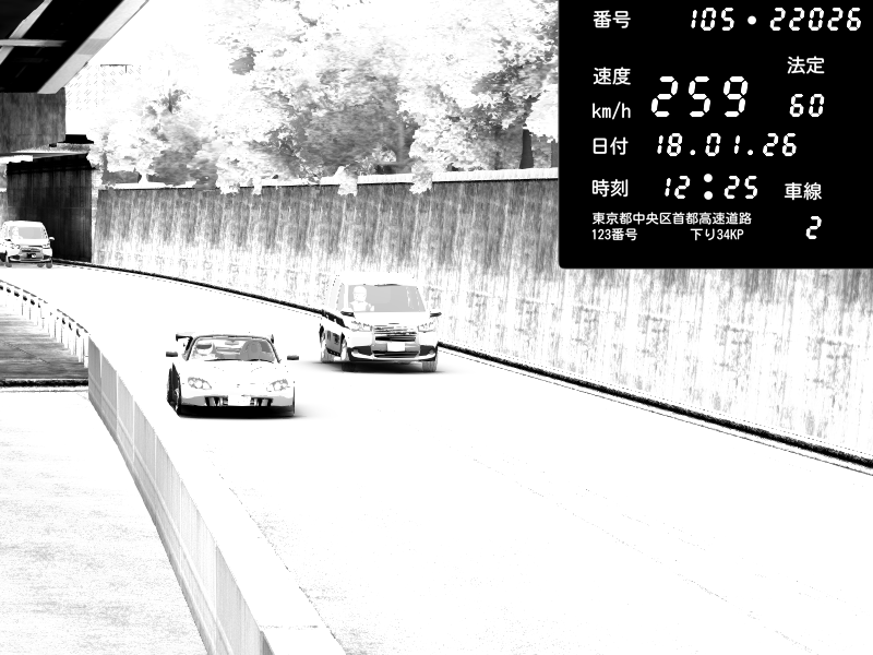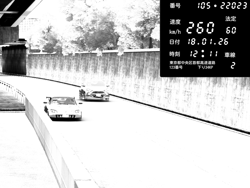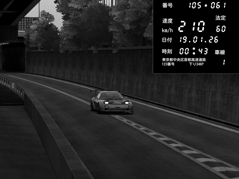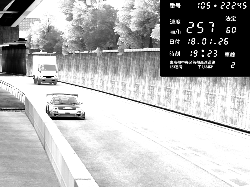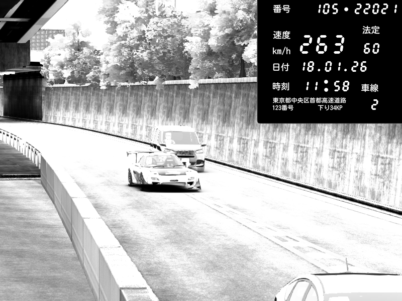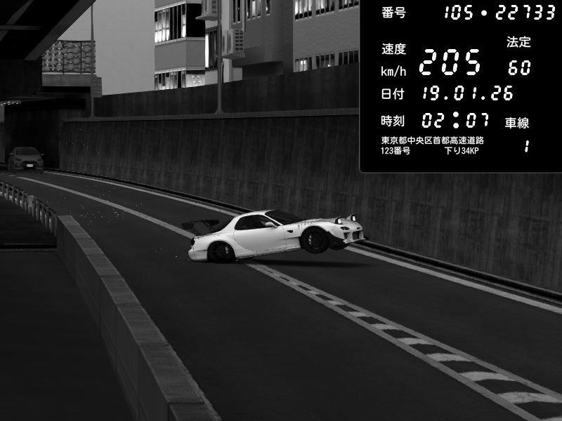 | 2026/01/19 01:15 | C1外回り 京橋 | 227 / 60 km/h | Player | Mazda RX-7 FD3S FEED Afflux GT3 | CAPTURE |