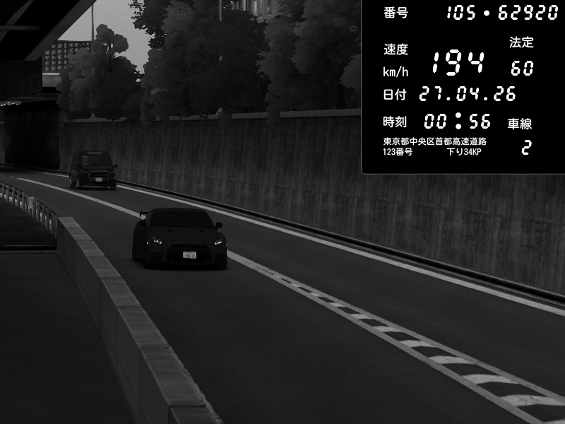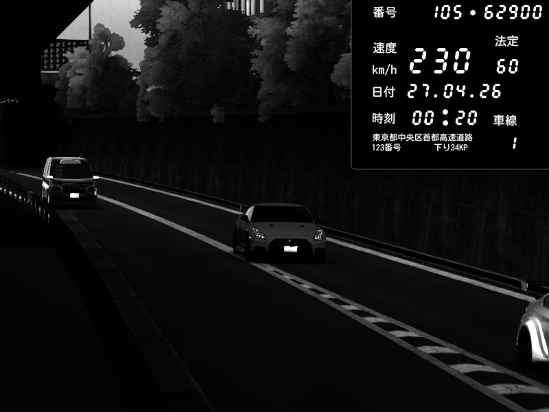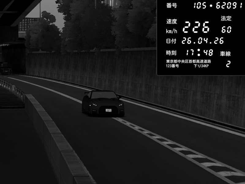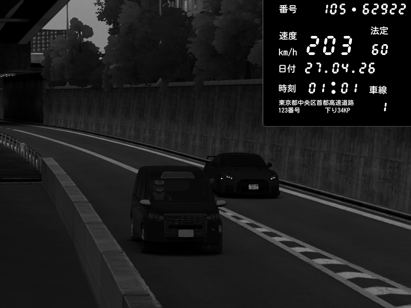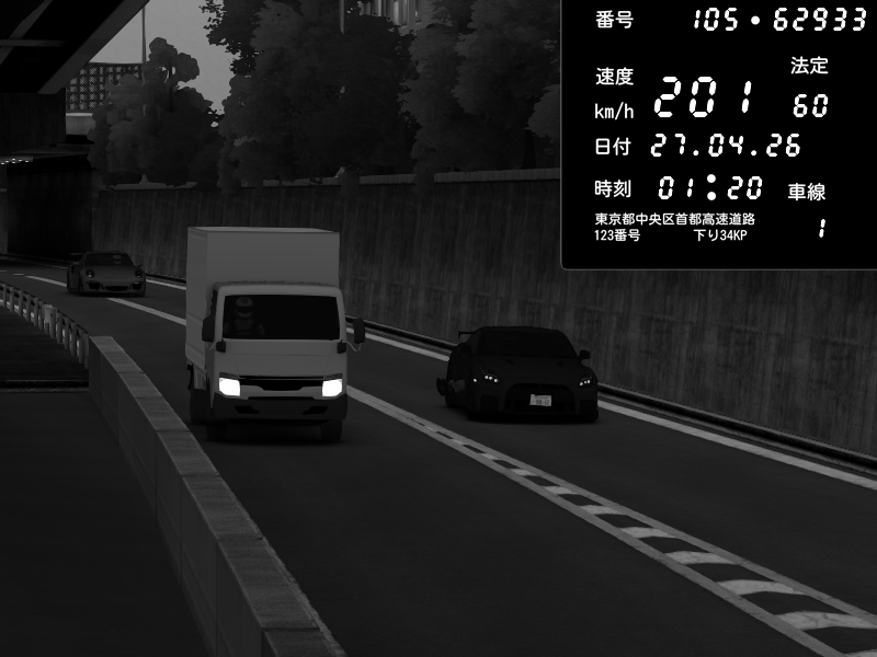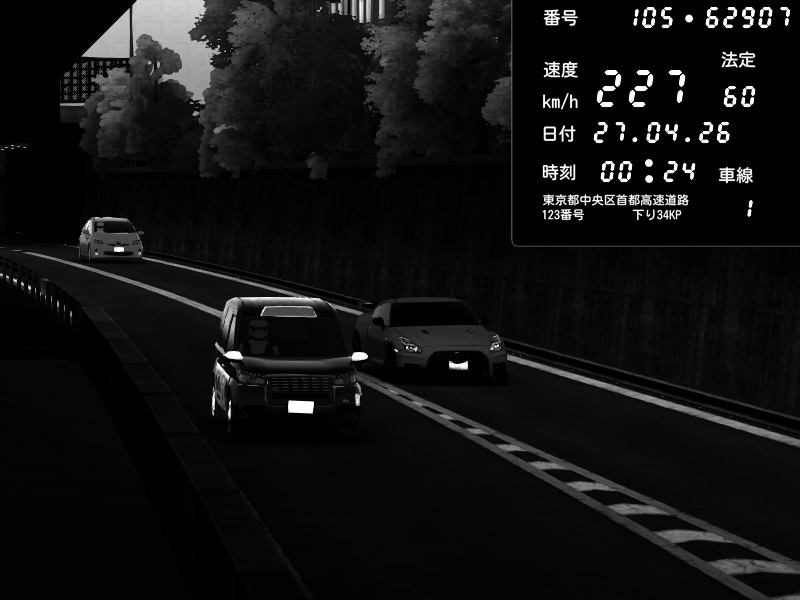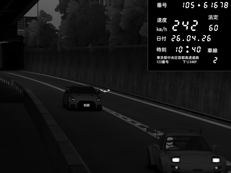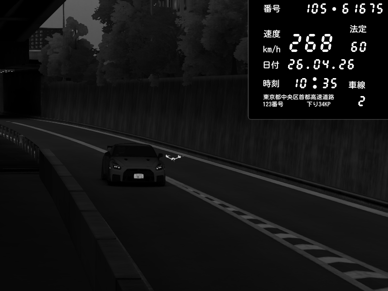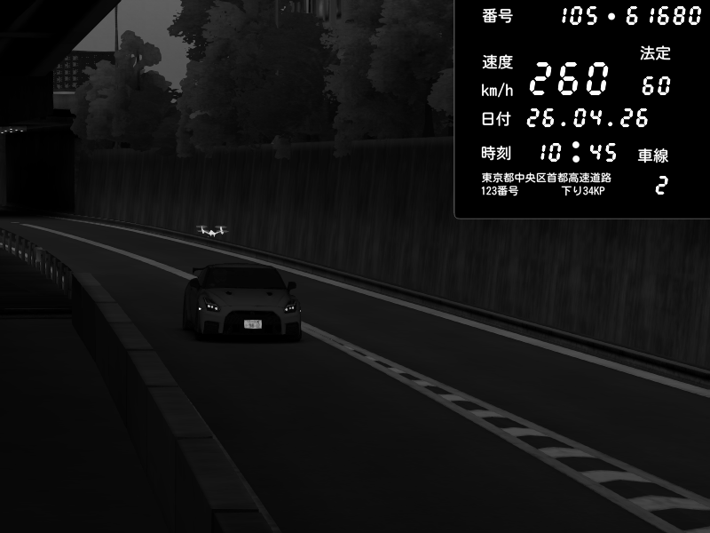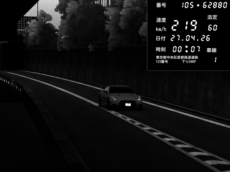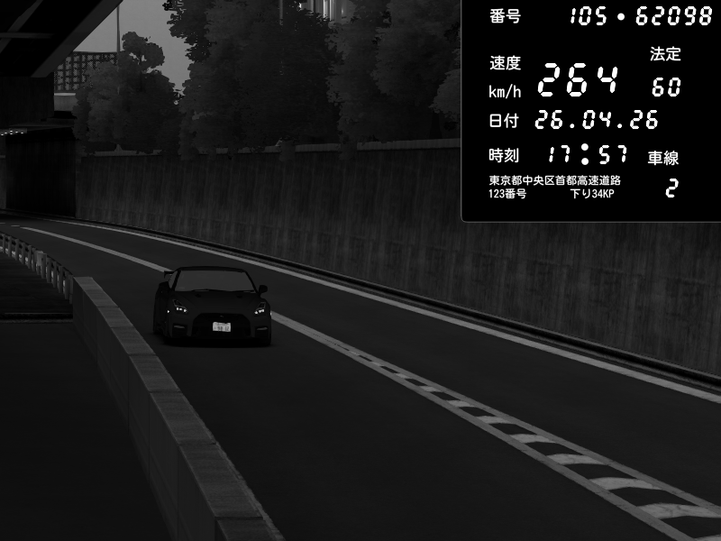 | 2026/04/26 10:45 | C1外回り 京橋 | 260 / 60 km/h | HaiJ👺 | Nissan GT-R NISMO 2017 | CAPTURE |