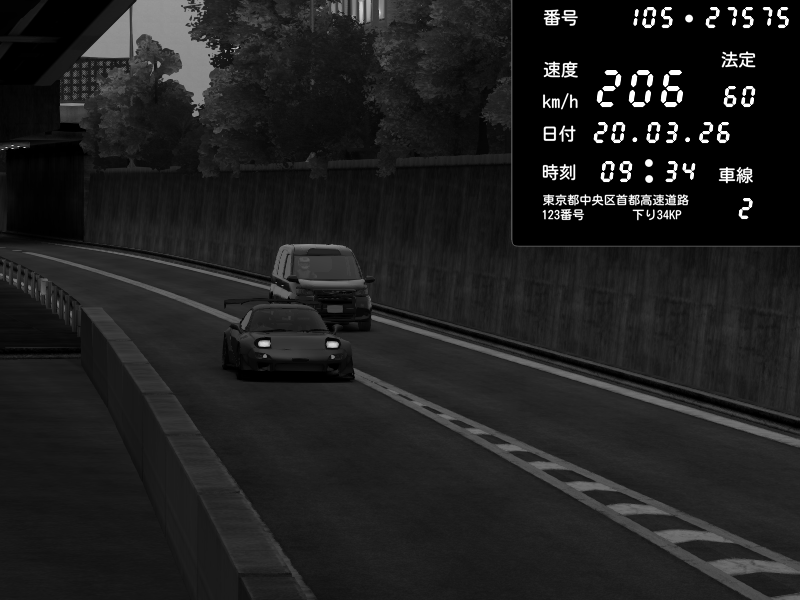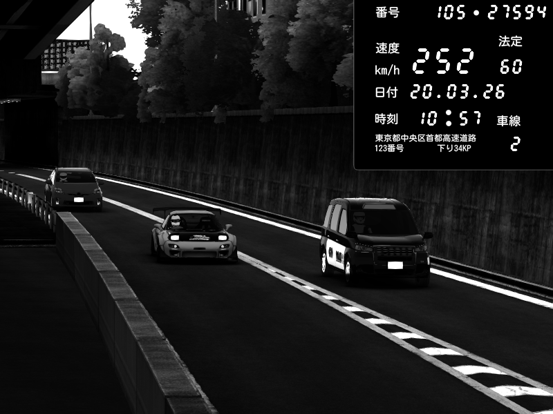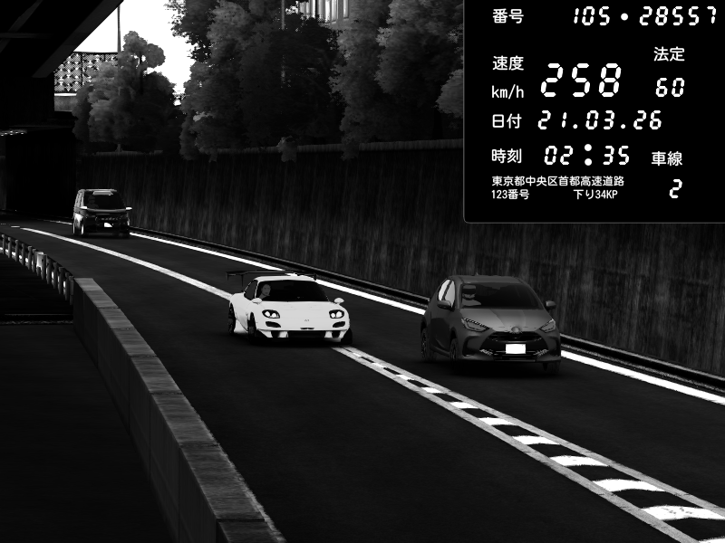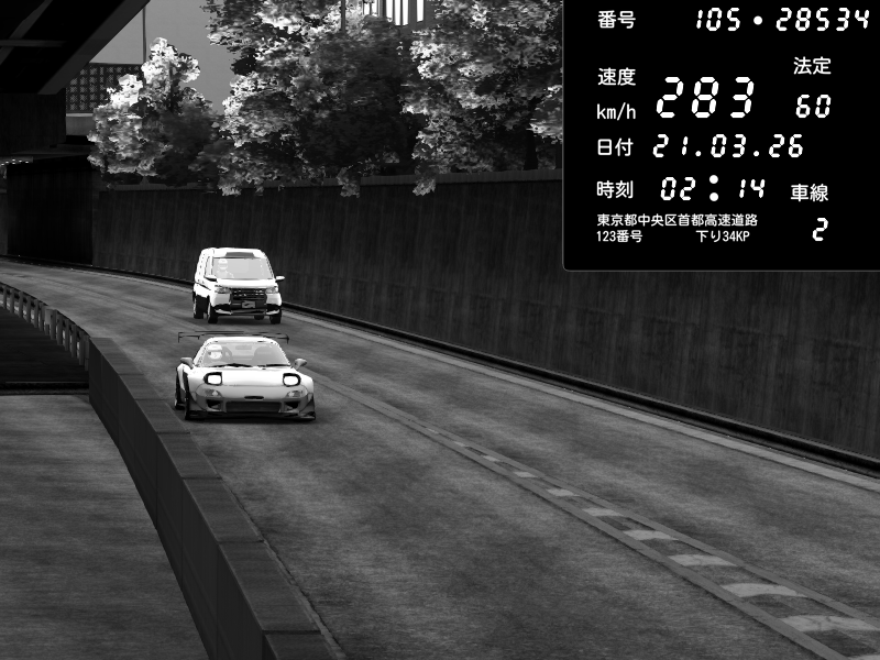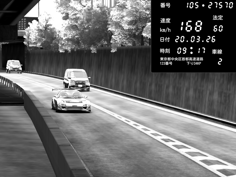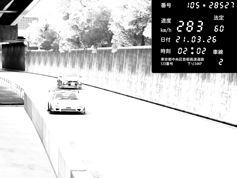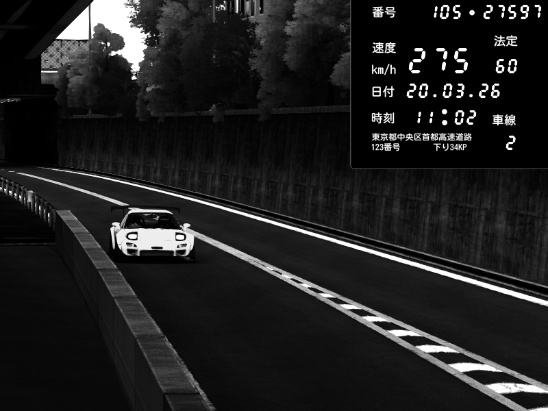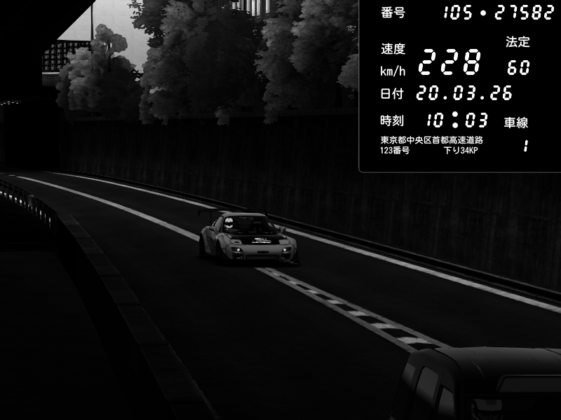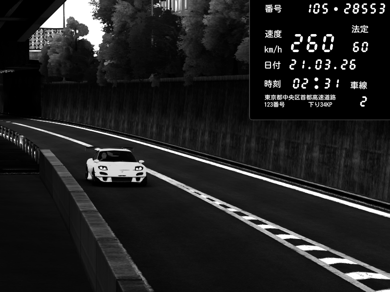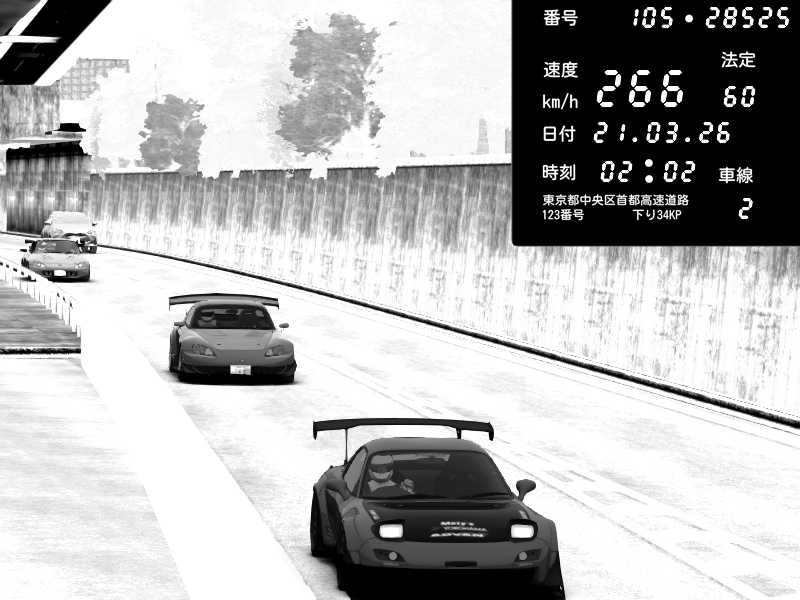 | 2026/03/21 02:31 | C1外回り 京橋 | 260 / 60 km/h | FAL | Mazda RX-7 FD3S RE Amemiya | CAPTURE |