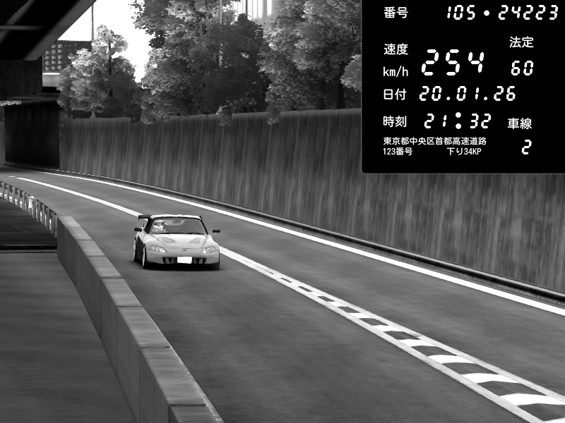 | 2026/01/20 21:32 | C1外回り 京橋 | 254 / 60 km/h | yuuki | Honda S2000 (AP2 - Legendary) | CAPTURE |
