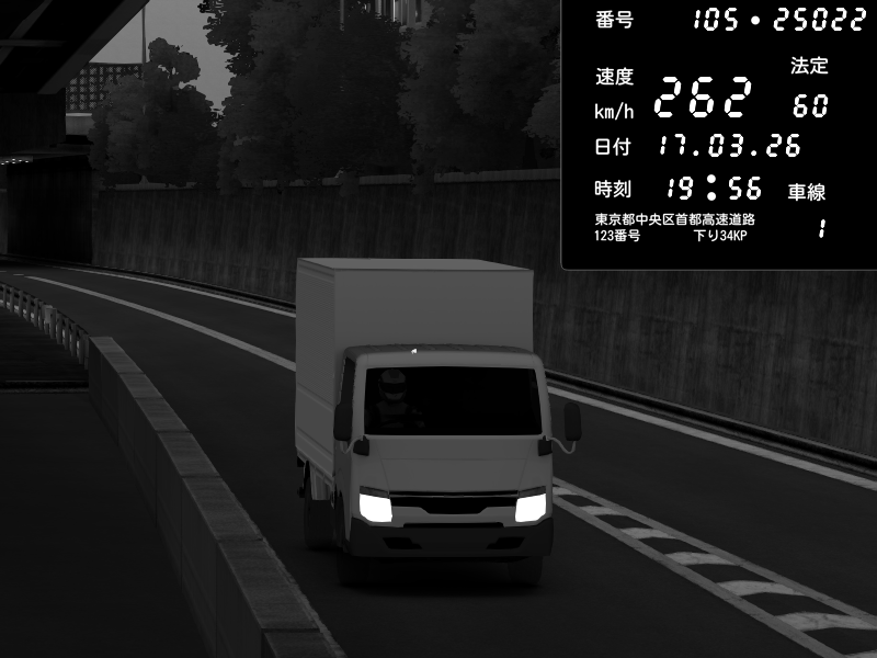 | 2026/03/17 20:08 | C1外回り 京橋 | 280 / 60 km/h | U-0 | Honda S2000 Turbo GT1 Amuse (AP1) | CAPTURE |