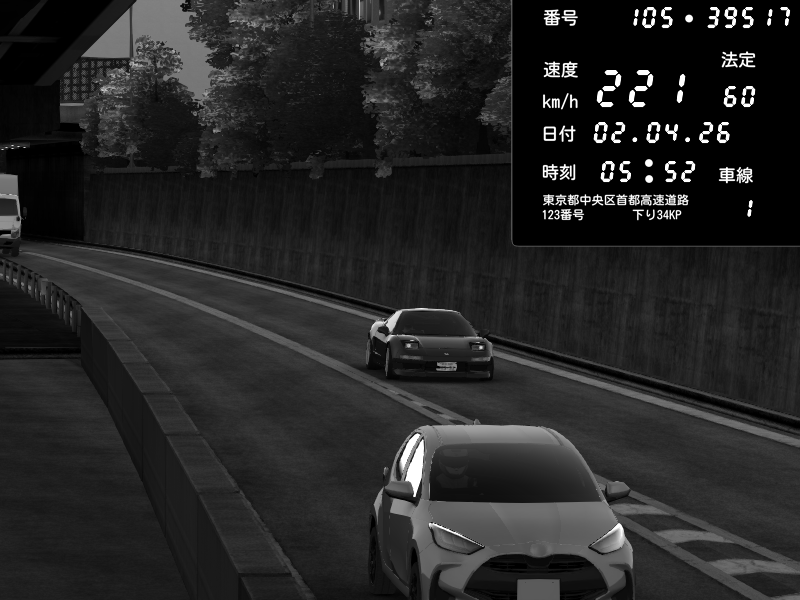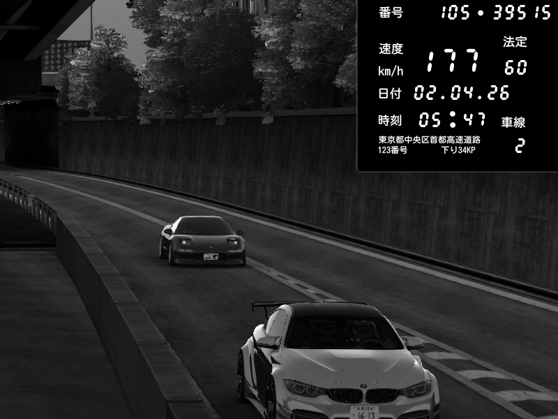 | 2026/04/02 05:47 | C1外回り 京橋 | 177 / 60 km/h | ASiN | Honda NSX [NA1] PVLSX | CAPTURE |