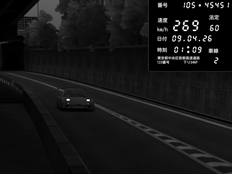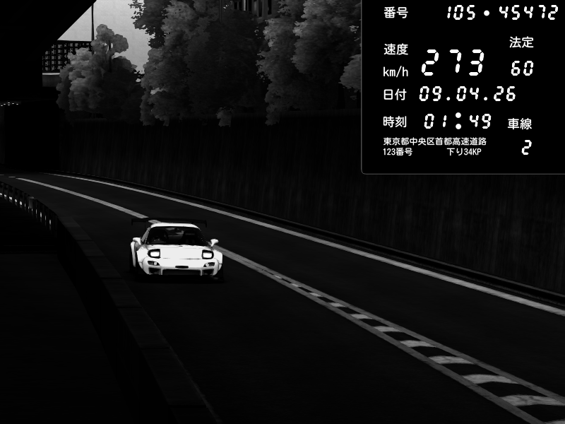 | 2026/04/09 01:05 | C1外回り 京橋 | 274 / 60 km/h | ゴストレイ | Mazda RX-7 FD3S FEED Afflux GT3 | CAPTURE |